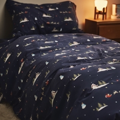 The bedding set is made from 100% soft cotton, which is breathable and gentle against the child's skin. Cotton's natural properties help regulate temperature, so your child sleeps safely and comfortably – even when winter is cold outside.