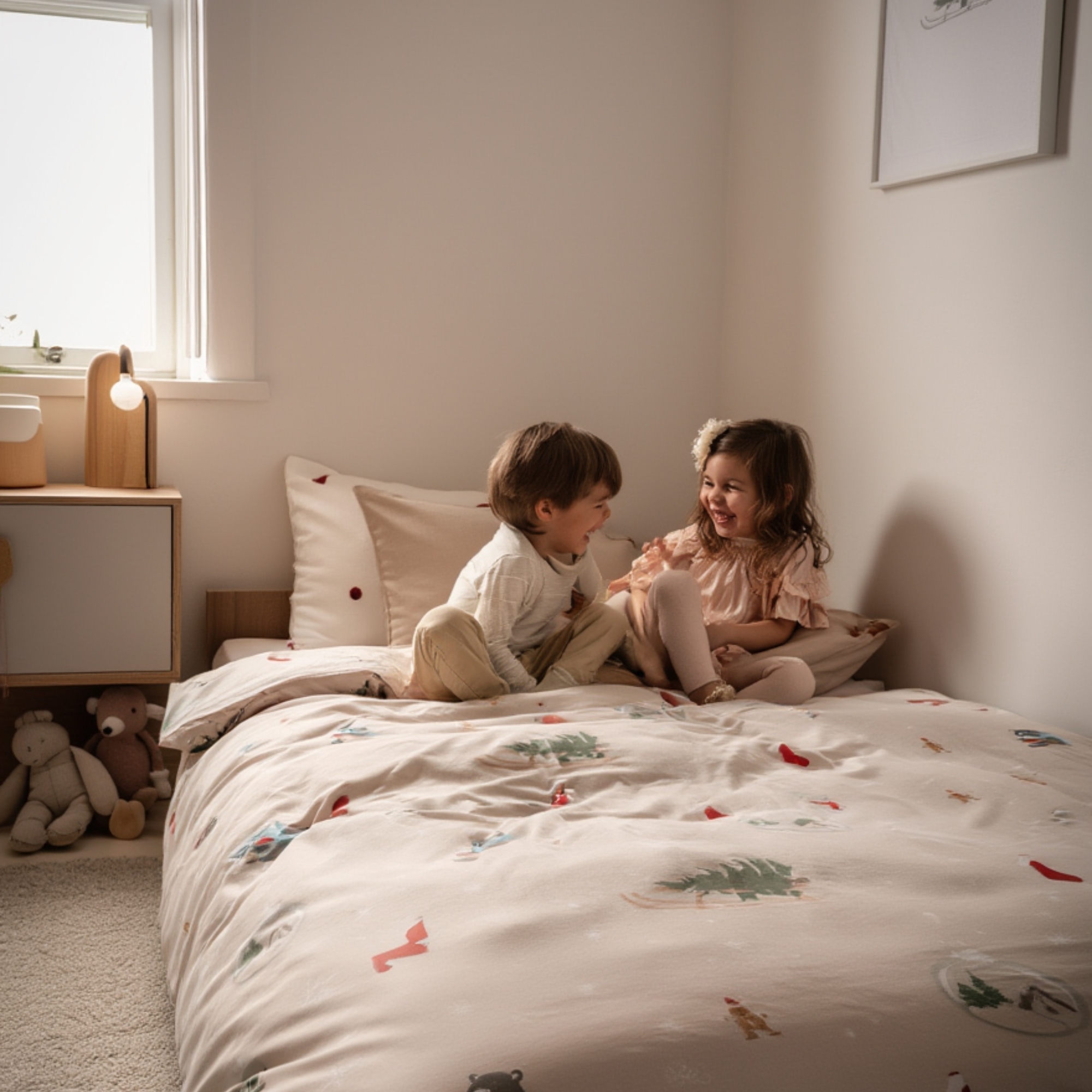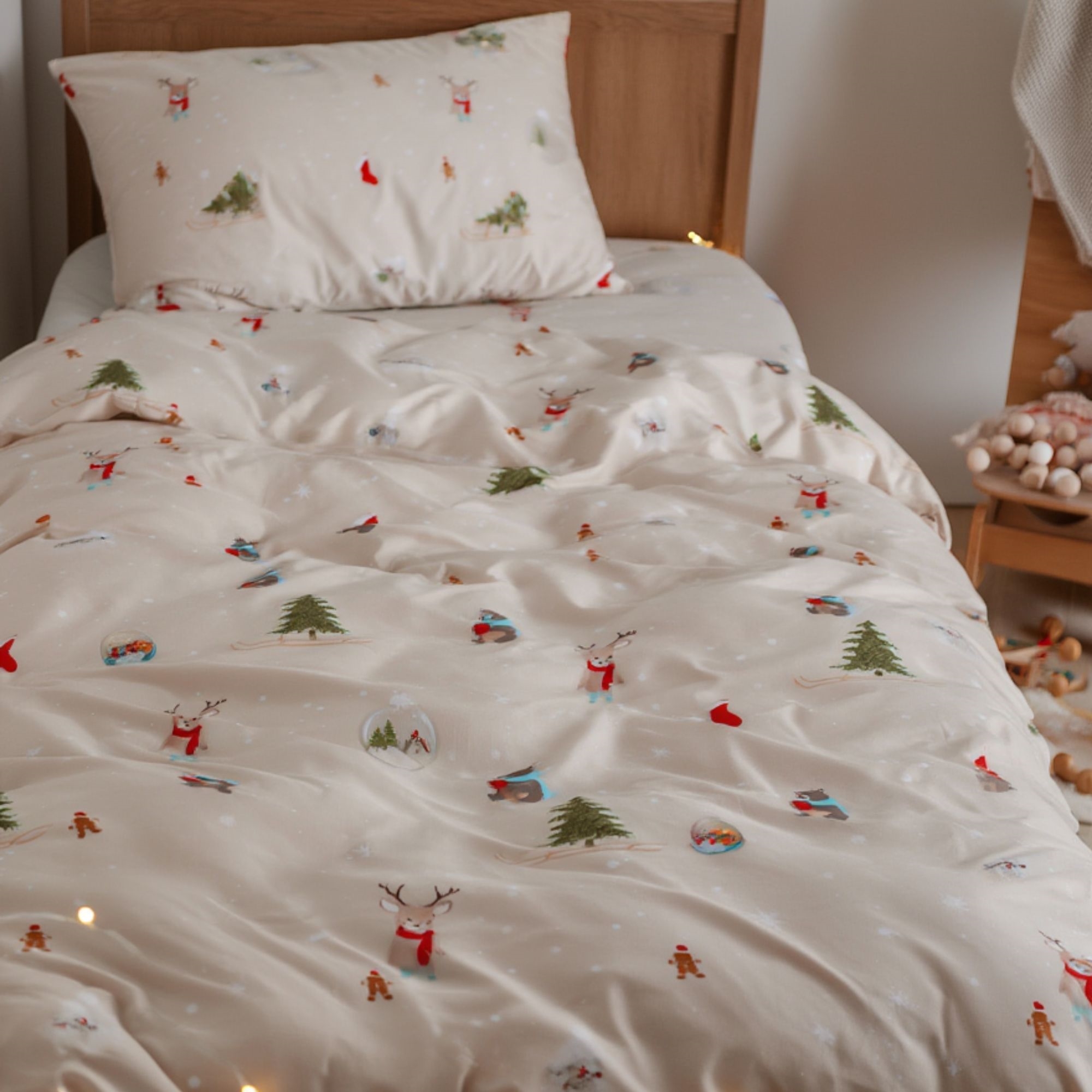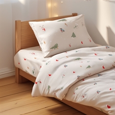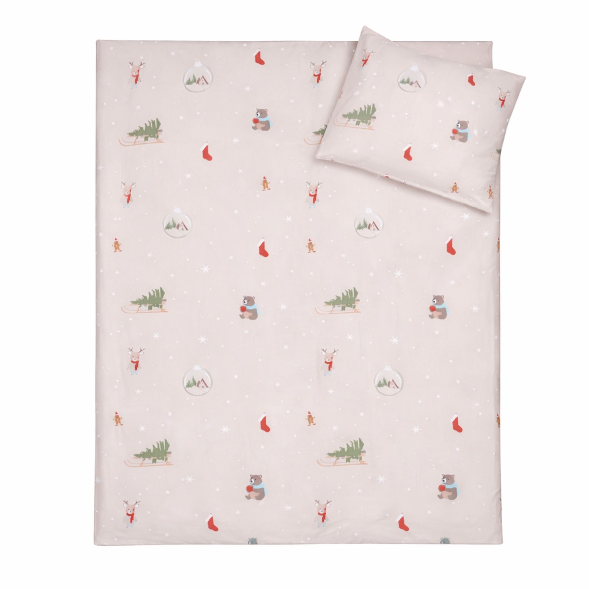 Make December extra cozy with this atmospheric Christmas bedding from By Mats in baby size 70x100 cm. The beige design with Christmas icons creates a magical Christmas atmosphere in the children's room and makes bedtime in the crib extra safe and cozy during the holiday season.