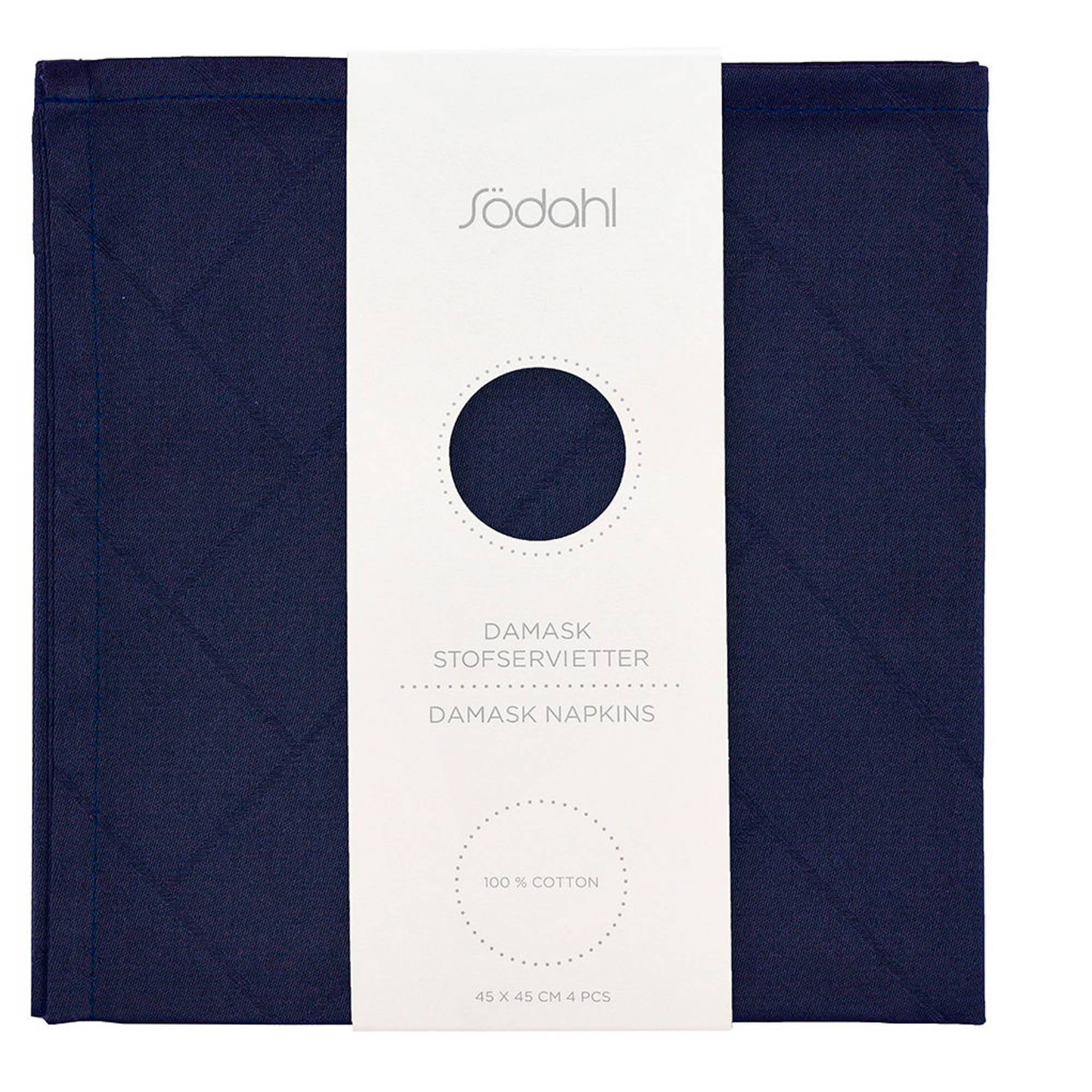 Home » Cloth Napkins 45x45 cm - 100% damask-woven cotton - pack of 4 - Södahl Tiles - Blue Södahl Great price:27,49EUR In stock Quantity Add to basket See more from: Södahl Item number: 28028 See our full range of tablecloths See our range from Södahl See everything for the table here Do you have questions about the product? Damask weaving gives an elegant and subtle pattern play4-pack with napkins that can be washed and used again and againIdeal for dinners, parties and holidays Size: 45x45 cm Type: Damask napkins - pack of 4 Color: Indigo - Blue Design: Tiles - Herringbone Quality: 100% Cotton Brand: Södahl Quantity: 4 pcs. in a pack Wash: 40° Tumble dry: No Certification: STANDARD 100 by OEKO-TEX® (8051CIT CITEVE). Your guarantee that the product is free from harmful chemicals. Cloth Napkins 4 pcs. 45x45 cm - Tiles from Södahl Make your table setting extra elegant with these beautiful Tiles cloth napkins from Södahl. The napkins are made from 100% damask-woven cotton and feature a classic herringbone pattern that adds a refined and exclusive look to the table. The deep indigo blue color creates a nice contrast with both light and dark table settings, and the subtle pattern provides a beautiful texture and depth to the design. Whether you are setting the table for guests, festive occasions or cozy dinners, these cloth napkins deliver a cohesive and stylish finish to the table. Reusable cloth napkins are a more sustainable alternative to paper napkins and can be used again and again. They are easy to care for and can be washed at 40 degrees. The napkins are OEKO-TEX® certified, which means they have been tested for harmful chemicals. See the full range of tablecloths here Södahl Södahl is a renowned Danish brand that combines timeless design with high quality and functional solutions for the home. With a focus on both aesthetics and comfort, Södahl has for many years been a leader in exclusive home textiles that create calm and harmony in interior design. The range is broad and includes everything from bed linen and towels to tablecloths, throws and other textiles - all made from soft materials and modern, Nordic colors that fit perfectly into a clean, contemporary home. See the full range from Södahl here Return to