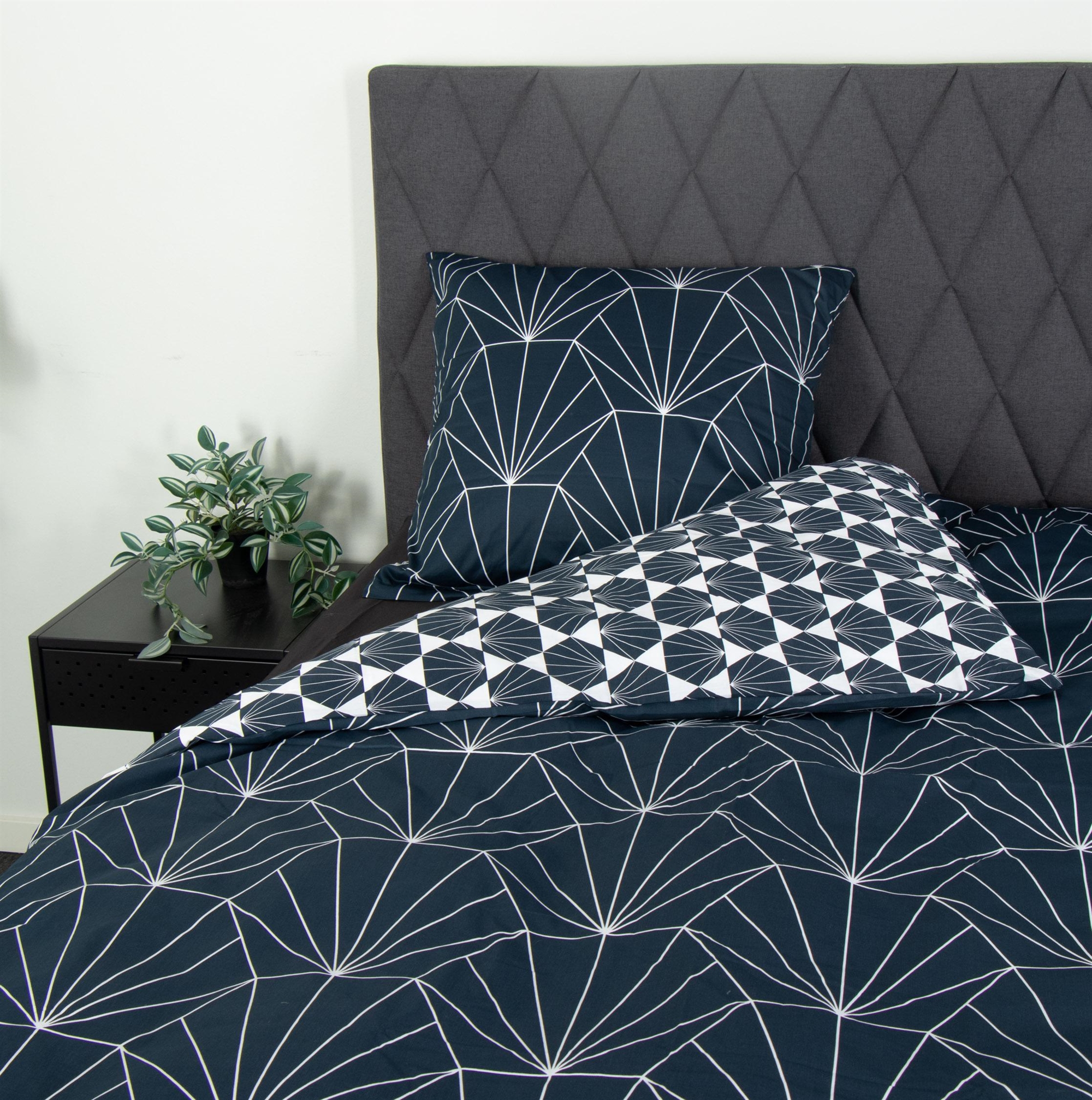 Home » Bedding » Single bedding » Single bedding 140x200 cm Cotton satin bedding - 140x200 cm - Hexagon blue bedding - 2-in-1 design - By Night bed set Save60% Borg LivingBy Night 81,9932,99EURSave 49,- In stock Quantity Add to basket See more from: Borg Living Item number: 458-1 Read our bedding guide Explore our extensive collection of sheets Discover our wide range of 140x200 duvets Do you have questions about the product? Bedding - 140x200 cm100% cotton satinZip closure Duvet cover: 140x200 cm Pillowcase: 1 pc. at 60x63 cm Material: 100% cotton satin Weave: Extra fine 230TC (Thread count = number of threads per square inch) Colour: Dark blue Design: Hexagon - Dark blue Brand: By Night Closure: Duvet and pillowcase with zip Wash: 60° Tumble Dry: Yes Ironing: Yes Certification: STANDARD 100 by OEKO-TEX® (11-47893) By Night bedding is produced using 100% cotton satin. Experience a safe and restful sleep with this stunning and elegant bed set from By Night, free from unnecessary and harmful chemicals. Danish-designed, this bed set offers a crisp and refined look that revitalises your room. Featuring prints on both sides, this bed set creates a beautiful harmony of colours and patterns. The bed linen is completely colourfast, meaning the dye bonds to cotton fibres during production, ensuring exceptional colour and wash durability. Duvet and pillowcases are closed with hidden zips. Purchase matching pillowcases for your pillows here Refresh the bed and bedroom with a beautiful and luxurious bedding set like this. Simultaneously, seize the opportunity to enhance your sleeping comfort by adding a new, soft, high-quality sheet. Find our extensive range of quality sheets here By Night exemplifies Danish design, offering you comfortable sleeping components for your night-time environment with the utmost quality. By Night produces bedding and sheets for the entire family, placing great emphasis on current trends, ensuring that their production always includes fashionable colours and designs. Return to Single bedding 140x200 cm Customers also bought Bedding set 140x200 cm - Hexagon grey - 2-in-1 design - 100% cotton satin bedding - By Night In stock 81,9932,99EUR Add to basket Pillowcase 60x63 cm - Hexagon - dark blue - 100% Cotton satin In stock 27,4910,99EUR Add to basket Striped bedding 140x200 cm - Narrow lines black - Reversible bed set - 100% Cotton satin - By Night bed linen In stock 81,9931,49EUR Add to basket Cotton satin bedding - 140x220 cm - Hexagon blue bedding - 2-in-1 design - By Night bed set In stock 95,4938,49EUR Add to basket 2 x Pillowcases Bedding for double duvet - 200x200 cm - Hexagon blue - 100% Cotton satin - 2-in-1 design - By Night bedding set In stock 149,9951,99EUR Add to basket 2 x Pillowcases Bedding for double duvet - 200x220 cm - Hexagon blue - 100% Cotton satin - 2-in-1 design - By Night bedding set In stock 149,9954,49EUR Add to basket Pillowcase 60x63 cm - Hexagon grey - 100% Cotton satin In stock 27,4910,99EUR Add to basket Bedding 140x200 cm - Zodiac Black - Constellation - Duvet cover in 100% cotton - Borg Living bed set In stock 68,4923,49EUR Add to basket Bed linen in 100% cotton satin - 140x200 cm - Dark grey solid colour bed set - Borg Living bedding In stock 81,9927,49EUR Add to basket Sengesæt 140x220 cm - Hexagon grå - 2 i 1 design - 100% bomuldssatin sengetøj - By Night In stock 95,4938,49EUR Add to basket