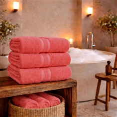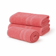 Experience a lovely combination of soft comfort, good absorbency and a clean design with this coral coloured bath towel from IN Style. The towel measures 65x130 cm and is made from 100% soft cotton, giving a pleasant and slightly plush feel against the skin. The larger size makes the towel ideal after bathing, as it quickly and effectively absorbs water and provides comfortable drying of the body.