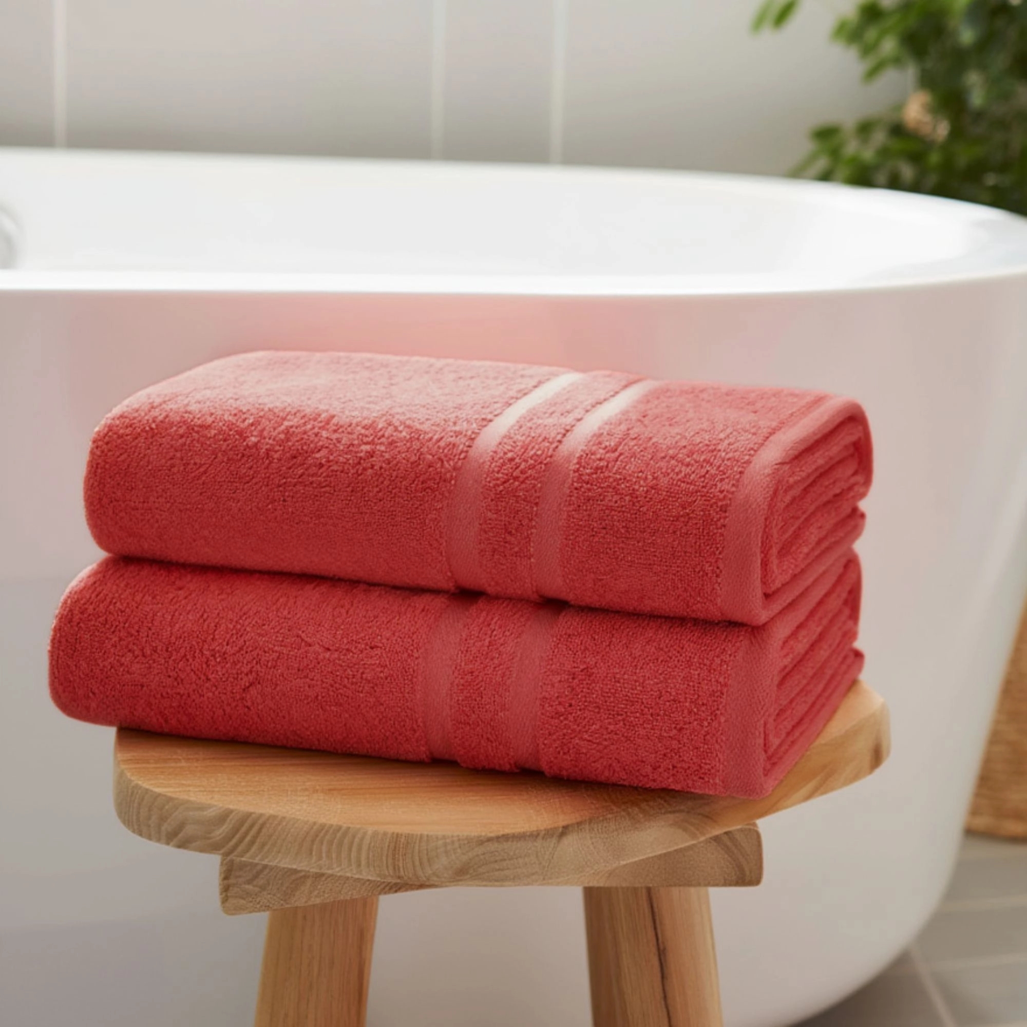 Coral coloured cotton bath towel 65x130 cm - Soft towel from IN Style