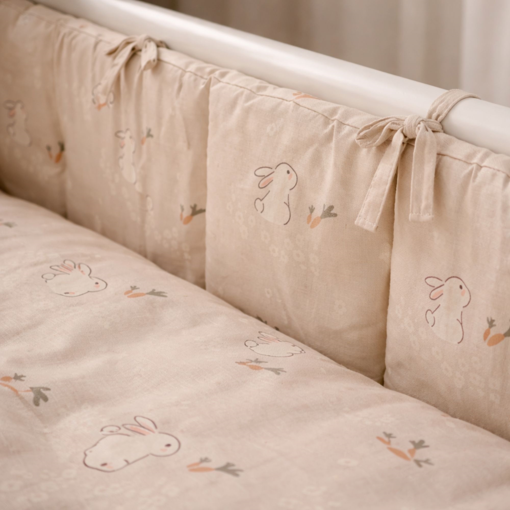 Crib bumper 360x30 cm in sand with rabbits - For crib