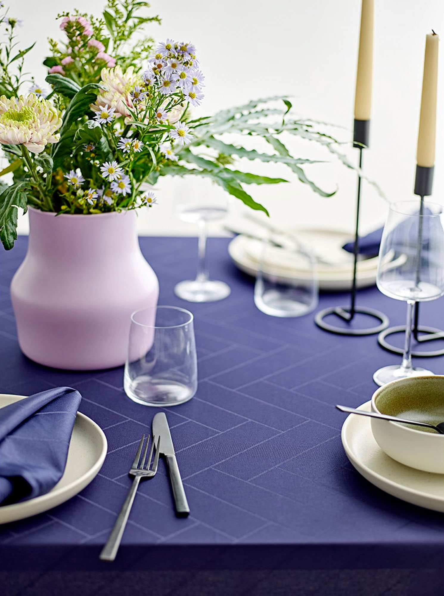 Home » Interior Design » For the table » Tablecloths Damask tablecloth 140x370 - 100% damask-woven cotton - Tiles Södahl - Blue Södahl Great price:115,99EUR In stock Quantity Add to basket See more from: Södahl Item number: 28026 See everything for the table here See everything for the table here See everything for the table here Do you have questions about the product? Damask weaving gives an elegant and subtle pattern playThe tablecloth is easy to maintain and keep looking niceIdeal for dinners, gatherings and celebrations Width: 140 cm Length: 370 cm Type: Damask tablecloth Color: Indigo - Blue Design: Tiles - Herringbone Quality: 100% cotton Brand: Södahl Wash: 40° Tumble dry: No Ironing: Yes Certification: STANDARD 100 by OEKO-TEX® (8051CIT CITEVE). Your guarantee that the product is free from harmful chemicals. Damask tablecloth 140x370 cm - Tiles from Södahl Set the table with style and elegance with this beautiful Tiles damask tablecloth from Södahl. The classic herringbone pattern provides a timeless and exclusive look, creating the perfect setting for both everyday use and festive occasions. The tablecloth is made from 100% cotton and woven in a fine damask quality that gives an elegant texture and a subtle surface effect. The deep indigo blue color adds a sophisticated and modern touch to the table setting. Whether you are setting the table for guests, family gatherings or celebrations, this tablecloth creates a stylish base that beautifully highlights your table arrangement. The durable cotton quality makes the tablecloth suitable for daily use while maintaining its elegant appearance. It can be washed at 40 degrees and tolerates ironing, so you can easily keep it neat and presentable. The tablecloth is OEKO-TEX® certified, which means it has been tested for harmful chemicals and is safe to use in the home. See the full range of tablecloths here Södahl Södahl is a well-known Danish brand that combines timeless design with high quality and functional solutions for the home. With a focus on both aesthetics and comfort, Södahl has for many years been a leader in exclusive home textiles that create calm and harmony in interior design. The range is broad and includes everything from bedding and towels to tablecloths, throws and other textiles - all made in soft materials and modern Nordic colors that fit perfectly into the sleek home. See the full range from Södahl here Return to Tablecloths