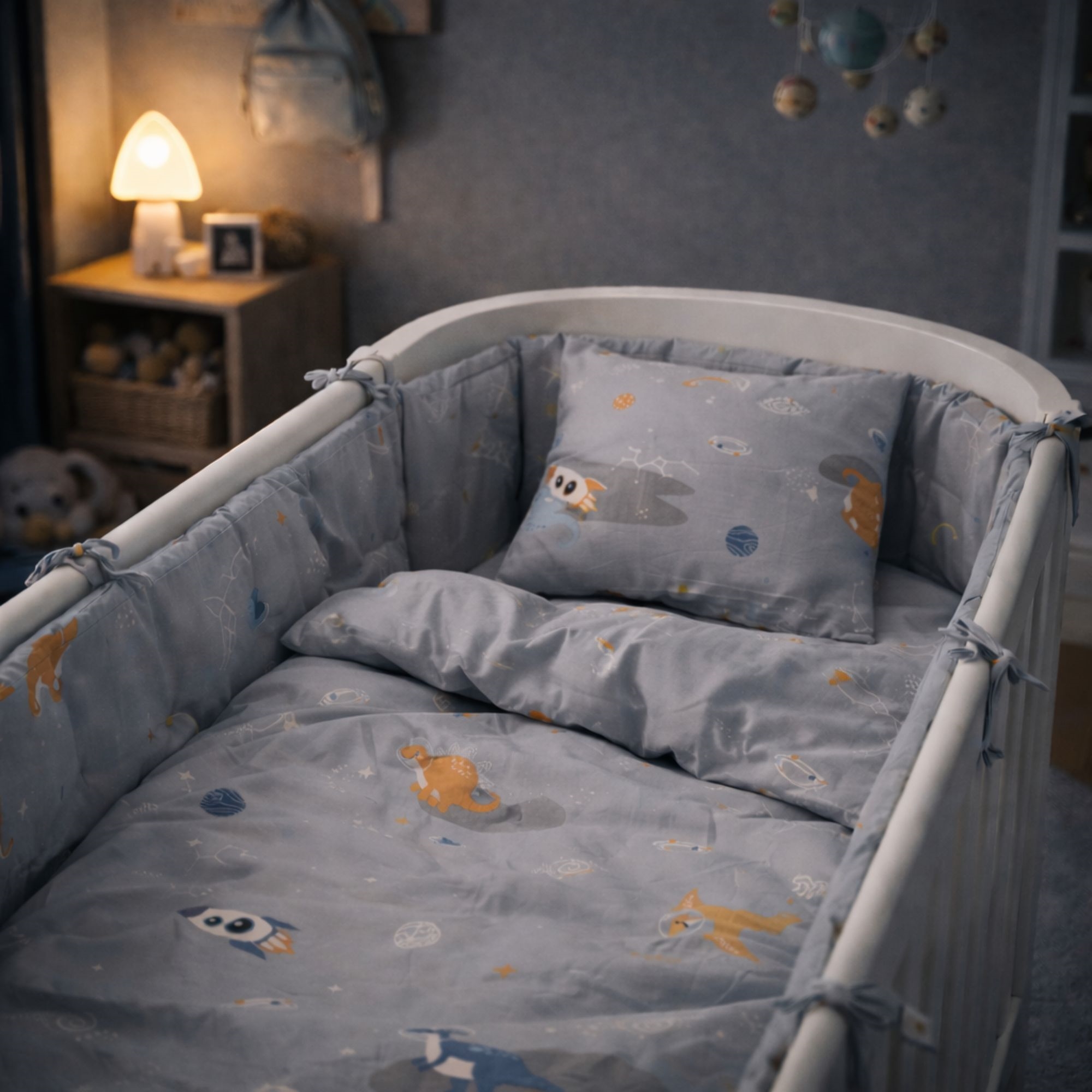 Home » Bedding » Children's bedding » Baby bedding 70x100 cm Dinosaur bedding - 100% cotton - Baby bedding 70x100 cm - Grey Save50% Nordstrand Home 40,9920,49EURSave 21,- In stock Quantity Add to basket See more from: Nordstrand Home Item number: 1260-7 Read our bedding guide See our large selection of sheets See our large selection of duvets 70x100 Do you have questions about the product? Breathable material that provides a comfortable sleeping environmentSoft cotton quality that feels pleasant from the first nightFree from harmful chemicals Duvet cover: 70x100 cm - baby bedding set Pillowcase: 40x45 cm Material: 100% soft cotton Color: Grey Design: Space dinosaur Brand: Nordstrand Home Closure: Duvet and pillowcase with overlap Wash: 60° Tumble dry: Yes Ironing: Yes Certification: STANDARD 100 by OEKO-TEX® (2013PK0176 AITEX). Your guarantee that the product is free from harmful chemicals. Baby bedding 70x100 cm with dinosaurs The bedding is made from 100% soft cotton, which is breathable and gentle against the child's skin. Cotton's natural properties help regulate temperature so your child gets a comfortable and restful night's sleep. When you choose baby bedding in 100% cotton, you get a material that: Is naturally breathable Helps with temperature regulation Feels soft and comfortable against the skin Withstands daily use and frequent washing Cotton is an obvious choice for babies because it creates a healthy sleeping environment and provides optimal comfort throughout the night. Baby bedding needs to withstand everyday use. Therefore our cotton bedding can be washed at 60°, which helps ensure a high level of hygiene. The high washing temperature helps remove bacteria and keeps the bedding fresh and clean. All our baby bedding in 70x100 cm is OEKO-TEX certified. This is your guarantee that the bedding has been tested and is free from harmful chemicals. When you choose OEKO-TEX certified bedding, you choose safety and security for your child. This lovely baby bedding set has a cool and calm design with small space dinosaurs. The soft grey background gives the bedding a natural and harmonious look that fits perfectly in a cozy children's room. Explore favorites and much more in our large selection of accessories for the children's room Nordstrand Home With Nordstrand Home you are guaranteed home textiles in Danish design - in a Nordic style. Nordstrand Home places great emphasis on the feeling of well-being in a beautiful yet relaxing environment. With Nordstrand Home you don't have to compromise; you will always find products in classic and fashionable colors. Nordstrand Home – So you feel at home! See the full range from Nordstrand Home here Return to Baby bedding 70x100 cm Customers also bought Owl bedding - 100% cotton - Baby bedding 70x100 cm - Blue In stock 40,9917,99EUR Add to basket Rabbit bedding - 100% cotton - Baby bedding 70x100 cm - Beige In stock 40,9920,49EUR Add to basket Bedding with animals - 100% cotton - Baby bedding 70x100 cm - Farm motif In stock 40,9913,99EUR Add to basket Space motif bedding - 100% cotton - Baby bedding 70x100 cm - Blue with space motifs In stock 20,4910,99EUR Add to basket Dinosaur bedding - 100% cotton - Baby bedding 70x100 cm - Green with dinosaurs In stock 20,4910,99EUR Add to basket Dinosaur bedding - 100% cotton - Baby bedding 70x100 cm - Green with dinosaurs In stock 20,4910,99EUR Add to basket Striped bedding - 100% cotton - Baby bedding 70x100 cm - White with green stripes In stock 20,4910,99EUR Add to basket Checked bedding - 100% cotton - Baby bedding 70x100 cm - White and blue with checks In stock 20,4910,99EUR Add to basket Baby pillow with fibre down - 40x45 cm - Zen Sleep - Children's pillow In stock 27,4910,99EUR Add to basket Sheet for pram - 36x98 cm - White stretch fitted sheet - 100% Cotton - Fitted sheet for pram mattress In stock 20,499,99EUR Add to basket