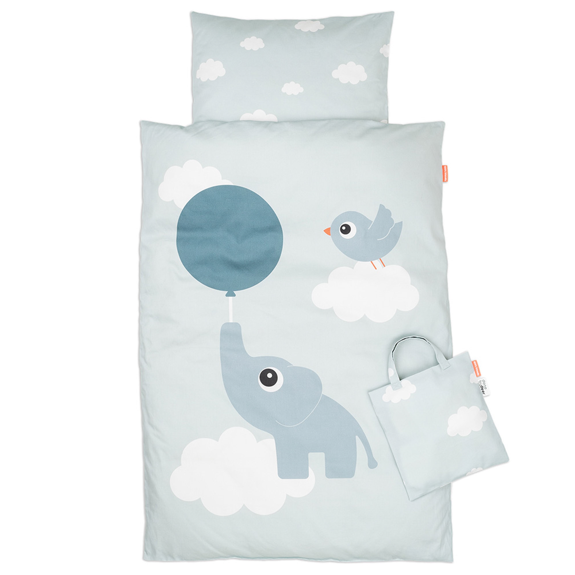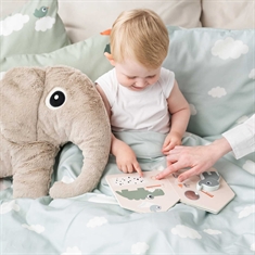 The sweet design with the elephant Elphee, Birdee, balloons and clouds creates a safe and playful atmosphere for the baby. The set is reversible, so you can easily change the look between the pretty motif and the calm cloud print on the reverse.