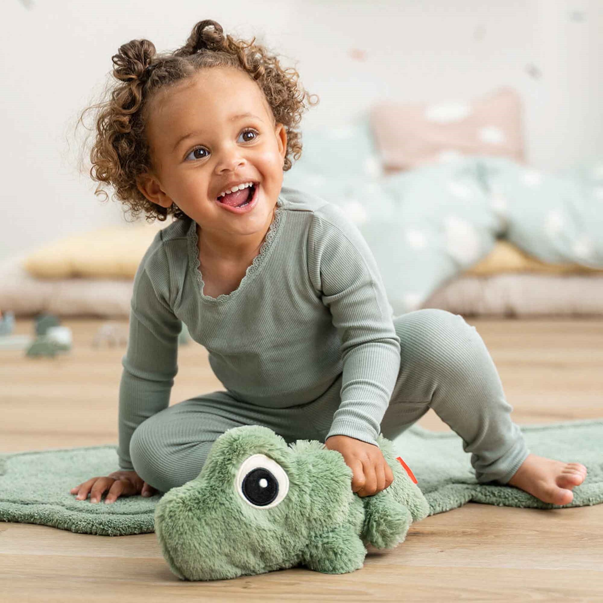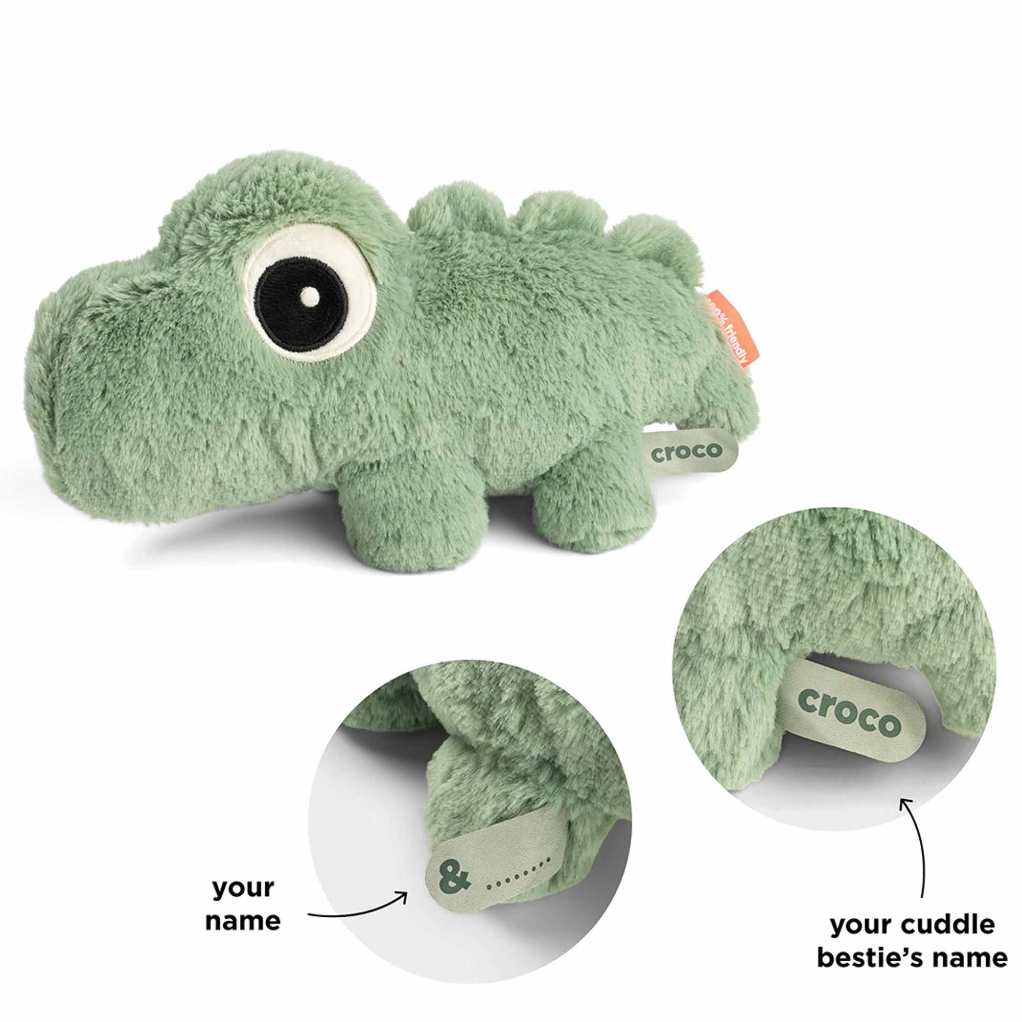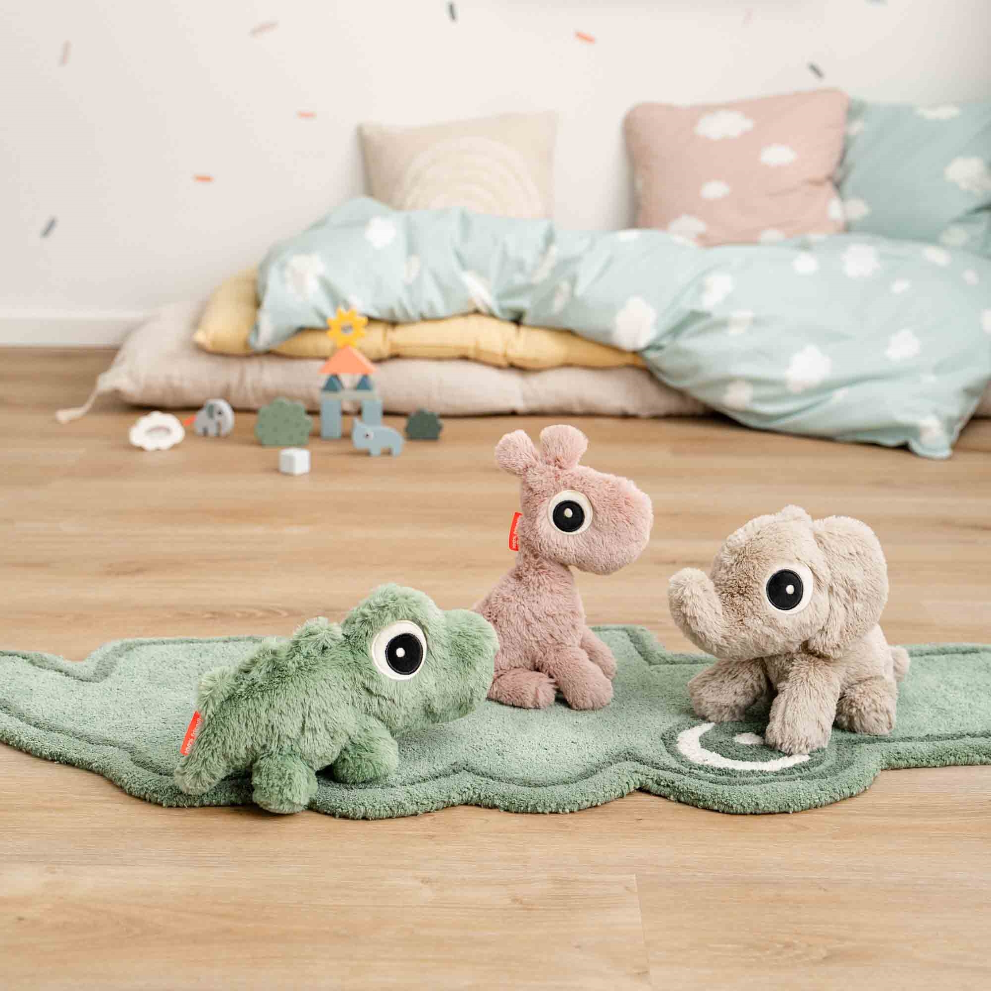 Home » Interior Design » The children's room Done By Deer teddy - Croco cuddly toy - Green Done By Deer Great price:21,99EUR In stock Quantity Add to basket See more from: Done By Deer Item number: 4063223 Do you have questions about the product? Creates calm and security at bedtimeSoft cuddly toy in high-quality plushPerfect for babies and small children Type: Cuddly toy Size: 28 cm Material: 100% polyester plush and filling with 100% polyester fibres with bead pouch Color: Green Design: Croco Brand: Done By Deer Wash: 40° Tumble dry: No Age: 0+ This toy has been tested and complies with the European toy safety standard EN 71. Cuddly toy for baby - soft comfort and a friend for life Give your child a secure and loving start with this super-soft cuddly toy from Done by Deer in the popular Croco design. The toy measures 28 cm and is made for small children who need closeness, comfort and lots of hugs. The soft plush makes Croco a perfect companion both at bedtime, during play and in quiet moments. The toy is designed to create security from day one and quickly becomes the child's best friend in everyday life. The toy comes with a small storybook that brings Croco's personality to life and creates a cozy story the child can grow up with. The soft name tag allows you to personalise the toy and make it even more special. Croco is made from soft materials and is tested according to applicable safety standards, making it a safe choice for both babies and small children. Perfect as a gift for birth, christening or as a faithful friend in everyday life. See all children's items here Done by Deer Done by Deer is a Danish brand that combines Scandinavian design with functional solutions for babies and children. The brand is known for its clean designs in soft colours and playful motifs, which fit perfectly into modern homes. The range spans from tableware, lunchboxes and storage to textiles, toys and interior. Done by Deer places great emphasis on quality and safety. The products are made from materials that comply with applicable standards for food safety and children's products, so you can use them with confidence in everyday life. See the full Done By Deer range here. Return to The children's room