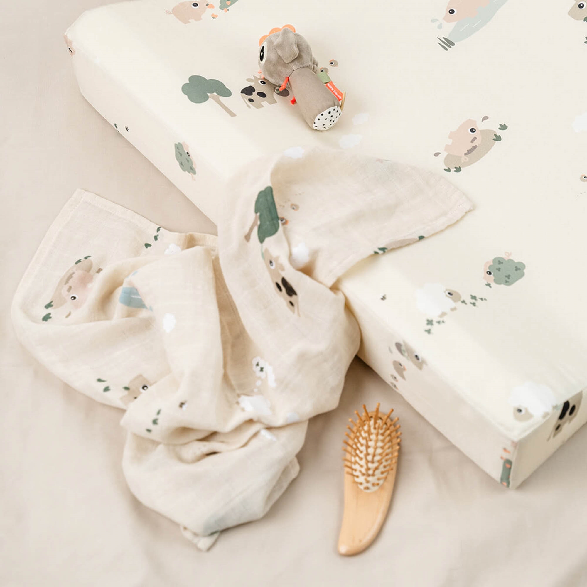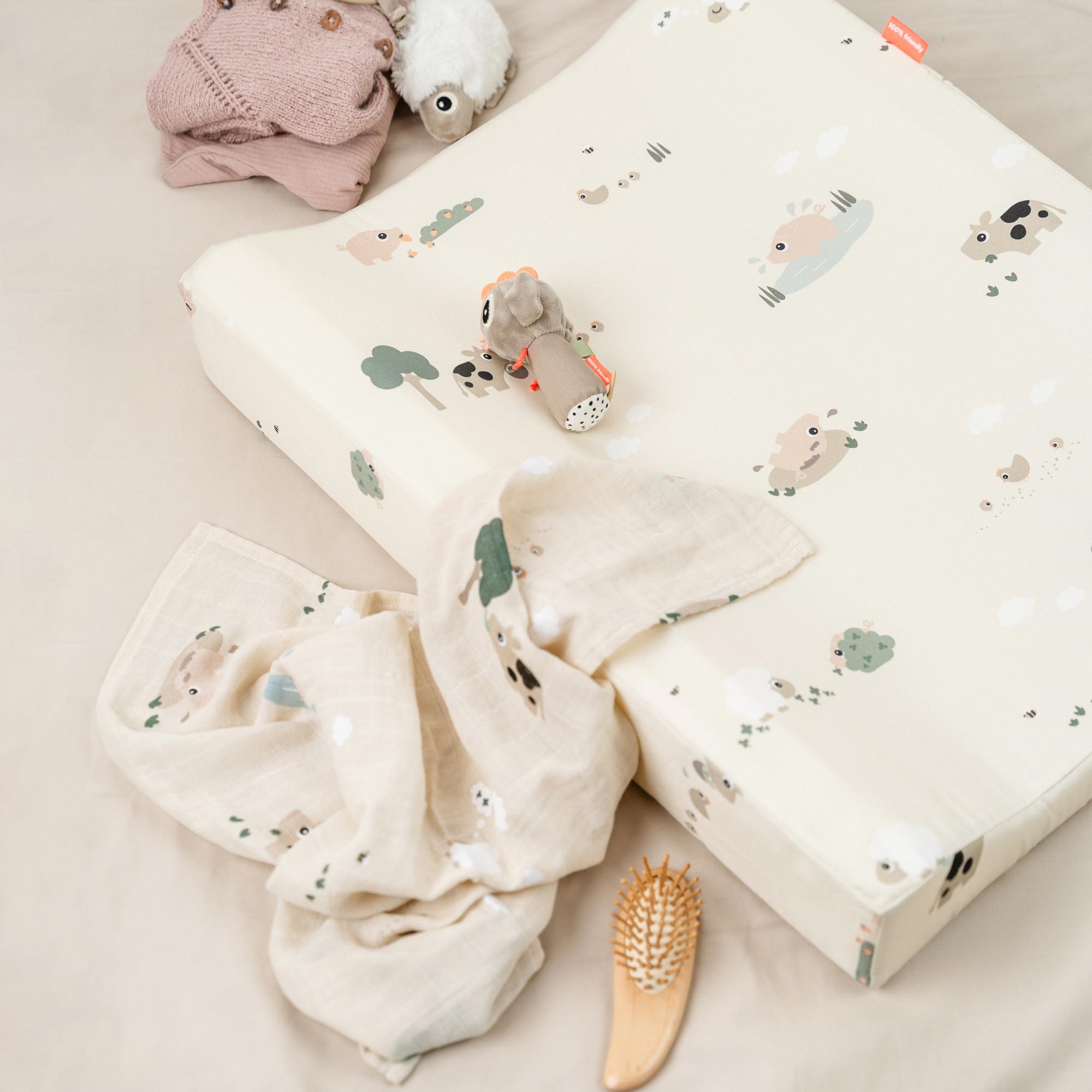 Home » Interior Design » The children's room » Changing pads Done By Deer changing pad - water-repellent cover - Tiny Farm - Sand Done By Deer Great price:59,99EUR In stock Quantity Add to basket See more from: Done By Deer Item number: 3253089 Do you have questions about the product? Removable water-repellent and washable coverElevated side edges for extra safetyPU foam provides a comfortable lying surface for your baby Type: Changing pad Size: 65x50 cm Height: 10 cm edges Filling: 100% PU foam. Cover: 100% polyester with PU coating (water-repellent) Color: Sand Series: Tiny Farm Brand: Done By Deer Washing: - Cover: Can be washed at 30 °C delicate wash inside out - Mattress: Can be hand washed Tumble drying: No Certification: STANDARD 100 by OEKO-TEX® (BJ025 153971 TESTEX). Your guarantee that the product is free from harmful chemicals. Changing pad for baby - comfort, safety and easy cleaning Make changing time both safe and comfortable with this practical changing pad from Done by Deer in the cute Tiny Farm design. The changing pad measures 65x50 cm and is designed with a focus on comfort, safety and functionality. The soft mattress made of PU foam provides your child with a comfortable lying surface, while the raised edges help keep the child safely in place during nappy changes. This gives extra reassurance in everyday life. The changing pad is covered with a water-repellent surface, making it easy to wipe off and keep clean. That means you can quickly and easily handle small accidents without hassle - perfect for a busy everyday life with a baby. The pretty sand-colored design with a farm motif adds a cozy and playful touch to the changing area. At the same time, the material is OEKO-TEX® certified, so you can be confident that it is free from harmful chemicals and gentle on your child's skin. See all our changing pads here Done by Deer Done by Deer is a Danish brand that combines Scandinavian design with functional solutions for babies and children. The brand is known for its clean products in soft colors and playful motifs that fit perfectly into modern homes. The range spans from tableware, lunch boxes and storage to textiles, toys and interior. Done by Deer places great emphasis on quality and safety. The products are made from materials that meet applicable standards for food safety and children's products, so you can use them with confidence in everyday life. See the full range from Done By Deer here. Return to Changing pads