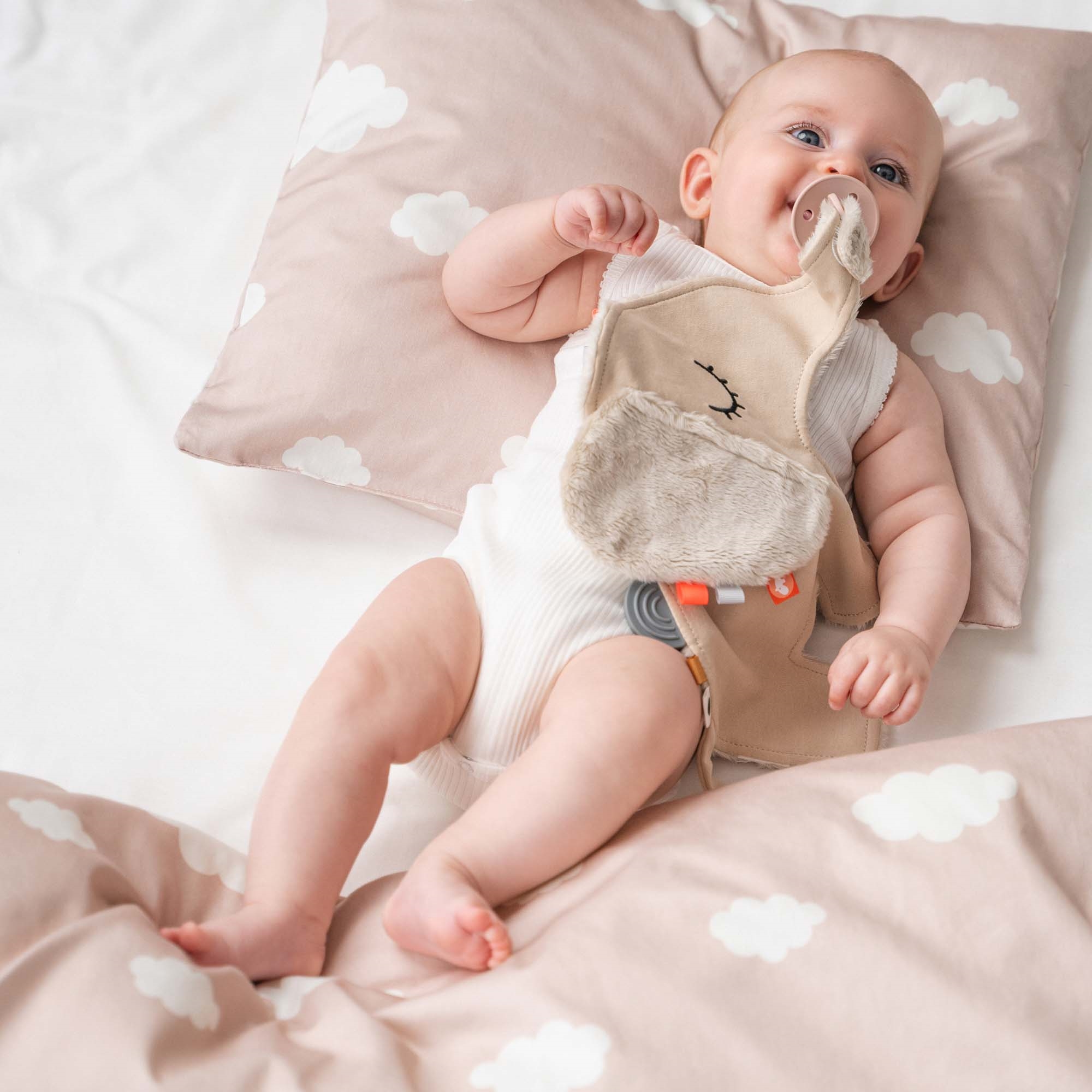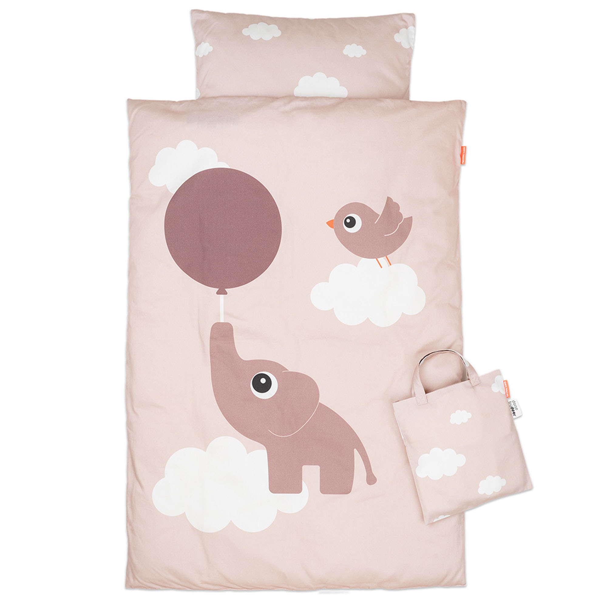 Home » Bedding » Children's bedding » Baby bedding 70x100 cm Done By Deer bedding - 100% cotton - Baby bedding 70x100 cm - Elphee - Pillows Done By Deer Great price:40,99EUR In stock Quantity Add to basket See more from: Done By Deer Item number: 2043071-7 Read our bedding guide See our wide selection of sheets See our wide selection of duvets 70x100 Do you have questions about the product? Breathable material that ensures a comfortable temperatureSoft and pleasant surface against baby's skinReversible design with two different designs Duvet cover: 70x100 cm - baby bedding set Pillowcase: 40x45 cm Material: 100% cotton Color: Light pink Reversible: - Front: Elphee and Birdee - Back: All-over print of small clouds Series: Elphee Brand: Done By Deer Closure: Duvet and pillow covers with zipper Wash: 60°C Tumble dry: Yes Ironable: Yes Certification: STANDARD 100 by OEKO-TEX® (15.HTR.57912). Your guarantee that the product is free from harmful chemicals. Elphee baby bedding in cotton from Done By Deer Make bedtime a cozy and secure experience with this lovely baby bedding set from Done by Deer in the popular Elphee design. The set consists of a duvet cover in size 70x100 cm and a pillowcase of 40x45 cm - perfect for the baby bed. The bedding is made from 100% soft cotton and is OEKO-TEX® certified, which makes it extra gentle on baby's delicate skin and free from harmful chemicals. The soft quality ensures high comfort and a calm and pleasant sleep. The sweet design with the elephant Elphee, Birdee, balloons and clouds creates a safe and playful atmosphere around the baby. The set is reversible, so you can easily change the look between the pretty motif and the calm cloud print on the reverse. The duvet and pillow covers are closed with practical YKK zippers, which make it easy to change the bedding. The set is delivered in a matching fabric bag that can be used for storing small items or as a nice gift wrapping. See all baby bedding here Done by Deer Done by Deer is a Danish brand that combines Scandinavian design with functional solutions for babies and children. The brand is known for its clean products in soft colors and playful motifs that fit perfectly into modern homes. The assortment ranges widely from tableware, lunchboxes and storage to textiles, toys and interior. Done by Deer places great emphasis on quality and safety. The products are made from materials that meet applicable standards for food safety and children's products, so you can safely use them in everyday life. See the full range from Done By Deer here. Return to Baby bedding 70x100 cm