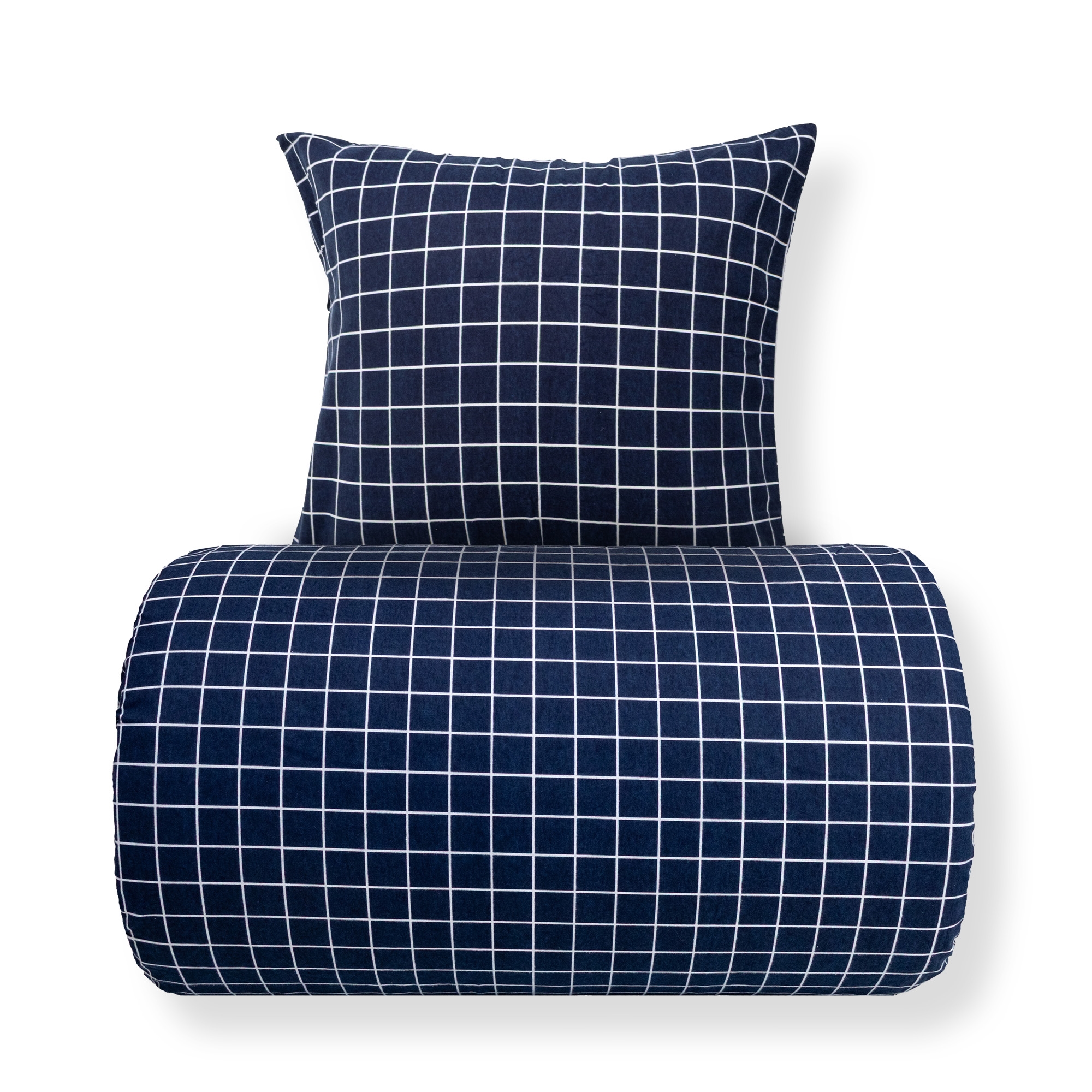Create a cozy and inviting atmosphere in the bedroom with this checked flannel bedding set for double duvets in blue with white details. The soft cotton flannel bedding provides a warm and comfortable feel - perfect for chilly nights.