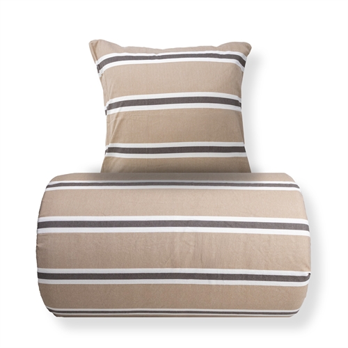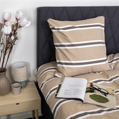 Create a cozy and inviting atmosphere in the bedroom with this striped flannel bedding for double duvets in beige with brown and white details. The soft cotton flannel bedding provides warm and comfortable comfort - perfect for chilly nights.