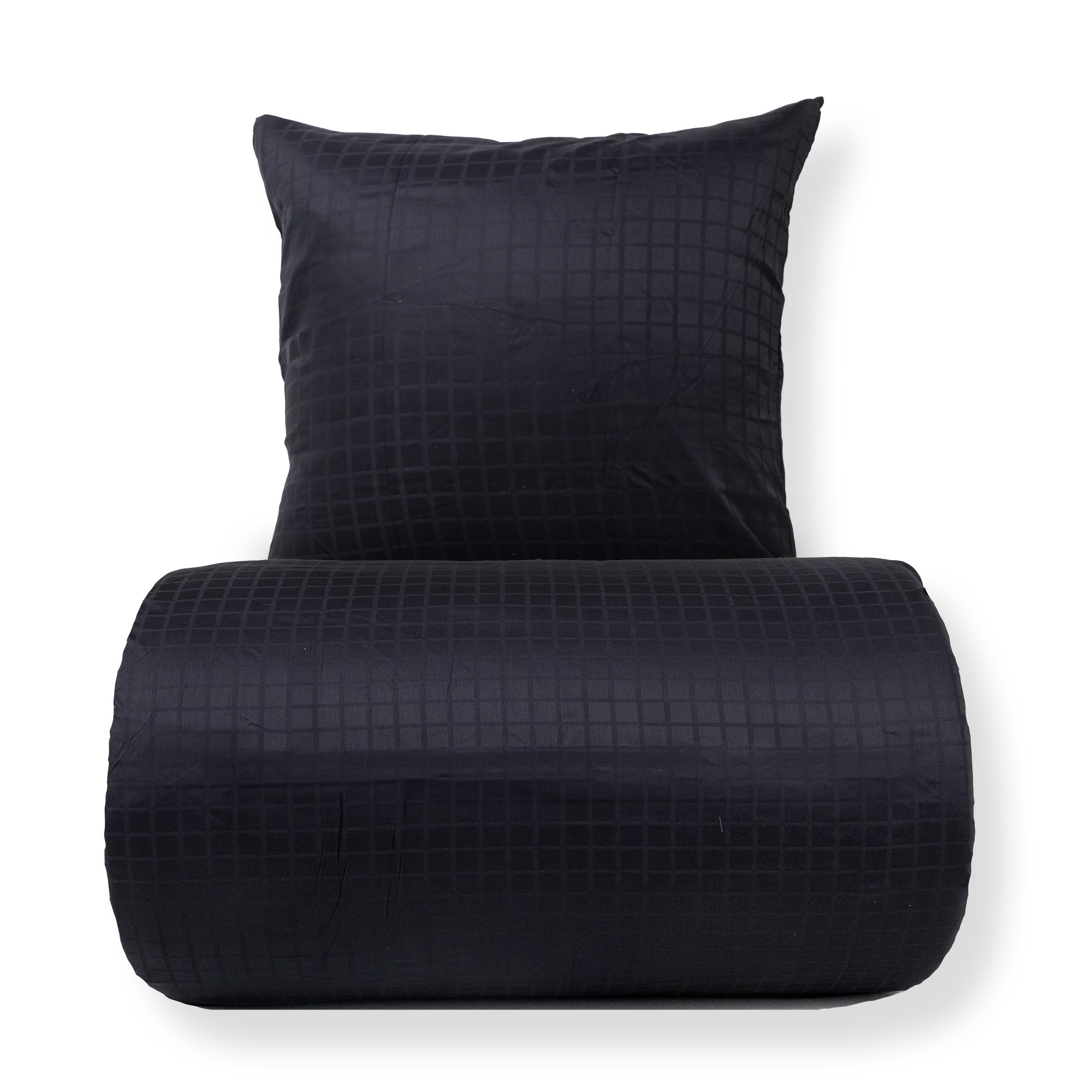 The black squares provide a modern and sophisticated look that fits perfectly into both minimalist and classic bedrooms. The duvet and pillowcases close with a concealed zipper, giving a neat finish and keeping the duvet securely in place.