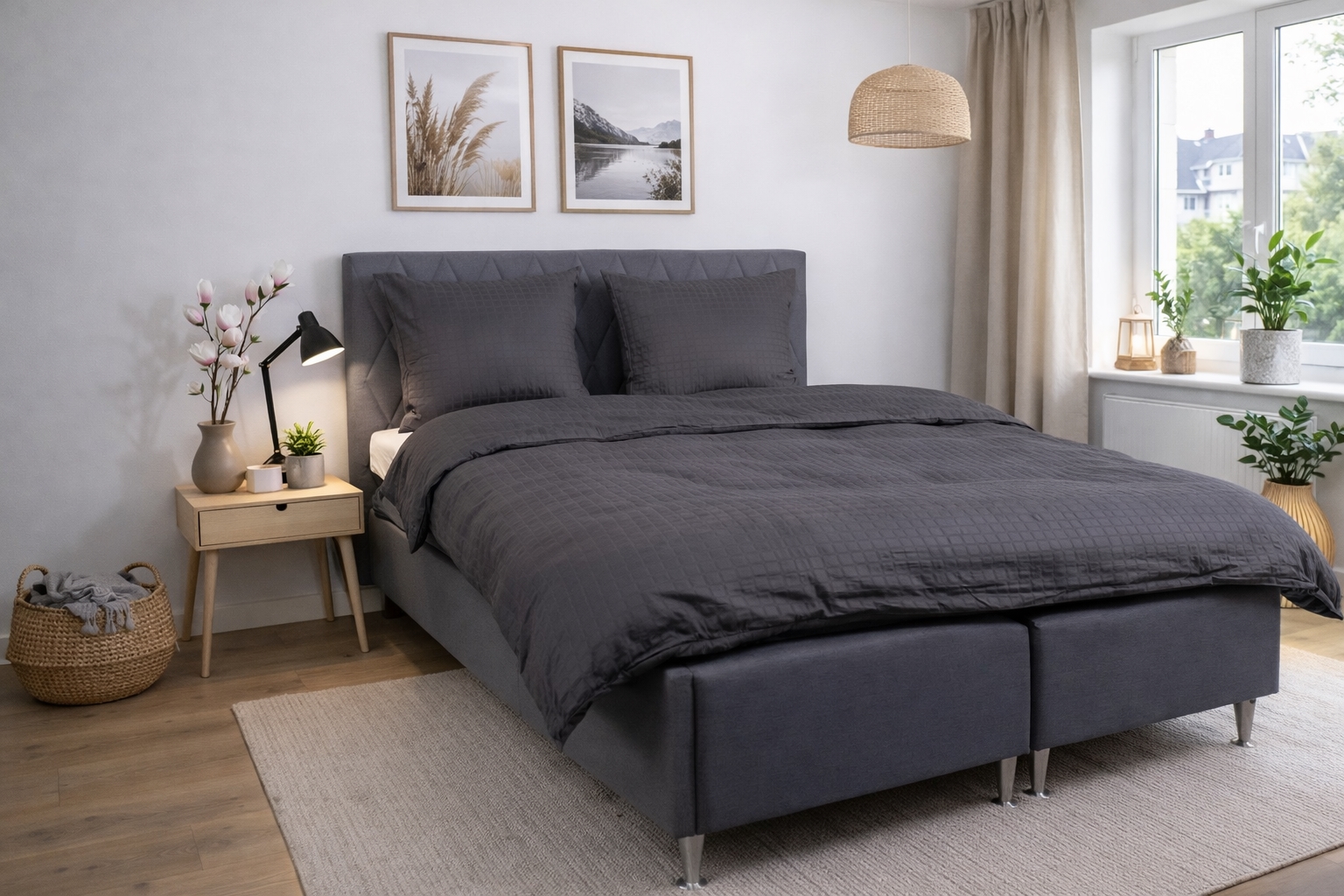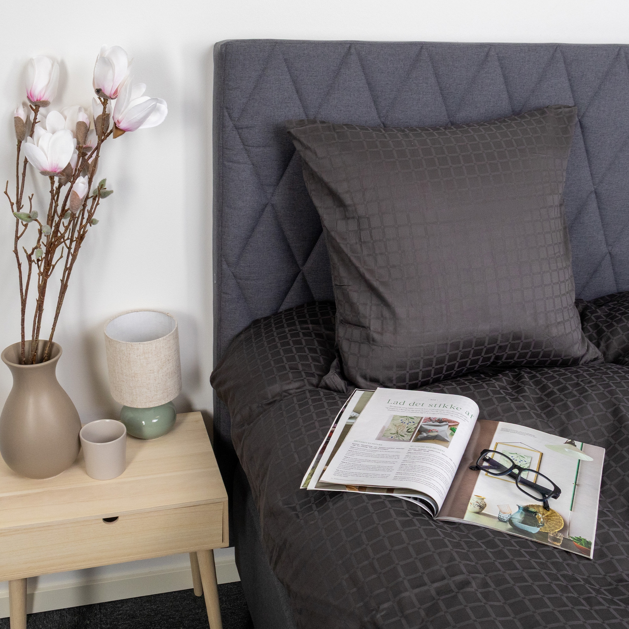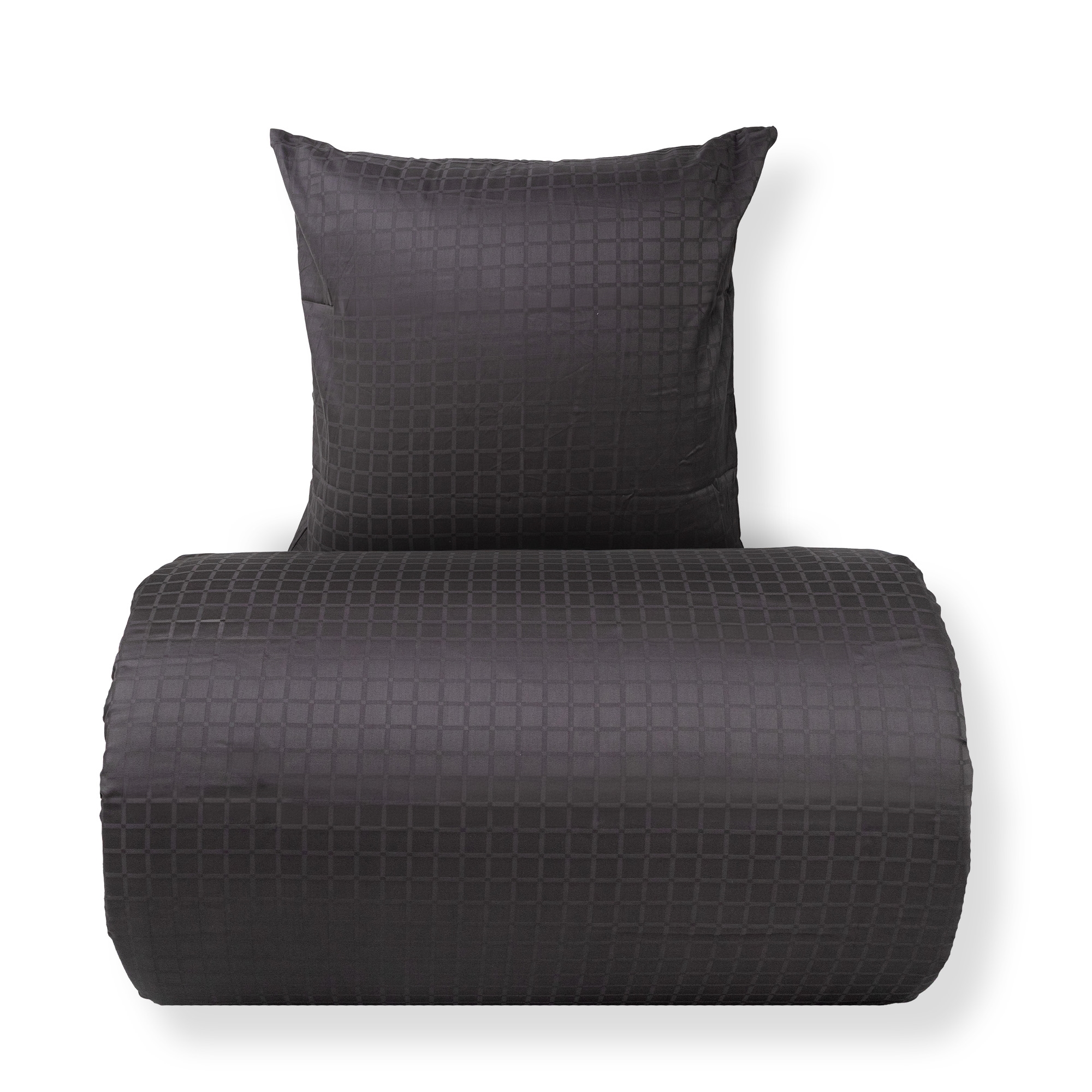 The dark grey squares provide a modern and sophisticated look that fits perfectly in both minimalist and classic bedrooms. The duvet and pillow covers close with a hidden zipper, providing a neat finish and keeping the duvet securely in place.