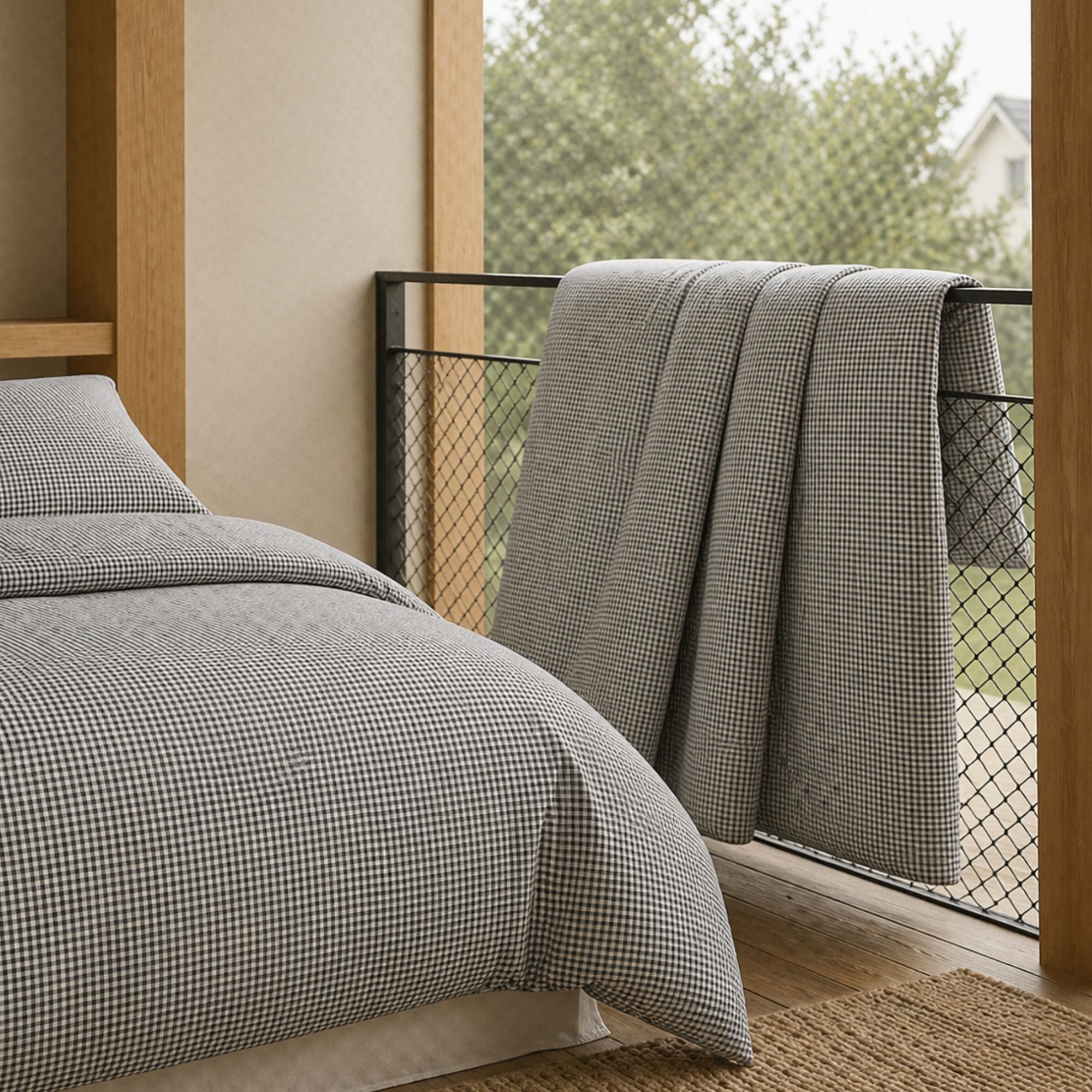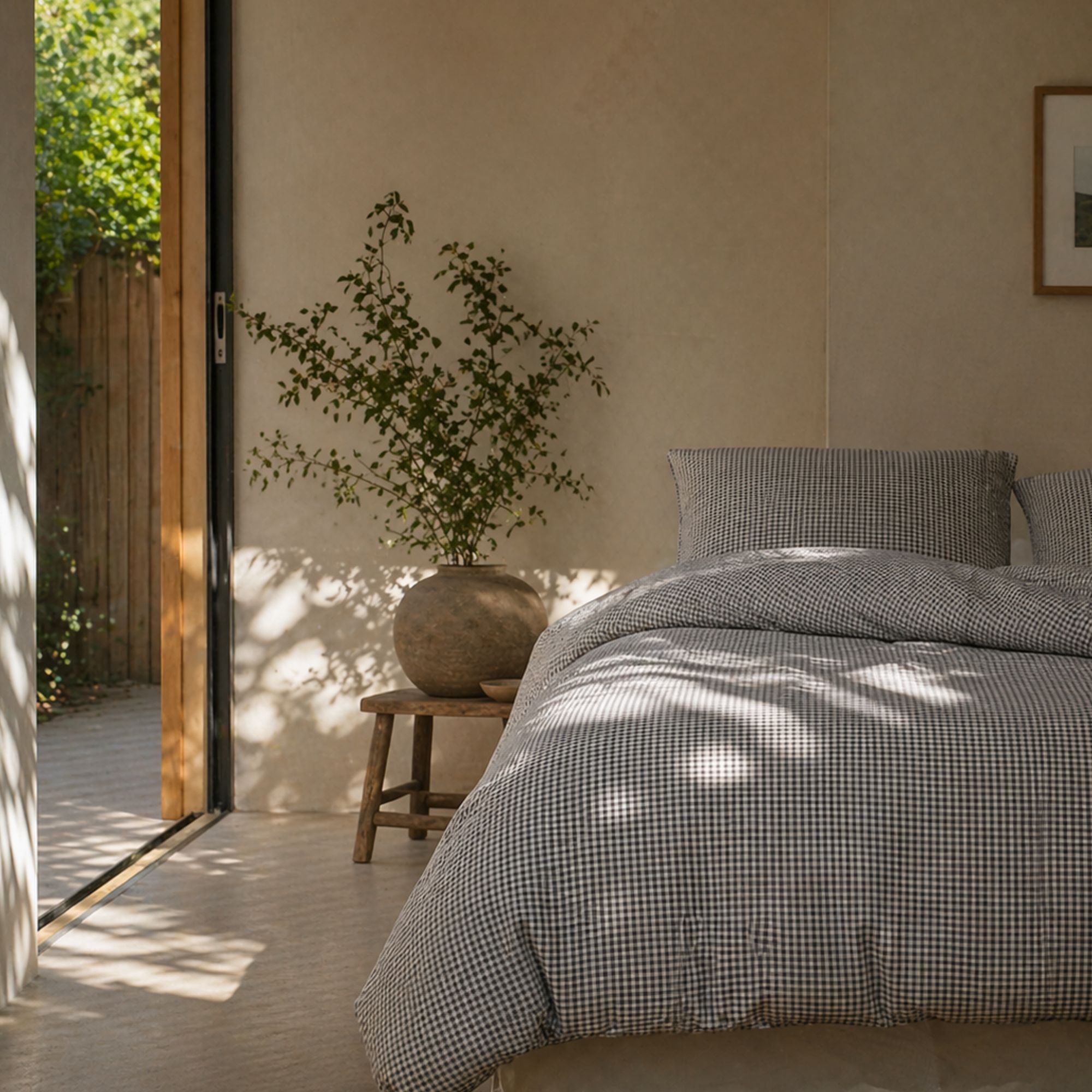 Home » Bedding » Double bedding » Double bedding 200x220 cm Double bedding 200x220 cm - 100% cotton - Høie of Scandinavia - Frans Muted Black 2 x PillowcasesSave22% Høie Of Scandinavia 122,4995,49EURSave 27,- In stock Quantity Add to basket See more from: Høie Of Scandinavia Item number: 7648-5 Read our bedding guide See our large selection of sheets See our large selection of duvets 200x220 Do you have questions about the product? Breathable material that promotes a good night’s sleepSoft bedding that feels pleasant against the skinAchieve a comfortable night’s sleep all night Duvet cover: 200x220 cm Pillowcases: 2 pcs. á 60x63 cm Material: 100% extra-fine cotton Weave: Extra-fine 220TC (Thread count = number of threads per square inch) Color: Black Design: Frans Muted Black Brand: Høie of Scandinavia Closure: Duvet cover with zipper, pillowcases with overlap Wash: 60° Tumble dry: Yes Suitable for ironing: Yes Certification: EASY CARE treated, which means it does not crease after washing. Certification: STANDARD 100 by OEKO-TEX® (M27M5W5V2). Your guarantee that the product is free from harmful chemicals. Checked double bedding in extra-fine cotton from Høie This bedding set from Høie Of Scandinavia is made from 100% extra-fine cotton with a fine 220TC weave, which gives a soft and smooth surface with a discreet sheen. Cotton is a natural material that feels soft against the skin and is also breathable, allowing the body to release heat and moisture during the night. This makes cotton bedding suitable for use year-round and for both warm and cooler nights. Cotton is known for being robust and durable, able to withstand frequent washing and daily use without affecting the quality. Double bedding is the ideal choice for those who use a double duvet and want a uniform and calm look in the bed. Double bedding provides good freedom of movement throughout the night and is suitable for couples and anyone who wants extra space and comfort. This set includes one duvet cover and two pillowcases. The bedding is STANDARD 100 by OEKO-TEX® certified, which is your guarantee that the product is free from harmful chemicals. It is also Easy Care treated, which ensures less creasing and better shape after washing. Easy Care makes your bedding extra soft and easy to iron. Cotton satin bedding is therefore an obvious choice for those who want extra comfort and a hotel-like feeling at home, while still having a natural material that is easy to care for and comfortable to sleep in. See all our cotton bedding here Høie Of Scandinavia Høie of Scandinavia is a well-known Scandinavian textile brand that since 1850 has had a long history, especially within bedding, duvets and pillows. Høie is known for high quality, timeless design and comfort - this is reflected in their Nordic style and functionality. Høie combines traditional craftsmanship with modern production and materials to create products that are both comfortable to sleep in and durable in everyday life. See the full Høie range here Return to Double bedding 200x220 cm Customers also bought 2 x Pillowcases Double bedding 200x220 cm - Cotton satin - Blossom blue - Floral print In stock 149,9954,49EUR Add to basket "Bamboo" Bamboo towel - Bath sheet 100x150 cm - Bamboo/cotton - Black In stock 68,4947,99EUR Add to basket