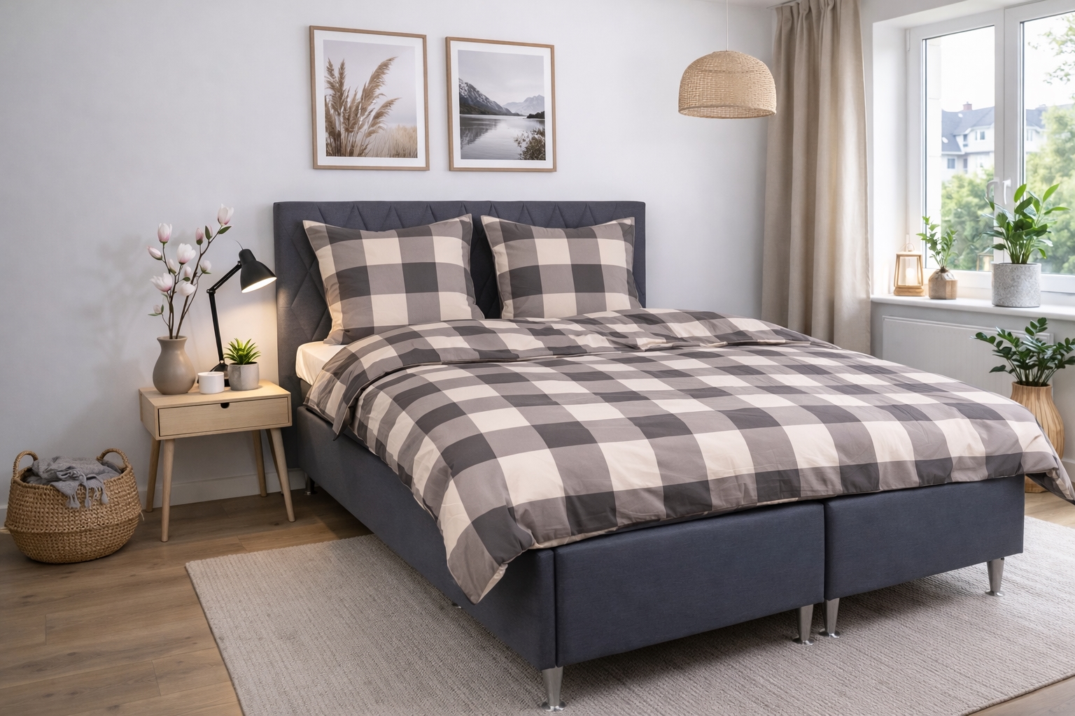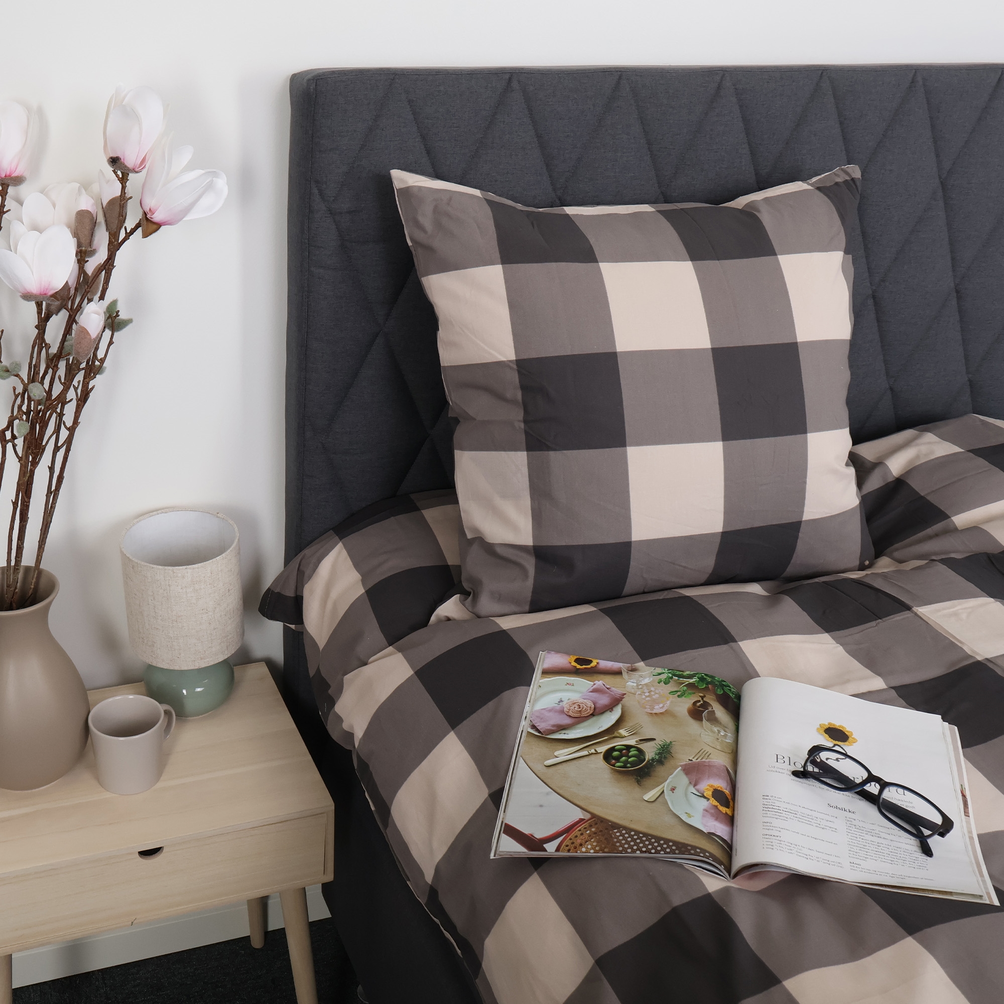 Home » Bedding » Double bedding » Double bedding 200x220 cm Double bedding 200x220 cm - 100% cotton - Grey checked 2 x PillowcasesSave59% Nordstrand Home 108,9944,99EURSave 64,- In stock Select size Select a variant Quantity Add to basket See more from: Nordstrand Home Item number: 2233-5 Read our bedding guide See our wide range of fitted sheets See our wide range of duvets 200x220 Do you have questions about the product? Natural and breathable materialFeels soft and comfortable against the skinPractical zipper closure in durable quality Duvet cover: 200x220 cm Pillowcases: 2 pcs. á 60x63 cm Material: 100% soft cotton Weave: 170 TC percale weave (Thread count = number of threads per square inch) Color: Grey Design: Checked Brand: Nordstrand Home Closure: Duvet and pillowcases with zipper Wash: 60° Tumble dry: Yes Ironable: Yes Certification: STANDARD 100 by OEKO-TEX® (2023OK2234). Your guarantee that the product is free from harmful chemicals. Double cotton bedding with grey checked design Give the bedroom a clean and calm expression with this elegant double bedding in cotton from Nordstrand Home. The classic checked design in grey shades creates a harmonious atmosphere and fits perfectly into both modern and Nordic interiors. Double bedding is the ideal choice if you use a double duvet and want a consistent and calm look in the bed. Double bedding provides good freedom of movement throughout the night and is suitable for both couples and those who want extra space and comfort. This set includes one duvet cover and two pillowcases. The bedding set is made from 100% soft cotton and woven in a dense 170TC percale quality. Percale weave means the fabric is extra fine and tightly woven, which gives a smooth and breathable surface. This weave makes the cotton bedding feel light and pleasant against the skin while also being durable and withstanding wash after wash. The tight weave also ensures that the color remains beautiful and clear, even after repeated washes at 60 degrees. This makes this percale bedding for double duvets a practical and durable choice for everyday use. The bedding is certified with STANDARD 100 by OEKO-TEX® (2023OK2234). It is your guarantee that the product has been tested and is free from harmful chemicals. Therefore it is a safe choice for the whole family – also for those with sensitive skin. Both duvet cover and pillowcases close with a practical zipper so the bedding stays neat all night. See all our cotton bedding here Nordstrand Home With Nordstrand Home you are guaranteed home textiles in Danish design - in a Nordic style. Nordstrand Home places great emphasis on the feeling of well-being in a beautiful, yet relaxing environment. With Nordstrand Home you do not need to compromise; you will always find products in classic and fashionable colors. Nordstrand Home – So you feel at home! See the full range from Nordstrand Home here Return to Double bedding 200x220 cm Customers also bought 2 x Pillowcases Double bedding 200x220 cm - 100% cotton - Dark blue with white checks In stock 108,9944,99EUR Add to basket Ventilating Muscovy down duvet - 200x220cm - All-season double duvet with class 1 muscovy down - SLEEP TECH By Borg Air flow duvet In stock 748,49272,49EUR Add to basket 2 x Pillowcases Double bedding 200x220 cm - 100% cotton - Sand-coloured with brown stripes In stock 108,9944,99EUR Add to basket 2 x Pillowcases Bedding 200x220 cm - Zodiac black - Constellation - Double duvet cover in 100% cotton - Borg Living In stock 108,9947,99EUR Add to basket Pillow - The intelligent pillow - Medium pillow 60x63 cm - 3 chamber pillow - Borg Living In stock 68,4927,49EUR Add to basket Duvet and pillow set - Double summer duvet - 200x220cm + 2 pillows 60x63cm - Muscovy summer duvet In stock 734,99244,99EUR Add to basket Stretch fitted sheet 140x200 cm - Black jersey stretch fitted sheet - IN Style fitted sheet In stock 31,4912,49EUR Add to basket Stretch fitted sheet 140x200 cm - Grey jersey stretch fitted sheet - IN Style fitted sheet In stock 31,4912,49EUR Add to basket Stretch fitted sheet 90x200 cm - Grey jersey stretch fitted sheet - IN Style fitted sheet In stock 23,498,49EUR Add to basket Stretch fitted sheet 120x200 cm - White jersey sheet - 100% Cotton - Fitted sheet for mattress In stock 40,9923,49EUR Add to basket
