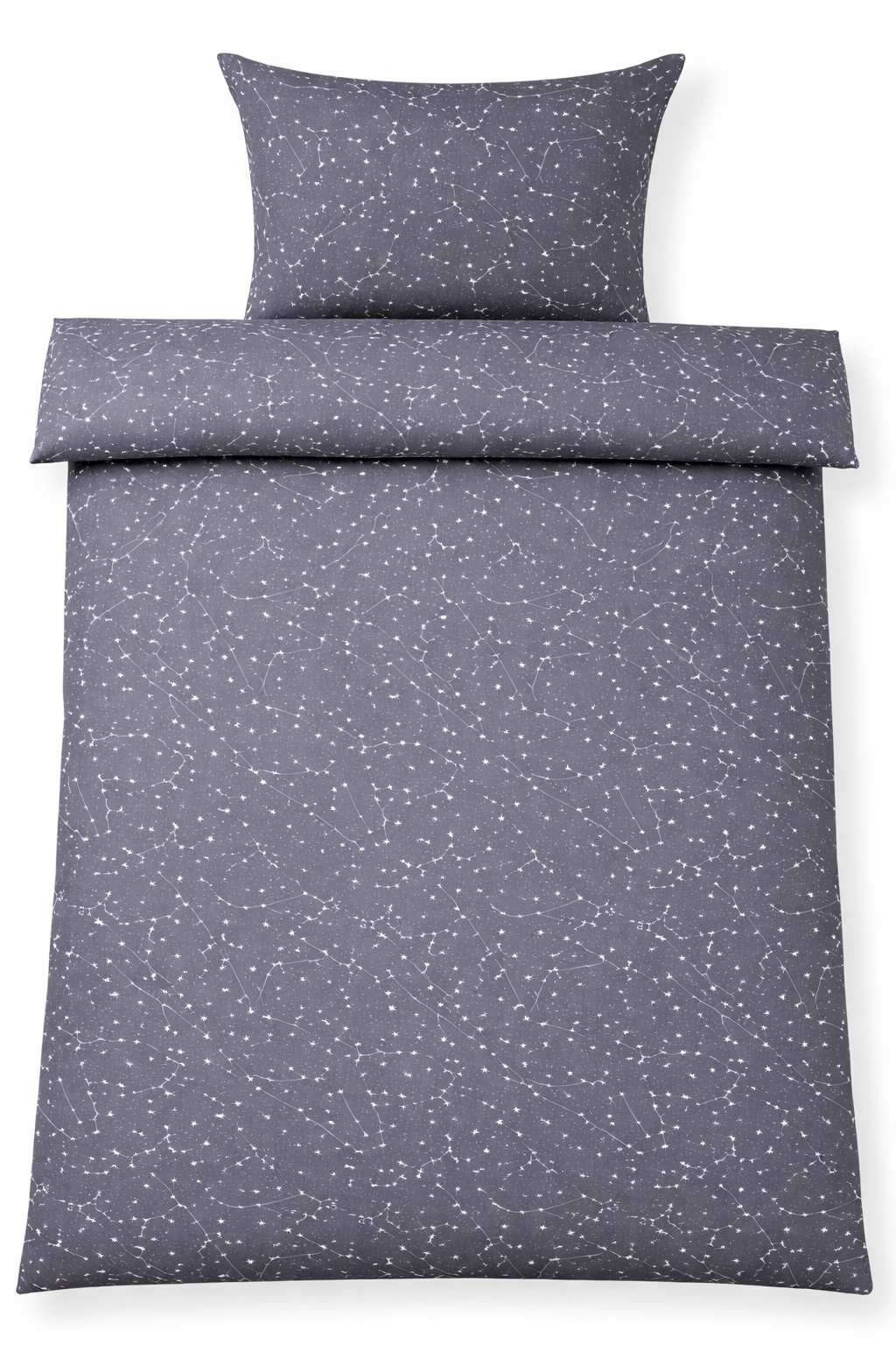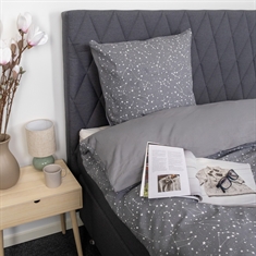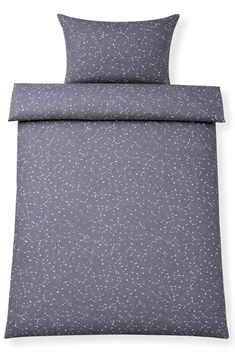 Give the bedroom a decorative and stylish look with this double duvet set in 100% cotton with a reversible design. The reversible design gives you two different looks in one bedding set. The front features a star/constellation pattern, while the back is solid in a more subdued style. This makes the bedding easy to combine with different colours, cushions and throws and gives greater flexibility in the decor.