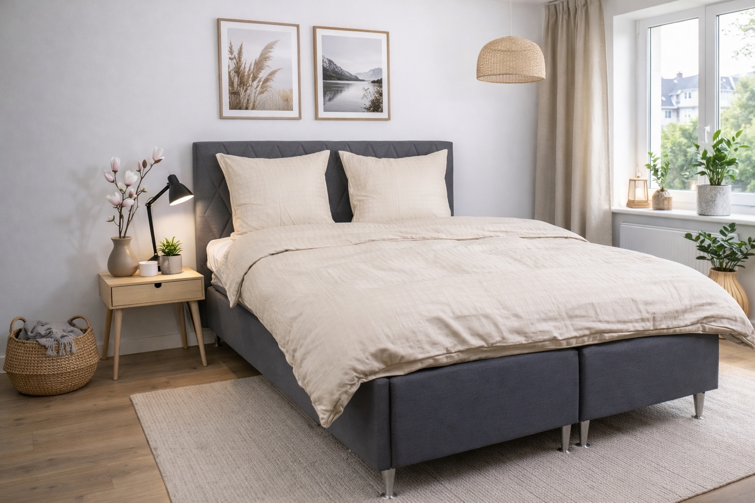 The sand-colored squares give a modern and sophisticated look that fits perfectly into both minimalist and classic bedrooms. The duvet and pillowcases close with a hidden zipper, providing a neat finish and keeping the duvet securely in place.