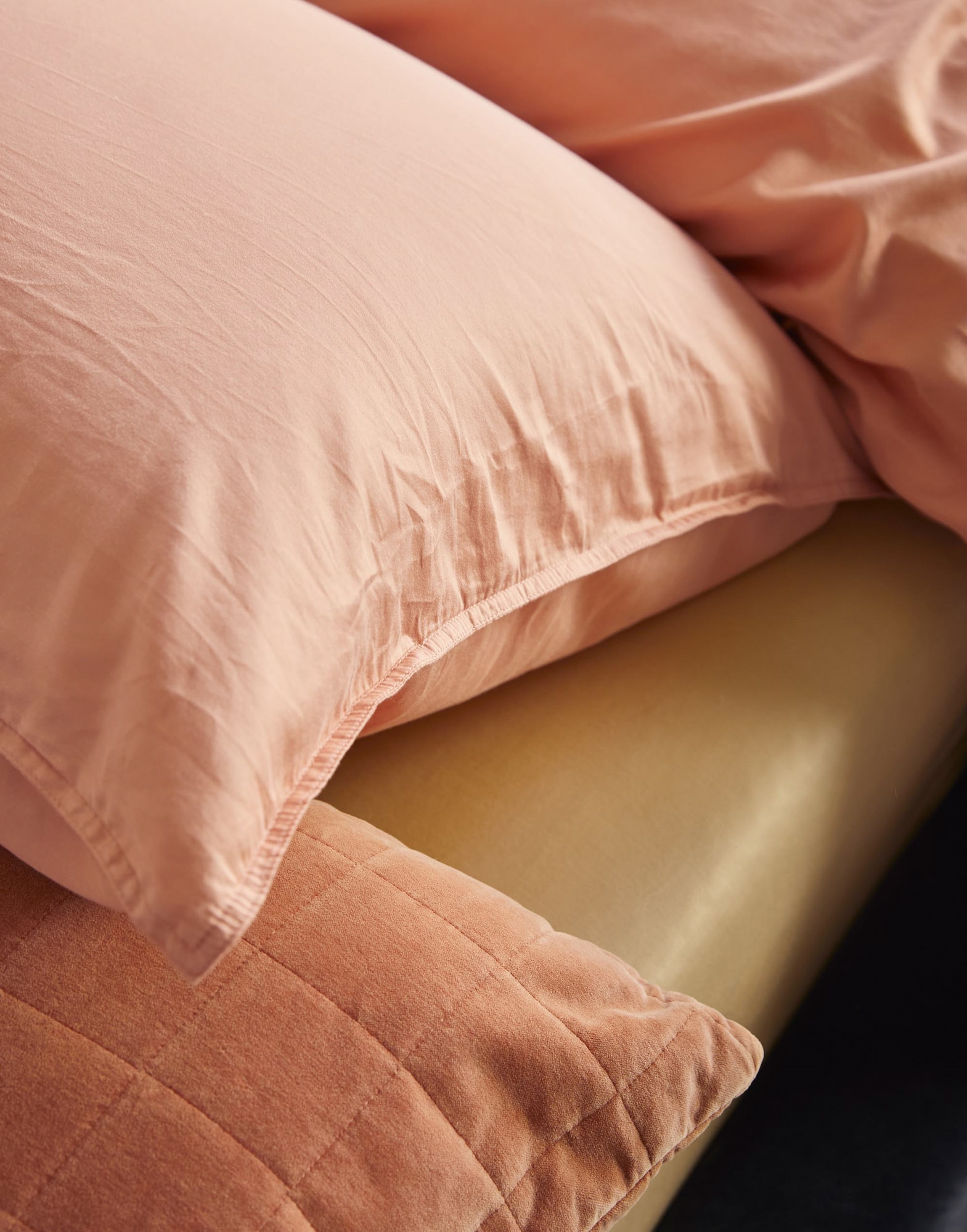 Home » Bedding » Single bedding » Single bedding 140x200 cm Essenza bedding - 100% cotton satin bed set - 140x200 cm - Minte Bright Terra bed linen Save25% Essenza 81,9961,49EURSave 21,- In stock Quantity Add to basket See more from: Essenza Item number: 8591-1 Do you have questions about the product? OEKO-TEX® certification100% soft cotton satinSoft and luxurious quality Duvet cover: 140x200 cm Pillowcase: 1 piece 60x63 cm Material: 100% soft cotton satin Weaving: Extra fine 300TC (Thread count = number of threads per square inch) Colour: Peach Design: Minte Bright Terra Brand: Essenza Closure: Duvet closes with buttons and pillowcase with overlap Washing: 40° Tumble drying: Yes Ironing: Yes Certification: STANDARD 100 by OEKO-TEX® (0906030 Centexbel) Lovely bedding from the popular Essenza Home brand, ensuring you receive great quality. The bedding is crafted from the finest dense cotton threads, resulting in an exquisite and durable set. The bedding set is crafted from 100% luxury cotton satin, providing a delightful softness combined with excellent durability. Purchase lightweight pillowcases for your extra pillows here ESSENZA HOME has been designing and producing stylish home textiles for nearly 60 years. The company was founded in 1961 by Mr. Van Es. ESSENZA is renowned for their cheerful and fresh designs across a broad selection. Refresh your bed and bedroom with beautiful and exquisite bedding like this. Simultaneously, seize the opportunity to ensure maximum sleeping comfort by adding a new, soft, high-quality sheet. Discover our extensive range of quality sheets here Return to Single bedding 140x200 cm Customers also bought Topper fitted sheet with U-split - 180x200 cm - Split length 70 cm - White - 100% cotton satin - Borås Cotton Few in stock 95,4974,99EUR Add to basket Essenza bedding - 140x220 cm - 100% cotton satin bed set - Minte Bright Terra bed linen Few in stock 88,4968,49EUR Add to basket