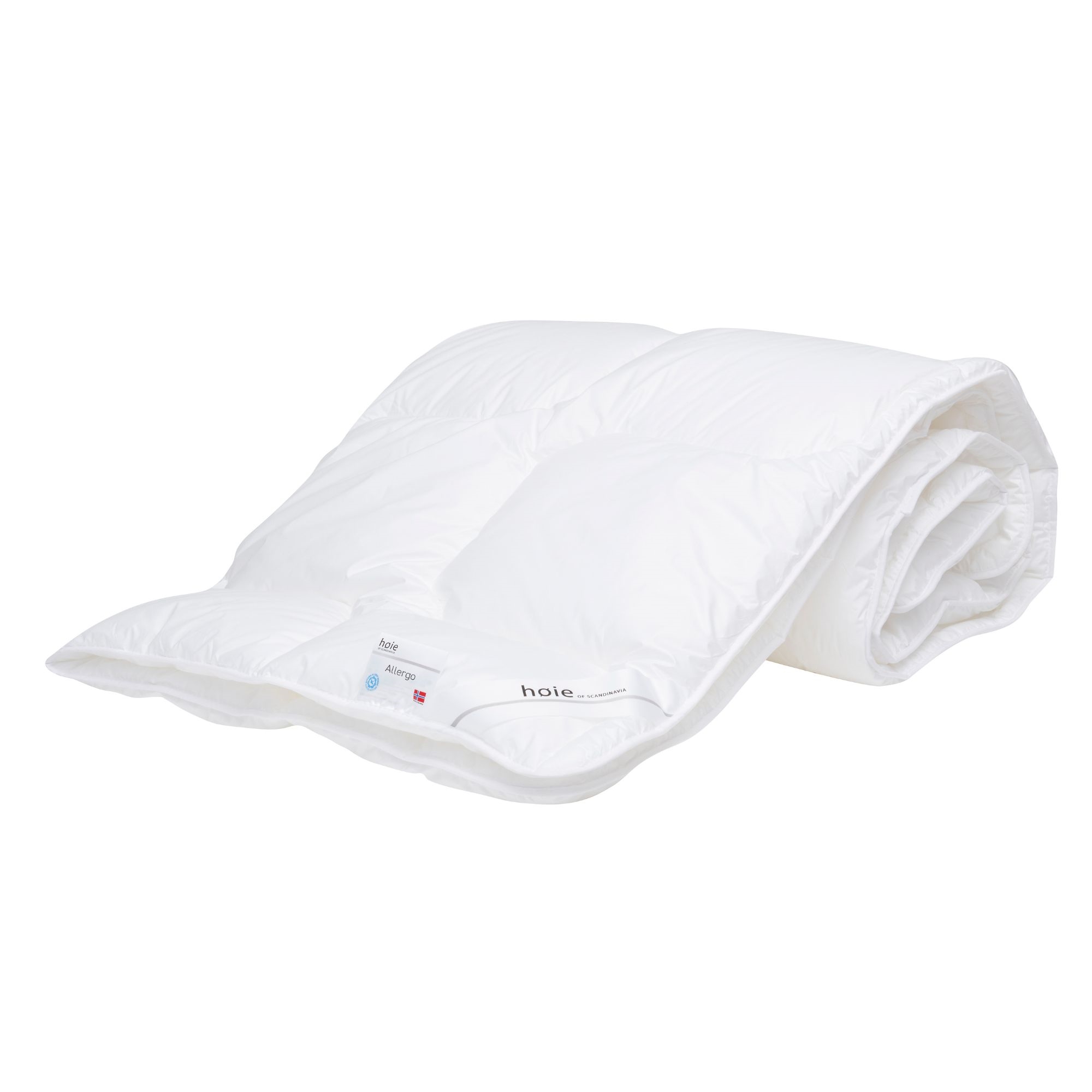 Home » Duvets » Single duvets » Extra long duvet 140x220 cm Fiber Duvet 140x220 cm - Allergy-friendly all-season duvet with hollow fibers - Medium warm - Høie Of Scandinavia Allergo Save31% Høie Of Scandinavia 217,99149,99EURSave 68,- Few in stock Quantity Add to basket See more from: Høie Of Scandinavia Item number: 16122 Read our duvet guide Read about maintenance of duvets and pillows See our large selection of pillows Do you have questions about the product? Hypoallergenic and antibacterialRecommended by Asthma Allergy NordicProduced in Norway Size: 140x220 cm - Single duvet with extra length Type: Medium warm all-season duvet Filling: 100% Allerban® antibacterial polyester hollow fibers Filling weight: 990g Cover: 100% soft cotton Construction: The duvet is sewn in channels for optimal distribution of the filling Brand: Høie Of Scandinavia - Allergo Produced in: Norway Washing: 60° Tumble drying: Yes, low temperature Certification: STANDARD 100 by OEKO-TEX® (Ö 04-133). Your guarantee that the product is free from harmful chemicals. Certification: Asthma Allergy Nordic A soft fiber duvet with good insulation and lovely lightness. The duvet is a warm all-season duvet suitable for most months of the year. The duvet is made of 100% fiber, making it allergy-friendly and very easy to maintain. The success is finally back! Allergo® duvets are recommended by Asthma Allergy Nordic. The fibers are carefully selected for their purity and antibacterial properties, which prevent the growth of dust mites, bacteria, and mold. The effect is built into the fibers and does not disappear with washing. The duvet has square stitching, which makes it fit extra well around the body. The Allergo® medium warm duvet is an all-season duvet, perfect for those who maintain a steady temperature in the bedroom. Allergo® is an allergy-friendly series available in several warmth levels and pillow heights, so you can easily find the duvet and pillow that suit you perfectly. The duvet is delivered in a practical storage bag, so you can easily find it if used, for example, as a guest duvet. We recommend airing the duvet before packing it away to ensure it is completely dry. The duvet can be washed at 60 degrees, but for longer life, less environmental impact, and lower energy consumption, we recommend washing at 40 degrees. To wash duvets, you need a washing machine with a capacity of at least 7 kg. Use only 2/3 of the normal dosage of an enzyme-free detergent. The duvet can be tumble dried or air dried. Warm double duvets (200x220 cm) should be washed and possibly dried in machines with extra-large drum capacity. See the selection of single bedding in 140x220 here Høie is a Scandinavian brand that stands for tradition combined with innovation. The company has existed since 1850 and has over the years helped shape and develop Scandinavian textiles and designs. Høie is one of the most recognized brands within bedding, duvets, pillows, and throws. All products have high demands for features and design – and most importantly, they are all produced with the good and high quality that Høie represents! Return to Extra long duvet 140x220 cm