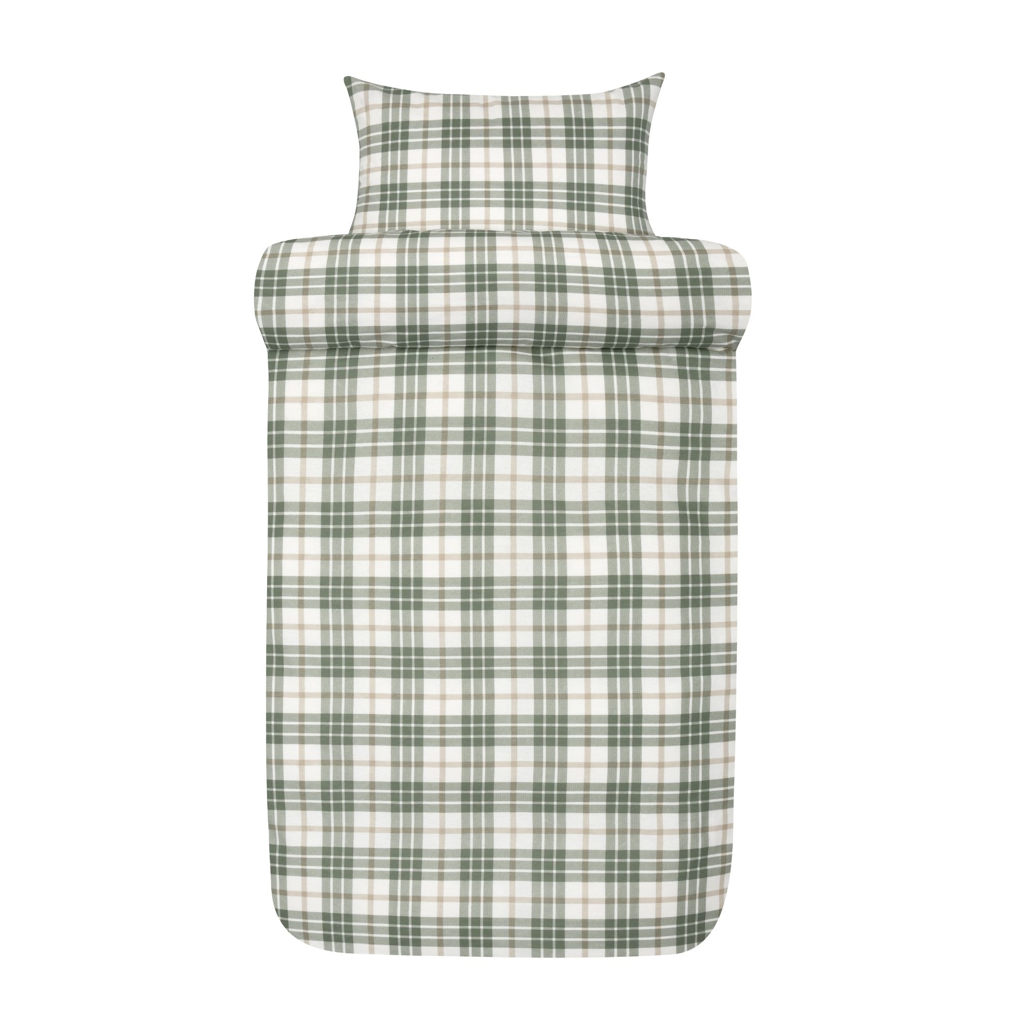 Home » Bedding » Single bedding » Single bedding 140x200 cm Flannel bedding 140x200 cm - Green checked bedding set - 100% cotton flannel - Lukas Høie of Scandinavia bed linen 100% Cotton Flannel Save30% Høie Of Scandinavia 68,4947,99EURSave 21,- In stock Quantity Add to basket See more from: Høie Of Scandinavia Item number: 8382-1 Read our bedding guide See our large selection of fitted sheets See our large selection of all-season duvets 140x200 Do you have questions about the product? Breathable and comfortableExtra soft and warmDurable cotton Duvet cover: 140x200 cm Pillowcase: 60x63 cm Material: 100% cotton flannel Weave: 220TC (Thread count = number of threads per square inch) Color: Green checked Design: Lukas Brand: Høie of Scandinavia Closure: Duvet cover with zipper, pillowcase with buttons Wash: 60° Tumble dry: Yes Ironing safe: Yes Certification: EASY CARE treated, which means it does not wrinkle after washing Certification: GREEN by STANDARD 100 by OEKO-TEX® (M2AMSTPZ2). Your guarantee that the product is free from harmful chemicals. Soft and lovely bedding made from 100% cotton flannel. The unique feel of flannel comes from brushing the surface of the fine cotton. This makes the flannel feel warm and soft. The bedding is made of extra fine cotton, known for its softness and great durability. Flannel bedding from Høie is made from 100% cotton flannel, known for its soft, lightly brushed and fluffy surface. The cotton fibers are brushed on the surface, creating an extra soft and fluffy texture. This surface gives the flannel bedding its characteristic and well-known softness and warmth, contributing to a cozy and comfortable sleeping experience. Especially on cool nights, the bedding is a favorite, as 100% cotton flannel is breathable while also good at retaining heat. The bedding is OEKO-TEX certified. This is your guarantee that the bedding has been tested and is free from harmful substances; additionally, the bedding is allergy-friendly. Høie bed linen is also Easy Care treated for less wrinkling and better shape after washing. Easy Care makes your bedding extra comfortable and easy to iron. Freshen up your bedroom with this beautiful and luxurious bedding set. At the same time, take the opportunity to increase your sleep comfort by adding a new, soft quality fitted sheet. You can find our large selection of quality fitted sheets here Høie is a Scandinavian brand that stands for tradition combined with innovation. The company has existed since 1850 and has over the years helped shape and develop Scandinavian textiles and designs. Bedding from Høie is everyday luxury that everyone deserves. Return to Single bedding 140x200 cm