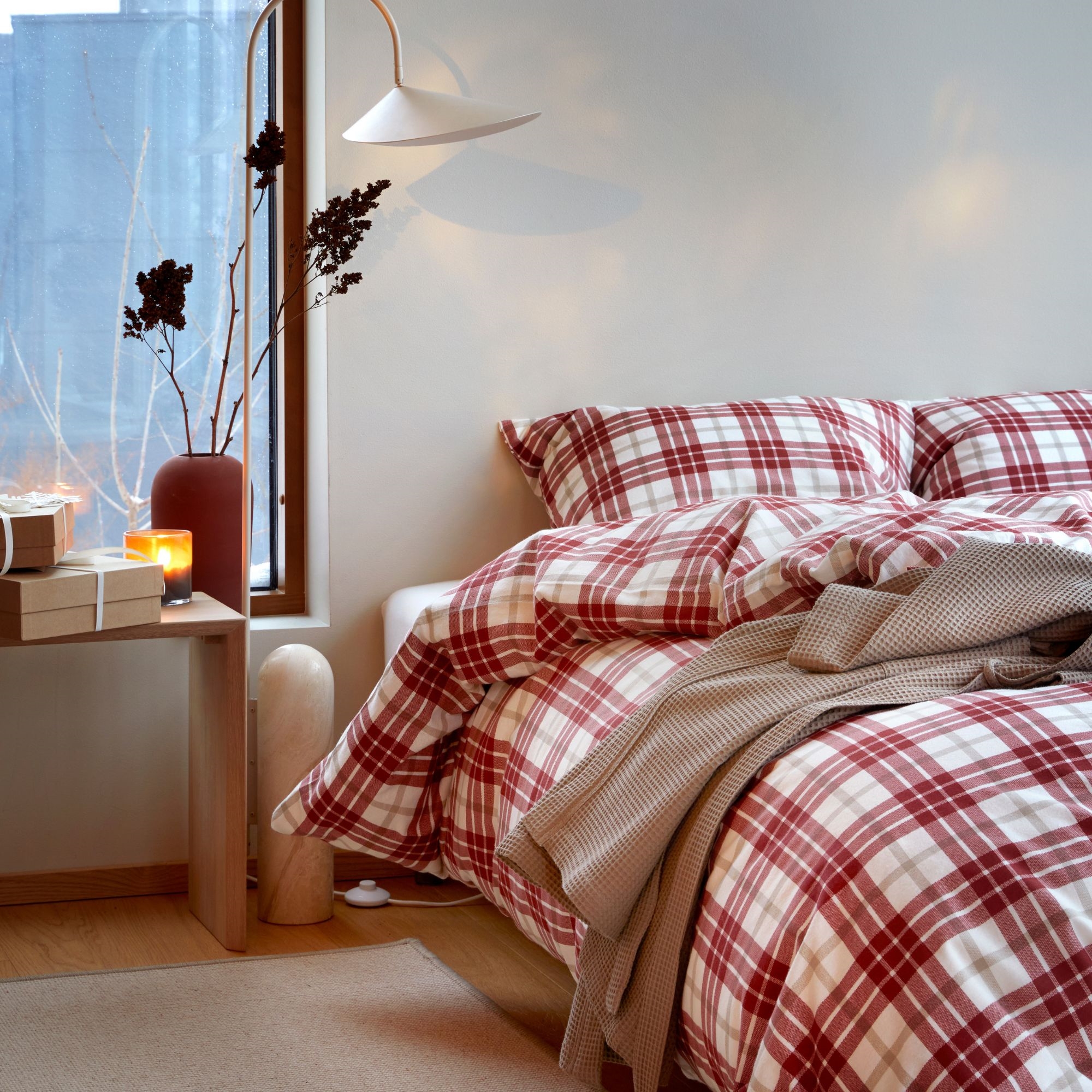 Home » Bedding » Single bedding » Single bedding 140x200 cm Flannel bedding 140x200 cm - Red checkered bedding set - 100% cotton flannel - Lukas Høie of Scandinavia bed linen 100% Cotton Flannel Save30% Høie Of Scandinavia 68,4947,99EURSave 21,- In stock Quantity Add to basket See more from: Høie Of Scandinavia Item number: 8402-1 Read our bedding guide See our large selection of fitted sheets See our large selection of all-season duvets 140x200 Do you have questions about the product? Breathable and comfortableExtra soft and warmDurable cotton Duvet cover: 140x200 cm Pillowcase: 60x63 cm Material: 100% cotton flannel Weave: 220TC (Thread count = number of threads per square inch) Color: Red with checks Design: Lukas Brand: Høie of Scandinavia Closure: Duvet cover with zipper, pillowcase with overlap Wash: 60° Tumble dry: Yes Ironing safe: Yes Certification: EASY CARE treated, which means it does not wrinkle after washing Certification: GREEN by STANDARD 100 by OEKO-TEX® (M2AMSTPZ2). Your guarantee that the product is free from harmful chemicals. Soft and lovely bedding set made from 100% cotton flannel. The unique feel of flannel comes from brushing the surface of the fine cotton. This makes the flannel feel warm and soft. The bedding is made from extra fine cotton, known for its softness and high durability. Flannel bedding from Høie is made from 100% cotton flannel, known for its soft, lightly brushed, and fluffy surface. The cotton fibers are brushed on the surface, creating an extra soft and fluffy texture. This surface gives the flannel bedding its characteristic and well-known softness and warmth, contributing to a cozy and comfortable sleeping experience. Especially on cool nights, the bedding is a favorite, as 100% cotton flannel is breathable while also good at retaining heat. The bedding is OEKO-TEX certified. This guarantees that the bedding has been tested and is free from harmful substances; it is also allergy-friendly. Høie bed linen is also Easy Care treated for less wrinkling and better shape after washing. Easy Care makes your bedding extra comfortable and easy to iron. Refresh your bedroom with this beautiful and luxurious bedding set. At the same time, take the opportunity to increase your sleep comfort by adding a new, soft quality fitted sheet. You can find our large selection of quality fitted sheets here Høie is a Scandinavian brand that stands for tradition combined with innovation. The company has existed since 1850 and has over the years helped shape and develop Scandinavian textiles and designs. Bedding from Høie is everyday luxury that everyone deserves. Return to Single bedding 140x200 cm