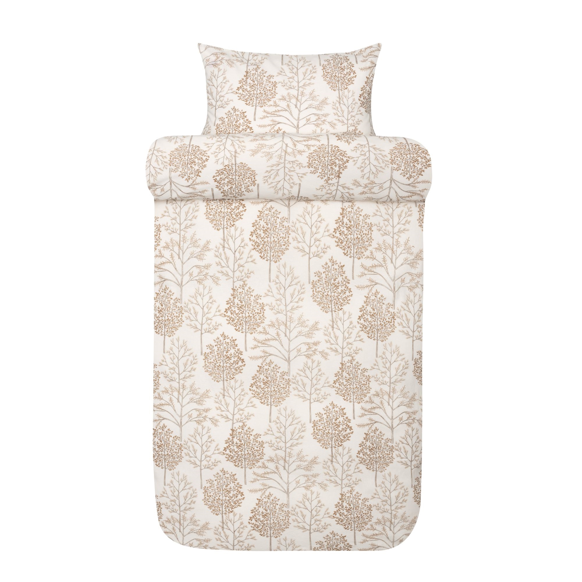 Home » Bedding » Single bedding » Single bedding 140x200 cm Flannel bedding 140x200 cm - White bed set with brown trees - 100% cotton flannel - Thea Høie of Scandinavia bed linen 100% Cotton Flannel Save30% Høie Of Scandinavia 68,4947,99EURSave 21,- In stock Quantity Add to basket See more from: Høie Of Scandinavia Item number: 8416-1 Read our bedding guide See our large selection of fitted sheets See our large selection of all-season duvets 140x200 Do you have questions about the product? Breathable and comfortableExtra soft and warmDurable cotton Duvet cover: 140x200 cm Pillowcase: 60x63 cm Material: 100% cotton flannel Weaving: 220TC (Thread count = number of threads per square inch) Color: White with brown trees Design: Thea Brand: Høie of Scandinavia Closure: Duvet cover with zipper, pillowcase with overlap Wash: 60° Tumble dry: Yes Ironing safe: Yes Certification: EASY CARE treated, which means it does not wrinkle after washing Certification: GREEN by STANDARD 100 by OEKO-TEX® (M2AMSZLH1). Your guarantee that the product is free from harmful chemicals. Soft and lovely bed set made from 100% cotton flannel. The unique feel of flannel comes from brushing the surface of the fine cotton. This makes the flannel feel warm and soft. The bedding is made of extra fine cotton, known for its softness and high durability. Flannel bedding from Høie is made of 100% cotton flannel, known for its soft, lightly brushed, and fluffy surface. The cotton fibers are brushed on the surface, creating an extra soft and fluffy texture. This surface gives the flannel bedding its characteristic and well-known softness and warmth, contributing to a cozy and comfortable sleeping experience. Especially on cool nights, the bedding is a favorite, as 100% cotton flannel is breathable while also good at retaining heat. The bedding is OEKO-TEX certified. This is your guarantee that the bedding has been tested and is free from harmful substances; moreover, the bedding is allergy-friendly. Høie bed linen is also Easy Care treated, for less wrinkling and better shape after washing. Easy Care makes your bedding extra comfortable and easy to iron. Freshen up your bedroom with this beautiful and luxurious bed set. At the same time, take the opportunity to increase your sleep comfort by adding a new, soft quality fitted sheet. You can find our large selection of quality fitted sheets here Høie is a Scandinavian brand that stands for tradition combined with innovation. The company has existed since 1850 and has over the years helped shape and develop Scandinavian textiles and designs. Bedding from Høie is everyday luxury that everyone deserves. Return to Single bedding 140x200 cm