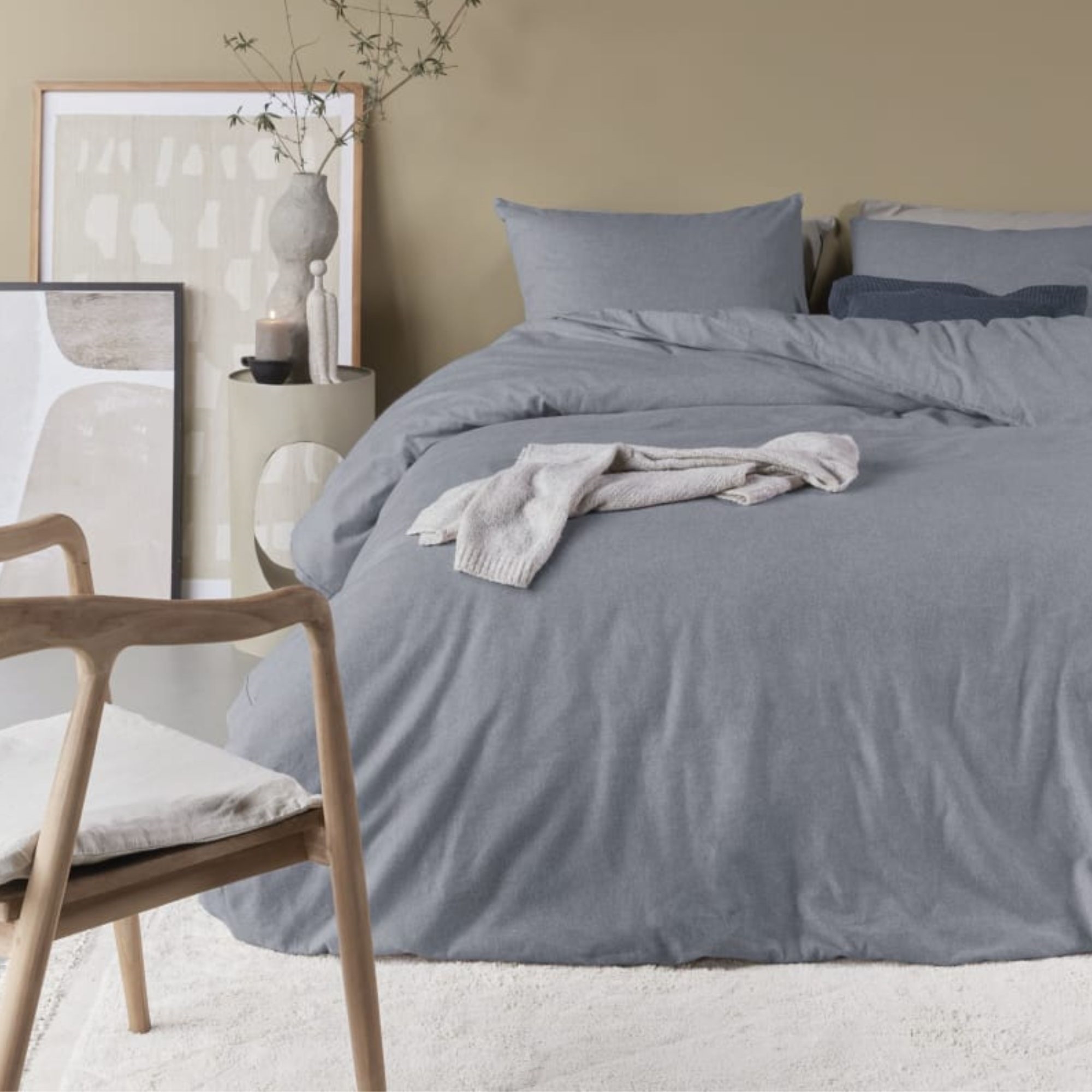 Home » Bedding » Single bedding » Extra long bedding 140x220 cm Flannel bedding 140x220 cm - Blue-gray solid color bedding set - 100% cotton flannel - Frost Beddinghouse bed linen Save25% Beddinghouse 81,9961,49EURSave 21,- In stock Quantity Add to basket See more from: Beddinghouse Item number: 338646-2 Read our bedding guide See our large selection of sheets See our large selection of duvets 140x220 Do you have questions about the product? Breathable and comfortableExtra soft and warmDurable cotton Duvet cover: 140x220 cm Pillowcase: 1 piece 60x63 cm Material: 100% cotton flannel Weave: 220TC (Thread count = number of threads per square inch) Color: Blue-gray Design: Frost Brand: Beddinghouse Closure: Duvet cover with buttons, pillowcase with overlap Wash: 40° Tumble dry: Yes Ironing safe: Yes Certification: STANDARD 100 by OEKO-TEX® (11-38819). Your guarantee that the product is free from harmful chemicals. Soft and lovely bedding set made from 100% cotton flannel. The unique feel of flannel comes from brushing the surface of the fine cotton. This makes the flannel feel warm and soft. The bedding is made from extra fine cotton, known for its softness and high durability. Flannel bedding from Bedding House is made from 100% cotton flannel, known for its soft, lightly brushed, and fluffy surface. The cotton fibers are brushed on the surface, creating an extra soft and fluffy texture. This surface gives the flannel bedding its characteristic and well-known softness and warmth, contributing to a cozy and comfortable sleeping experience. Especially on cool nights, this bedding is a favorite, as 100% cotton flannel is breathable while also good at retaining heat. The bedding is OEKO-TEX certified. This is your guarantee that the bedding has been tested and is free from harmful substances, and it is also allergy-friendly. Freshen up your bed and bedroom with a beautiful and lovely bedding set like this one. At the same time, take the opportunity to ensure maximum sleeping comfort by adding a new soft sheet of high quality. You can find our large selection of quality sheets here Return to Extra long bedding 140x220 cm