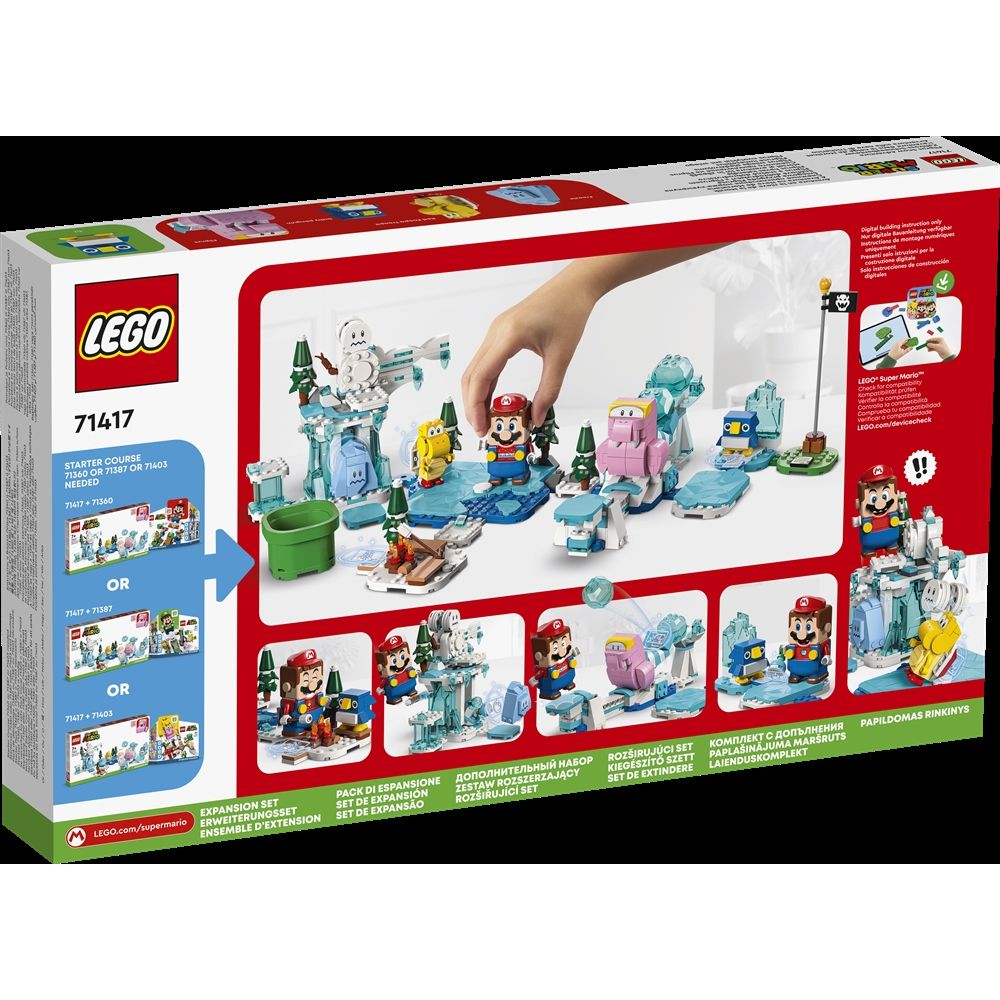 Home » All LEGO products Fliprus Snow Adventure - Expansion Set - 71417 - LEGO Super Mario LEGO Super MArio Great price:74,99EUR Few in stock Quantity Add to basket See more from: LEGO Super MArio Item number: LEG71417 Do you have questions about the product? Cool expansion set for fun with coin collecting and role playChildren can create an ice-filled adventure in their LEGO Super Mario world with the Fliprus Snow Adventure expansion set, which includes 4 Super Mario figures. Return to All LEGO products