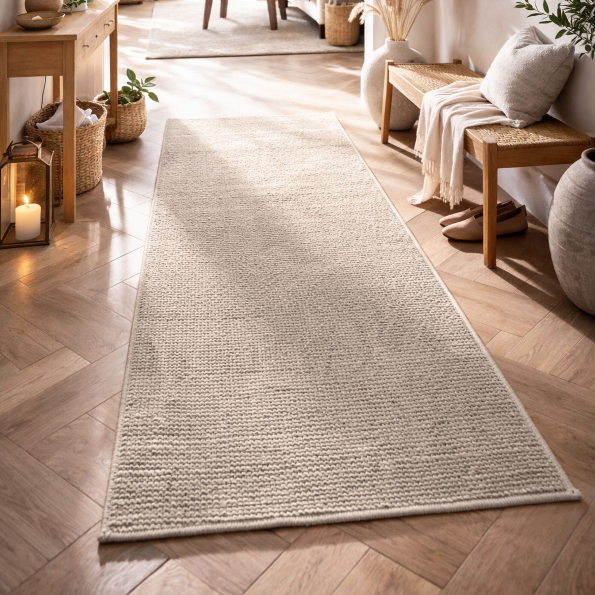 Home » Interior Design » Decorations » Rugs Floor rug - 60x180 cm - Woven rug runner - Cream - Kenzy - Nordstrand Home Save20% Nordstrand Home 67,9954,49EURSave 14,- In stock Quantity Add to basket See more from: Nordstrand Home Item number: TA3004-11 See our large selection of artificial plants and flowers See our selection of doormats See our large selection of everything for your home decor Do you have questions about the product? Beautiful and minimalist cream-coloured floor rugTight weaving and natural finishPractical for everyday use Type: Short pile floor rug Size: 60x180 cm Thickness: 5 mm Colour: Cream, solid colour Design: Kenzy Material: 100% polypropylene Backing: 100% polypropylene Use: Indoor Brand: Nordstrand Home Recommended maintenance: Vacuuming & damp cloth Certification: STANDARD 100 by OEKO-TEX® (11.HTR.94219). Your guarantee that the product is free from harmful chemicals. Are you missing a simple and easy way to create cohesion in your home? This beautiful floor rug could be the element that ties your interior together. The Kenzy series is a modern and durable floor rug in, among other colours, cream, combining simplicity with modern design. The rug's polypropylene fibres make it particularly resistant to wear and easy to maintain - perfect for a busy everyday life. The material retains its shape well over time and only requires regular vacuuming to keep its attractive appearance. The tight weaving contributes to a robust surface where dirt does not easily penetrate the structure. The Kenzy floor rug is an obvious choice if you want a durable, affordable and stylish solution that creates warmth and cohesion in your interior. See our large selection of different home textiles right here With Nordstrand Home you are guaranteed home textiles in Danish design - in a Nordic style. Nordstrand Home places great emphasis on the feeling of wellbeing in a beautiful, yet relaxed environment. With Nordstrand Home you don't have to compromise; you will always find products in classic and fashionable colours. Nordstrand Home – So you feel at home! Return to Rugs