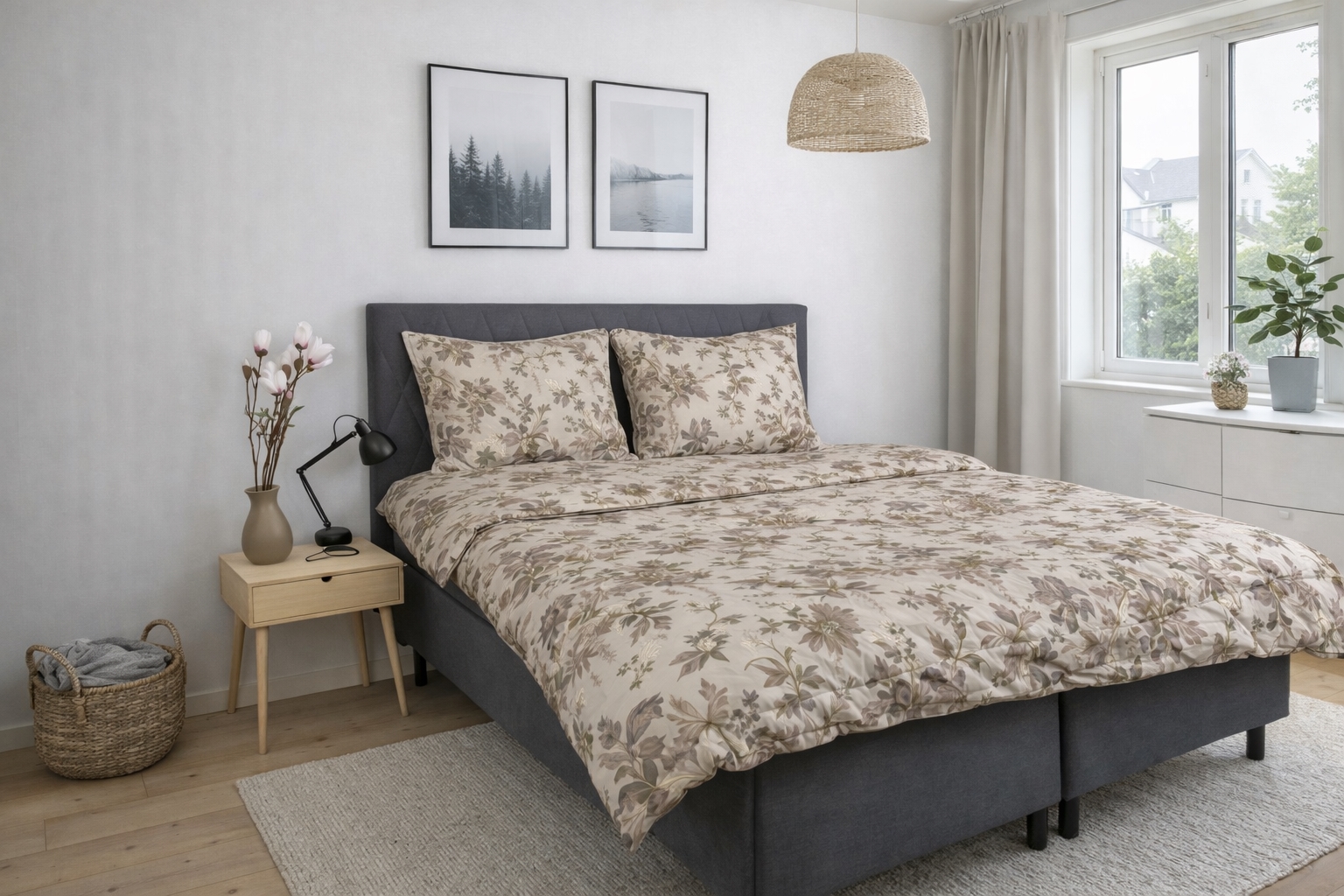 Home » Bedding » Single bedding » Single bedding 140x200 cm Floral bed linen - 100% Soft cotton satin - 140x200 cm - Wildflower - By Night bed set Save62% By Night 81,9931,49EURSave 51,- In stock Select size Select a variant Quantity Add to basket See more from: By Night Item number: BN510-1 Read our bedding guide See our extensive selection of sheets Discover our comprehensive range of 140x200 duvets Do you have questions about the product? Extra fine satin weaveConcealed zip closureSoft and lustrous Duvet cover: 140x200 cm Pillowcase: 1 piece 60x63 cm Material: 100% soft cotton satin Weaving: Extra fine 230TC (Thread count = number of threads per square inch) Colour: Brown Design: Wildflower Brand: By Night Closure: Duvet and pillowcases with hidden YKK zip Washing: 60° Tumble drying: Yes Ironing: Yes Certification: STANDARD 100 by OEKO-TEX® (11-47893) The bed set in 100% tightly woven cotton satin. This bed set from By Night is renowned for its beautiful and smooth surface, which feels delightful and soft against the skin. The beauty of cotton satin is its breathability, keeping you comfortably cool in summer and warm in winter, making the bedding practical for all seasons. Moreover, the bed linen is 100% dyed through, meaning the colour is embedded in the cotton fibres during production. This results in incredibly high colour and wash fastness. The bed set is OEKO-TEX® certified. The certification ensures that the product is free from harmful substances and produced under proper conditions, so you can sleep safely at night while we also care for the environment. The bedding set is a popular choice for those desiring luxurious bed linen with a stylish appearance. Duvet and pillowcases feature a hidden YKK zip for closure. Purchase matching pillowcases for your extra pillows easily here. Refresh your bed and bedroom with a lovely bed set like this. Simultaneously, take advantage of the opportunity to ensure maximum sleeping comfort by adding a new, soft, high-quality sheet. Discover our extensive range of quality sheets here By Night is distinguished by Danish design, providing you with comfortable components for your nighttime environment of the utmost quality. By Night offers bedding and sheets for the entire family, emphasizing contemporary trends to ensure the range always includes fashionable colours and designs. Return to Single bedding 140x200 cm Customers also bought Bedding 140x200 cm - cotton satin - Blossom grey - floral print In stock 81,9931,49EUR Add to basket Bedding 140x200 cm - cotton satin - Blossom blue - Floral print In stock 81,9931,49EUR Add to basket Floral bed linen 140x220 cm - 100% Soft cotton satin - Wildflower - By Night bed set In stock 88,4938,49EUR Add to basket Bed linen 140x200 cm - cotton satin - Summer Bloom - Light blue floral print In stock 81,9931,49EUR Add to basket The Dream Duvet. All-season duvet 140x200 cm - Hypoallergenic duvet with soft fibre down - Fibre duvet from Zen Sleep In stock 95,4954,49EUR Add to basket 2 x Pillowcases Double floral bed linen 200x200 cm - 100% Soft cotton satin - Wildflower - By Night bed set In stock 149,9954,49EUR Add to basket Pillowcase 60x63 cm - 100% Soft cotton satin - Wildflower - By Night In stock 27,4910,99EUR Add to basket Stretch fitted sheet 140x200 cm - Black jersey stretch fitted sheet - IN Style fitted sheet In stock 31,4912,49EUR Add to basket The all-season pillow Luxury all-season duvet 140x200 cm - 100% fine musk duck down - Nordstrand Home musk duvet with cotton satin bolster In stock 544,49231,49EUR Add to basket Bedding 140x200 cm - Satin silky bed set - Solid grey bed linen - Soft as silk In stock 31,4913,99EUR Add to basket
