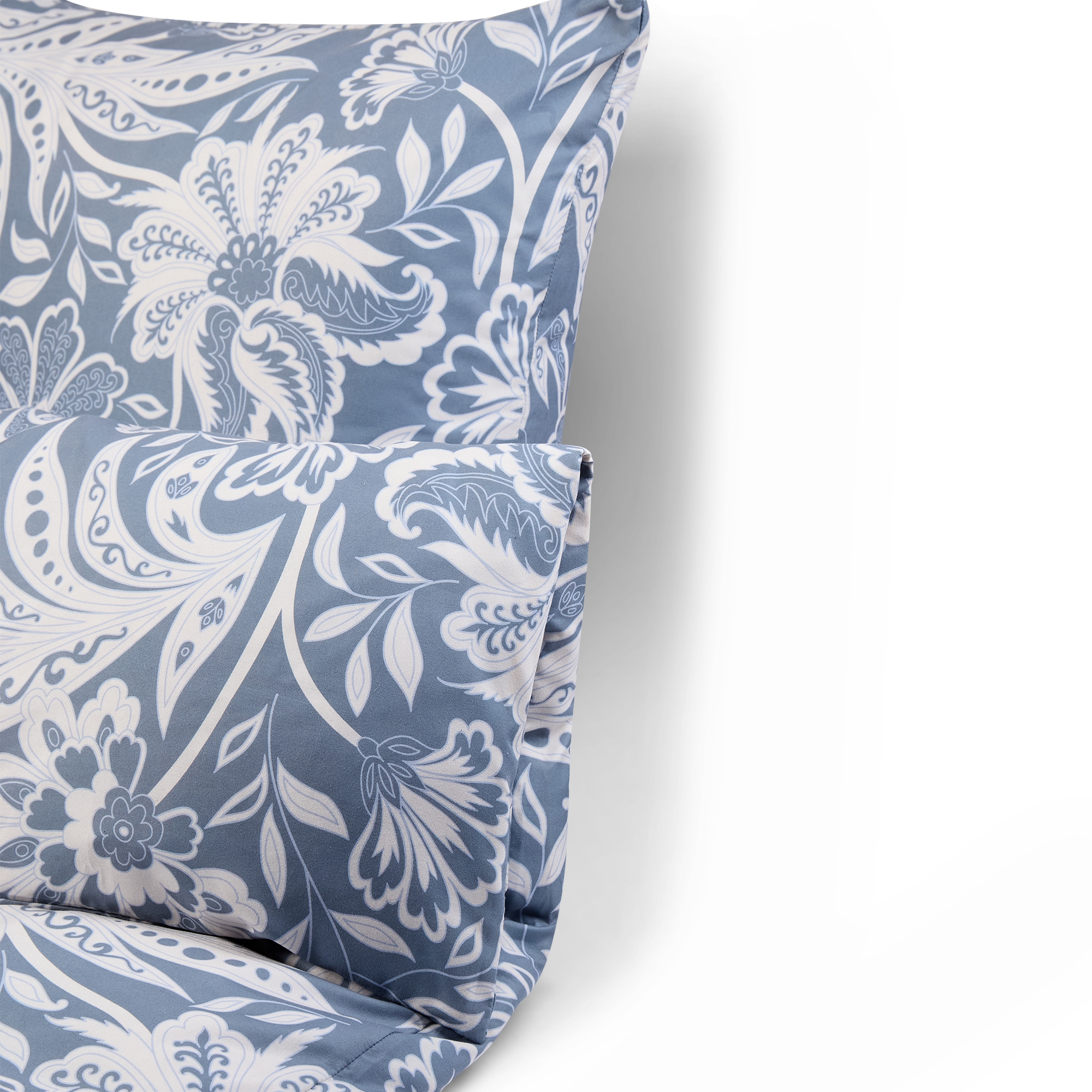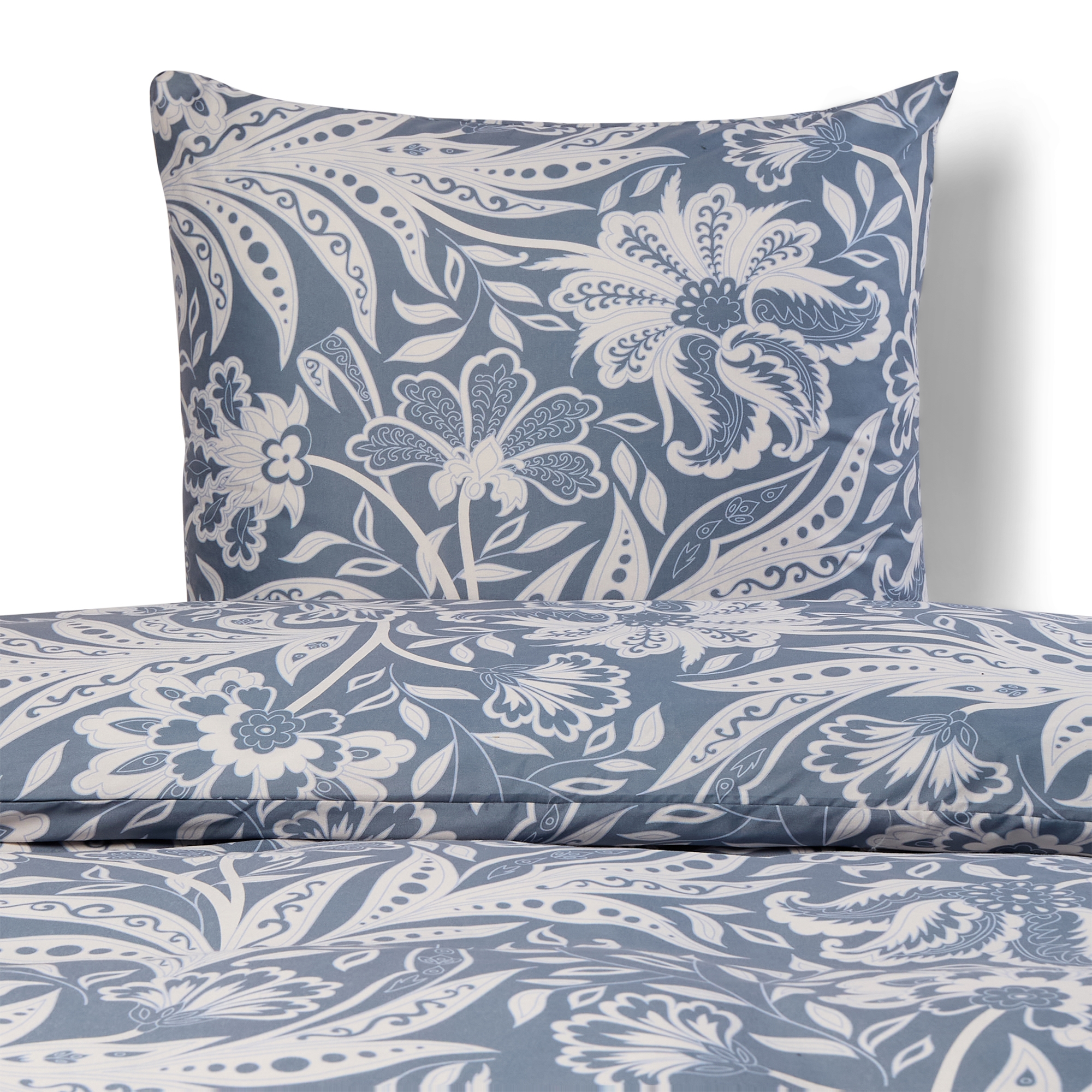 Home » Bedding » Single bedding » Extra long bedding 140x220 cm Floral bedding 140x220 cm - Blue microfiber bedding set - IN Style bed linen In Style 40,99EUR In stock Quantity Add to basket See more from: In Style Item number: 631-2 Read our bedding guide See our large selection of fitted sheets See our large selection of duvets 140x220 Do you have questions about the product? Durable qualitySmooth & fine threadsOEKO-TEX® certified Duvet cover: 140x220 cm Pillowcase: 1 pc. 60x63 cm Material: 100% microfiber Weave: 150TC (Thread count = number of threads per square inch) Color: Blue and white Design: Floral Brand: IN Style Closure: Duvet and pillowcase with internal zipper Wash: 30° Tumble dry: Yes, at low temperature Ironing: Not suitable Certification: STANDARD 100 by OEKO-TEX® (SH025 263781). Your guarantee that the product is free from harmful chemicals. Experience a glossy bedding set in soft and smooth microfiber material that combines classic elegance with a modern look. The bedding set offers a light and comfortable feel while being highly durable. Microfiber bed linen is often popular because it has a long lifespan and requires no special treatment, making it incredibly easy to maintain. Microfiber bedding is an ideal choice for those who want both comfort and functionality in the bedroom. With its smooth and shiny surface, the bedding feels not only soft and pleasant against the skin but is also durable, lightweight, and quick-drying. This means you get a bedding set that maintains its quality for a long time, even after repeated washing. Microfiber bedding is especially popular because it is extremely easy to care for. You do not need a tumble dryer or iron, as the material naturally dries quickly and stays neat without wrinkling. This makes microfiber bed linen a practical choice for busy everyday life and for those who want a beautiful and inviting bedroom with minimal effort. Both duvet and pillowcases have a practical zipper closure. This makes it easy and quick to change the bedding – always remember to close the zipper before washing. Find pillowcases for your extra pillows here Freshen up your bed and bedroom with a beautiful bedding set like this. Take the opportunity to increase your sleeping comfort by adding a new soft, high-quality fitted sheet. Find quality fitted sheets here IN Style offers a wide range of fantastic microfiber bedding sets, as well as light and airy fiber summer duvets. IN Style is produced by Borg Living, established in 2013 and known for their innovation in both quality and design, ensuring you the best conditions for a good night's sleep. Return to Extra long bedding 140x220 cm