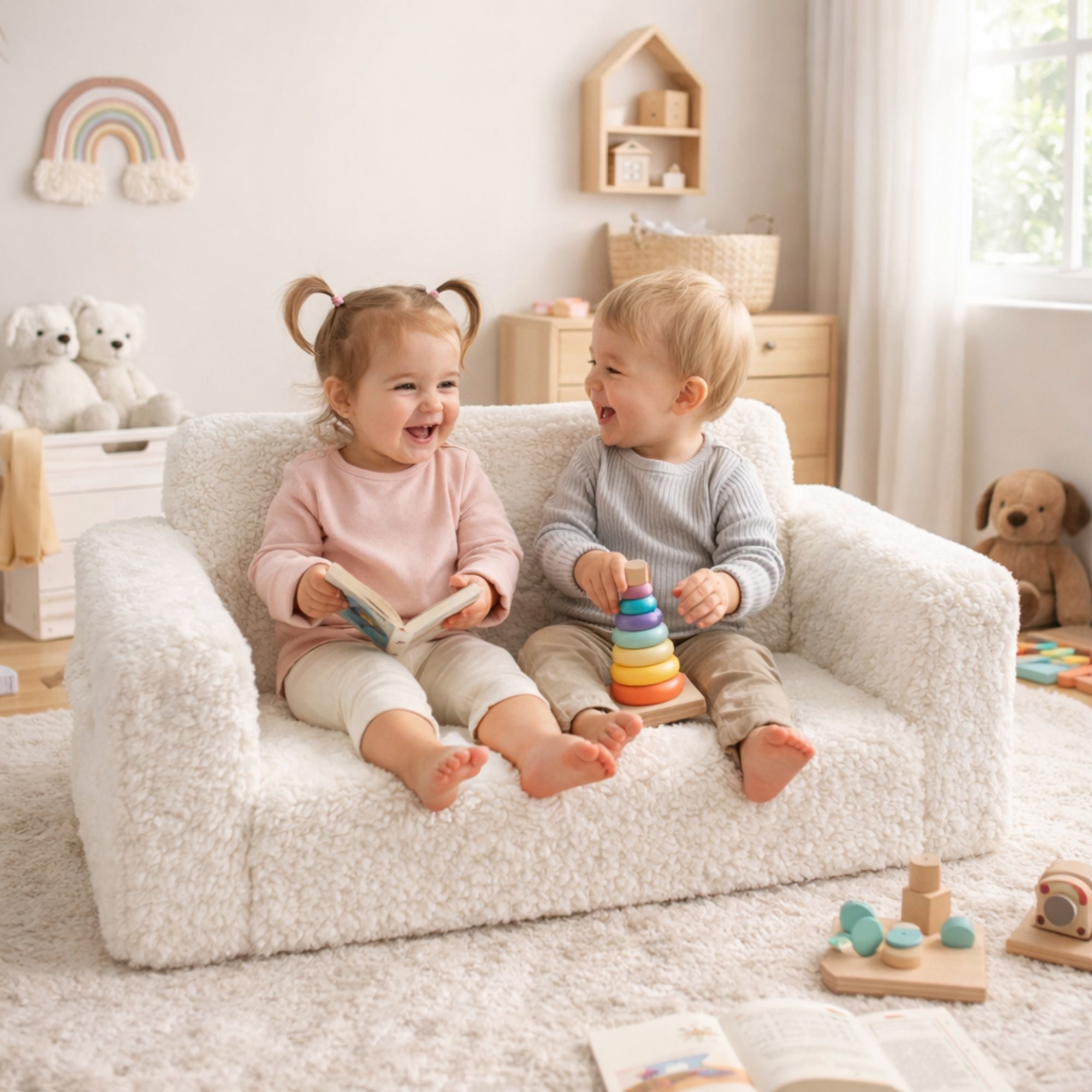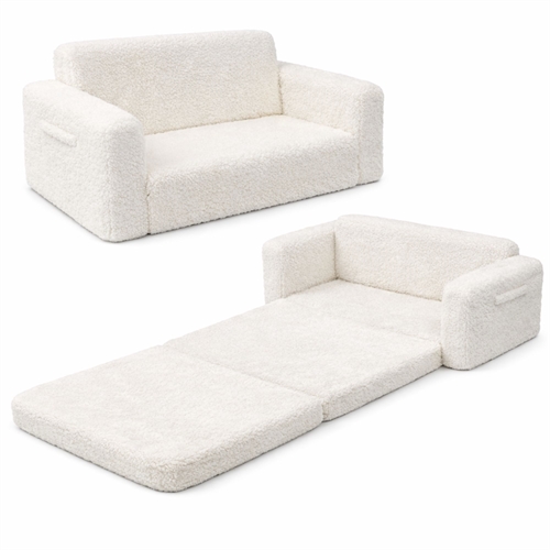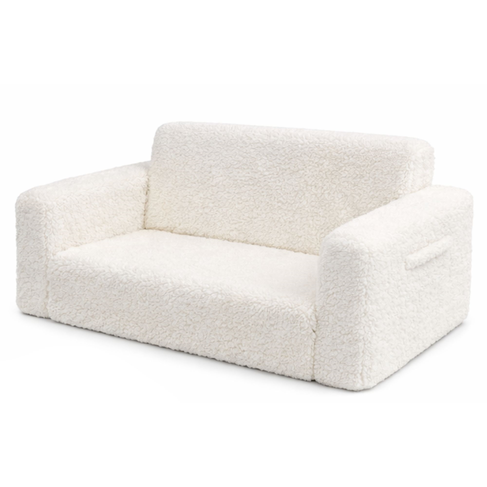 Create a cozy and functional corner in the children's room with this lovely fold-out plush sofa for kids from Nordstrand Home. The incredibly soft children's sofa is made with a white plush cover that fits perfectly into a Nordic-inspired children's room or living room. Here you get a practical 2-in-1 solution that works as a sofa for everyday use and as a fold-out mattress when it's time to relax, read a book or take a little nap.