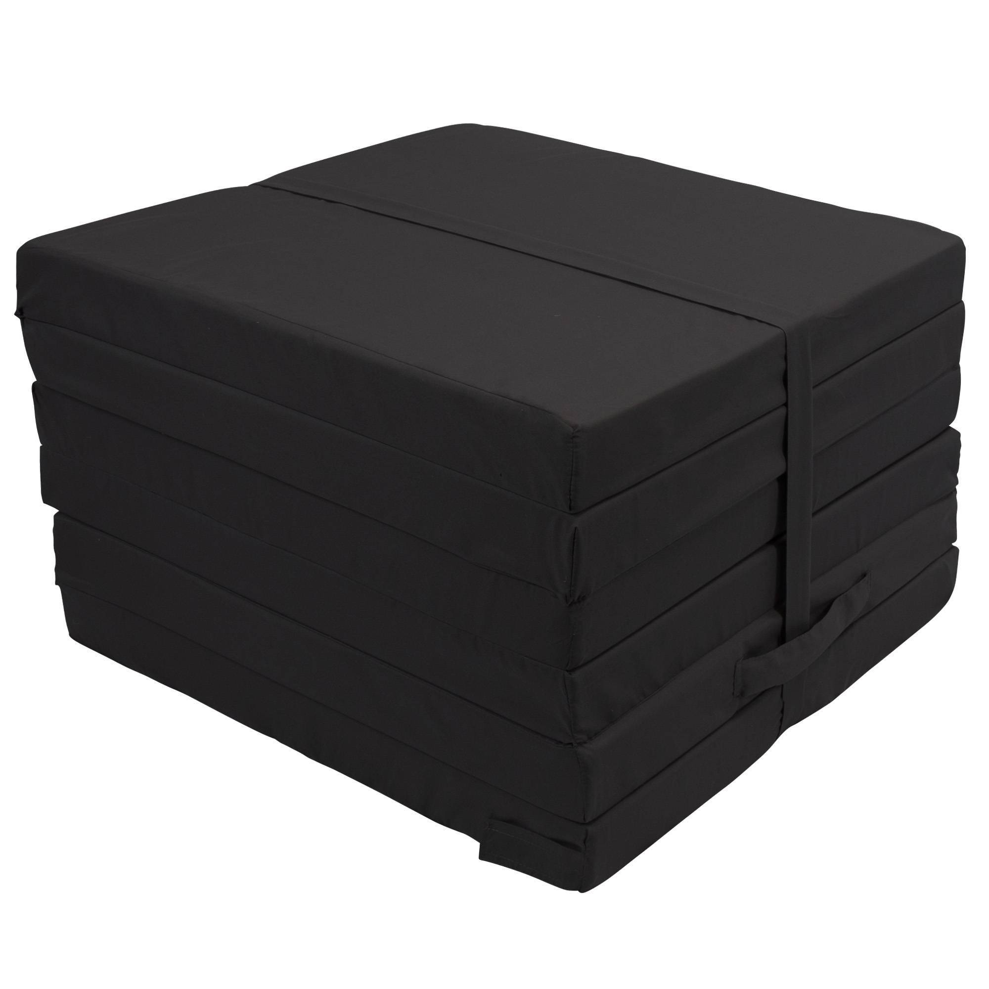 Home » Mattresses » Folding mattresses Folding Mattress - Double - Popular as Guest Mattress - 6 cm Comfort Foam - Nordstrand Home Black Foam Mattress Save33% Nordstrand Home 163,49108,99EURSave 55,- In stock Quantity Add to basket See more from: Nordstrand Home Item number: 155-2 See our selection of topper fitted sheets See our selection of children's rugs See our selection of decorative pillows Do you have questions about the product? High comfortSmart design - easy to pack awayOEKO-TEX® - free from chemicals Mattress: Double folding mattress Unfolded size: 126x190x6cm Folded size: 63x63cm, height 36cm Filling: Quality foam Core quality: Firm Cover: Black Upholstery: Polyester Brand: Nordstrand Home Maintenance: Damp cloth Certification: STANDARD 100 by OEKO-TEX® (BJO25 184510). Your guarantee that the product is free from harmful chemicals. Double folding mattress with foam and durable cover. Use the folding mattress as a guest mattress, an extra sleeping space, or as a play area for the kids. The foam mattress has a good balance of firm and soft, making it comfortable to sleep on. The mattress is designed with velcro straps and handles, so it stays folded and is easy to take on trips or if you need to stay over at someone else's place. A good balance of practical furniture and comfortable guest sleeping space. A double folding mattress made of 6 cm foam, measuring 126x190 cm, suitable for both adults, children, and young people. The foam mattress is divided into 6 equal parts, which easily fold into a small square of 63x63 cm, thus not taking up much space when packed away. The mattress is covered with a soft polyester cover, which is durable and easy to maintain. The durable cover can easily be wiped with a damp cloth. When the mattress is not in use as a sleeping space, it is often used as an extra seat at the coffee table, as a pouf in the children's room, or as a footrest by the armchair, giving the folding mattress multiple smart functions. Additionally, it easily becomes part of the decor, not needing to be packed away, but simply folded out and together as needed. With Nordstrand Home, you are assured of home textiles in Danish design - in Nordic style. Nordstrand Home places great emphasis on the feeling of well-being in a beautiful and relaxing environment. With Nordstrand Home products, you don't need to compromise, you will always find products among the large assortment, of high quality and classic design in a modern interplay. Nordstrand Home – So you feel at home! Return to Folding mattresses