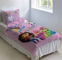 Home » Bedding » Children's bedding » Children's bedding 140x200 cm Gabby's Dollhouse bedding - 140x200 cm - Party Bus - Duvet cover in 100% cotton Save43% Licens 47,9927,49EURSave 21,- In stock Quantity Add to basket See more from: Licens Item number: 11915-1 Read our bedding guide See our large selection of fitted sheets See our large selection of duvets 140x200 Do you have questions about the product? Soft and lovely qualityOEKO-TEX certifiedPerfect for Gabby's Dollhouse fans Duvet cover: 140x200 cm Pillowcase: 60x63 cm Material: 100% soft cotton Color: Light pink Motif: Gabby's Dollhouse Design: Reversible - Gabby and friends, reverse side with all-over print Closure: Duvet with buttons, pillowcase with overlap Wash: 60° Tumble dry: Yes Ironing safe: Yes Certification: STANDARD 100 by OEKO-TEX® (2022OK2496 AITEX). Your guarantee that the product is free from harmful chemicals. Soft bedding in 100% cotton, with a festive design of Gabby and friends. Made with light and breathable cotton threads that give the bedding a softness that makes the duvet feel wonderful for your child to sleep with. A durable bedding set with high breathability and absorbency, which will help make bedtime a pleasant experience. This bedding set brings a festive atmosphere to the room with a lively design inspired by Gabby's Dollhouse. The bedding is reversible. On one side, you see Gabby and her friends dancing and partying in a party bus, creating an energetic and fun atmosphere on the front. Turning the bedding over reveals an all-over print of Gabby's friends. Perfect for fans of Gabby's Dollhouse who want to bring joy and life to their room. The bedding set is made of 100% soft cotton which makes the set durable and highly breathable. The pure cotton quality provides a lovely and soft bedding set that helps promote sleeping comfort for the child. Cotton bedding can be washed at 60° in the washing machine, which also helps maintain a high level of hygiene. The bedding is additionally OEKO-TEX certified, which guarantees that the set is free from harmful chemicals. Browse favorites and much more in our large selection of accessories for the children's universe For the child, the bed should be a safe place and all elements together should create soft and lovely surroundings for the child to find peace in. Therefore, feel free to use the child's interests to create a safe sleeping room for the child. With us, you can find a large selection of accessories for the bed and children's room, ranging from fitted sheets to duvets, pillows, bedding, and much more, with many products featuring all the children's favorites. All elements that can help create the right sleeping environment and room for your child. Here you can find lovely and soft quality fitted sheets Return to Children's bedding 140x200 cm Customers also bought 5 pieces Chef's tea towels - 50x100 cm white tea towels with blue chequered pattern In stock 20,499,99EUR Add to basket Junior sleeping bag - Paw Patrol Blue - 70x140 cm - water-resistant In stock 40,9927,49EUR Add to basket Pokémon Towel - 70x140 cm - 100% Cotton - Soft Children's Towel with Pikachu and Squirtle In stock 27,4913,99EUR Add to basket Cotton satin Football bedding - 140x200 cm - Football ready for corner kick - 100% cotton satin bedding Few in stock 54,4934,49EUR Add to basket Mattress topper - 180x200 cm, 5 cm high - NASA Memory Foam - Borg Living - Ergonomic mattress topper In stock 544,49190,49EUR Add to basket Junior bedding set 100x140 cm - Reversible bedding with Skye and Everest on the go - Paw Patrol bedding - 100% cotton bed linen In stock 47,9920,49EUR Add to basket Paw Patrol junior bedding 100x140 cm - Girl pups pink - Reversible design - 100% cotton In stock 34,4920,49EUR Add to basket Paw Patrol junior bedding 100x140 cm - Always brave - Reversible design - 100% cotton In stock 47,9927,49EUR Add to basket Extra depth fitted sheet 60x120 cm - Black - 100% Cotton percale - Fitted sheet for baby mattress In stock 20,4913,99EUR Add to basket Towelling poncho - Children's towel - Paw Patrol Smile - 50x100 cm - 100% Cotton In stock 40,9917,99EUR Add to basket