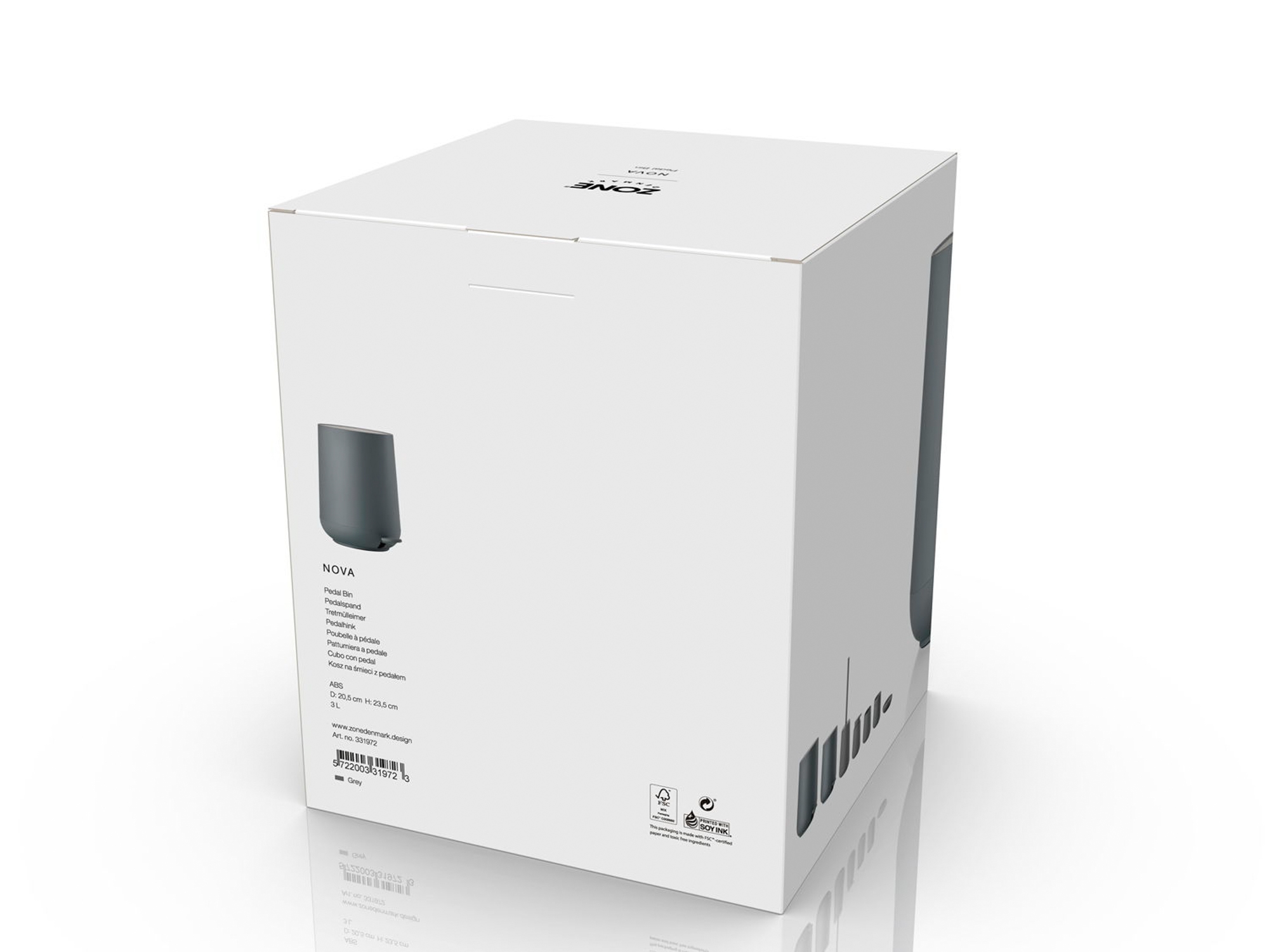 Home » Oversættelse færdig Grey Pedal Bin - 3L - Zone Denmark Zone Great price:72,49EUR In stock Quantity Add to basket See more from: Zone Item number: 331972 See our wide selection of bath mats for the floor See our selection of towel packs See our wide selection of bathrobes for the whole family Do you have questions about the product? Type: Pedal bin\r\nSize: 3L\r\nColor: Grey\r\nMaterial: ABS The pedal bin from the Nova bathroom series brings calm and harmony to the bathroom. The neat 3-litre bin with its sleek, matte look is perfect for small bathrooms and tight corners. ABS plastic. Dia. 20.5 cm, height 23.5 cm. 3 litres.\r\n\r\nNova's small pedal bin is available in a range of beautiful shades, ranging from the cool and classic to the crisp and bold. You can therefore match it to all other products in the Nova and Nova One series. The Nova and Nova One bathroom series also include a soap dispenser, toothbrush holder, soap dish, toilet brush and a 5 l pedal bin. The Danish designer Thomas Dudzinski is responsible for the design with its sculptural and elegant expression. Return to Oversættelse færdig