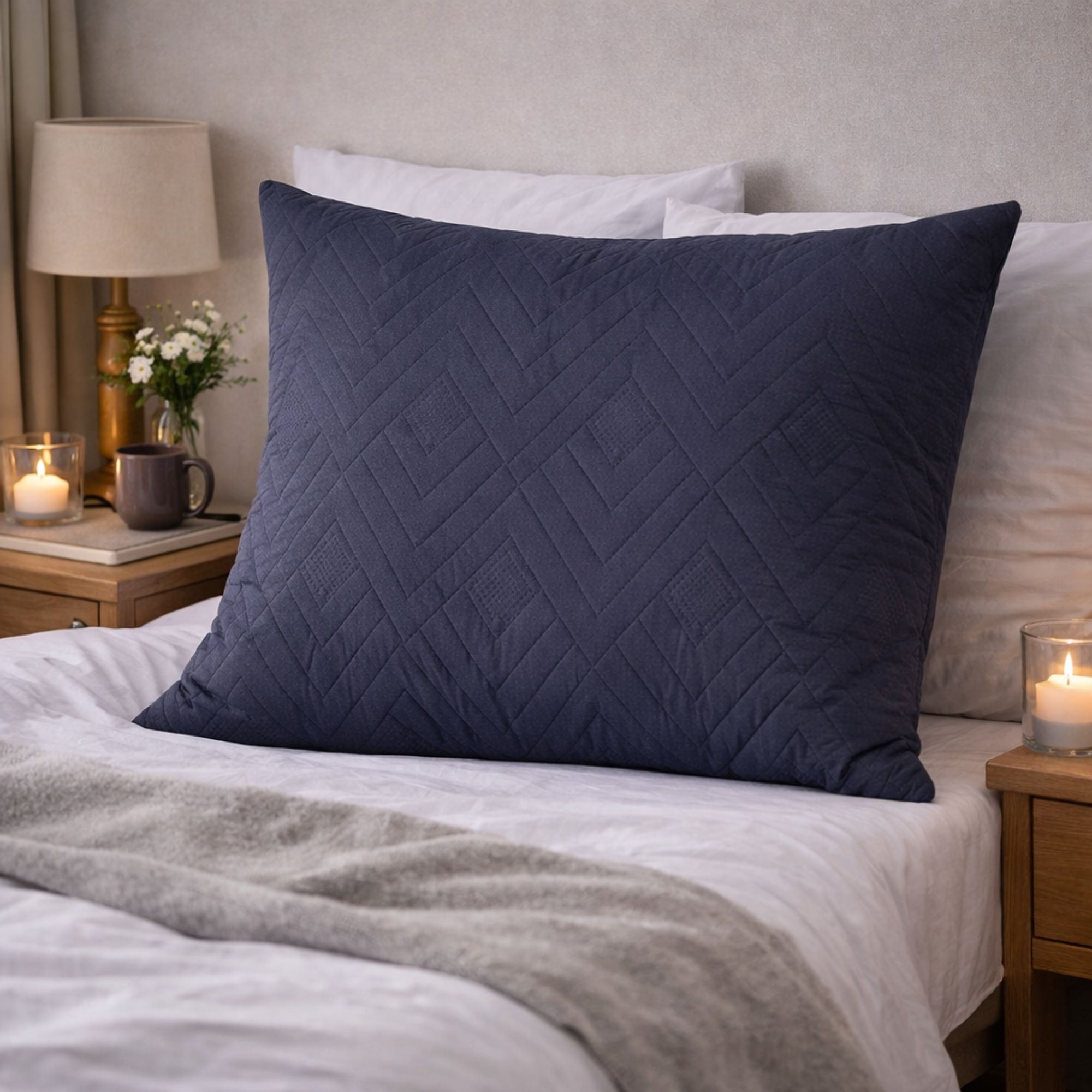Home » Interior Design » Decorations » Decorative Cushions Headboard pillow - 80x80 cm - Double-sided - Dark blue and light blue - Large decorative cushion for the bed Save50% Borg Living 68,4934,49EURSave 34,- Few in stock Quantity Add to basket See more from: Borg Living Item number: PY3004-blaa Explore our extensive selection of bedspreads Discover our selection of dressing gowns for the whole family Browse our extensive selection of home accessories Do you have questions about the product? Reversible with two coloursRemovable cover with zipOEKO-TEX® Certified Pillow size: 80x80 cm Colour: Double-sided - Dark blue and light blue Filling: Polyester Cover: Polyester Design: Borg Living Removable cover: Yes - Zip Wash: 30° Certification: STANDARD 100 by OEKO-TEX® (19. HCN. 74736 HOHENSTEIN HTTI) Unique and versatile headboard cushion from Borg Living This large headboard cushion from Borg Living is not only a stylish and modern addition to your bed but also practical and comfortable. With its two colours, dark grey and light grey, it allows you to change the appearance of the bed according to your mood and the season. The pillow is crafted to line the headboard perfectly, with its 80x80 cm size fitting the bed's width seamlessly. Made from lightweight polyester, this pillow remains smooth and attractive, even after years of use. The cover is easily removable and washable at 30 degrees, simplifying maintenance. The Danish brand Borg Living creates exclusive series of duvets, pillows, and home textiles for your home. The brand, established in 2013, is renowned for its innovative approach to quality and design. Borg Living's fantastic products provide a comfortable night's sleep while decorating your home with modern, elegant accessories. Return to Decorative Cushions Customers also bought Bedspread - 260x240 cm - Reversible dark blue and light blue - Suitable for double bed In stock 95,4947,99EUR Add to basket Bedspread - 140X240 cm - Reversible dark blue and light blue - Blanket for a single bed In stock 61,4934,49EUR Add to basket Bedspread - 220x240 cm - Reversible dark blue and light blue - Suitable for three-quarter bed In stock 68,4940,99EUR Add to basket Decorative cushion - 45x45 cm - Double-sided - Dark blue and light blue - Sofa cushion In stock 34,4913,99EUR Add to basket Decorative cushion - 45x60 cm - Double-sided - Dark blue and light blue - Sofa cushion In stock 40,9920,49EUR Add to basket Decorative cushion - 45x45 cm - Blue - Faux fur sofa cushion - Exclusive waffle texture - Nordstrand Home In stock 36,9920,49EUR Add to basket Extra depth fitted sheet 90x200 cm - Black - 100% Cotton satin - Fitted sheet for mattress In stock 54,4924,49EUR Add to basket Bedspread - 140x240 cm - Reversible Dark grey and light grey - Cover for single bed In stock 61,4934,49EUR Add to basket Bedspread - 260x240 cm - Reversible dark grey and light grey - Blanket for double bed In stock 95,4947,99EUR Add to basket Rug 140x200 cm - Loose rug with non-slip backing - Abstract design - Soft rug from Nordstrand Home Dorte In stock 204,4995,49EUR Add to basket