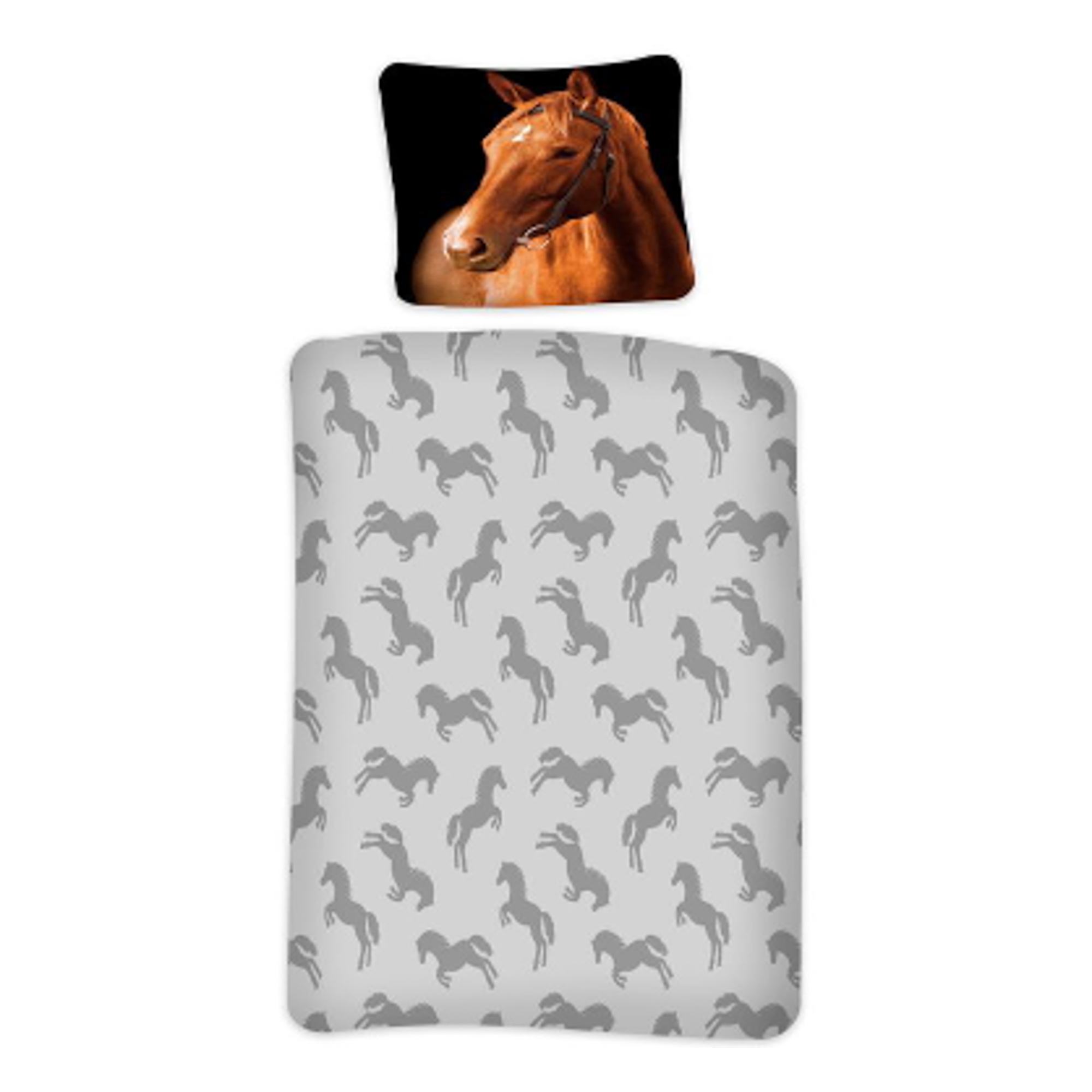Home » Bedding » Children's bedding » Children's bedding 140x200 cm Horse bedding 140x200 cm - Large and beautiful horse motif - Reversible duvet cover - 100% cotton bedding set Save43% Licens 47,9927,49EURSave 21,- In stock Quantity Add to basket See more from: Licens Item number: 1521-1 Read our bedding guide See our large selection of fitted sheets See our large selection of duvets 140x200 Do you have questions about the product? High breathabilitySoft and lovely cottonOEKO-TEX® certified Duvet cover: 140x200 cm Pillowcase: 60x63 cm Material: 100% soft cotton Color: Large, brown and gray Weave: 220TC (Thread count = number of threads per square inch) Motif: Horse Design: Reversible - Front with a horse, back with all-over print of horses Closure: Duvet with buttons, pillowcase with overlap Wash: 60°C Tumble dry: Yes Ironing safe: Yes Certification: STANDARD 100 by OEKO-TEX® (2012K0016). Your guarantee that the product is free from harmful chemicals. Bedding set in 100% soft cotton, featuring a horse on a black background. Made with light and breathable cotton threads that give the bedding a softness that makes the duvet feel wonderful for your child to sleep with. A durable bedding set with high breathability and absorbency, which will help make bedtime a pleasant experience. A really beautiful bedding set with a horse motif. The bedding set is reversible, with a sweet design of a beautiful horse silhouette on the front and an all-over print of jumping horses on a gray background on the back. All horse-loving girls and boys will simply love going to bed and snuggling under this bedding set. It is always a good idea to use the child's interests if you want to create a safer and more exciting sleeping environment for your child. The bedding set is made of 100% soft cotton which makes the set durable and highly breathable. The pure cotton quality provides a lovely and soft bedding set that helps promote sleeping comfort for the child. Cotton bedding can be washed at 60°C in the washing machine, which also helps maintain a high level of hygiene. The bedding is further produced with OEKO-TEX certification, which guarantees that the set is free from harmful chemicals. Browse for favorites and much more in our large selection of accessories for the children's universe For the child, the bed should be a safe place and all elements together should create soft and lovely surroundings for the child to find peace in. Therefore, feel free to use the child's interests to create a safe sleeping room for the child. With us, you can find a large selection of accessories for the bed and children's room, ranging from fitted sheets to duvets, pillows, bedding and much more, and lots of products with all the children's favorites on. All elements that can help create the right sleeping environment and room for your child. Here you can find lovely and soft quality fitted sheets Return to Children's bedding 140x200 cm Customers also bought 5 pieces Chef's tea towels - 50x100 cm white tea towels with blue chequered pattern In stock 20,499,99EUR Add to basket Peppa Pig bedding 140x200 cm - Peppa Pig and Frida Sheep on picnic bedding set - Reversible design - 100% cotton In stock 47,9927,49EUR Add to basket Weighted Blanket 140x200 cm - 4 kg Weighted Blanket with Glass Beads - Zen Sleep Duvets In stock 136,4968,49EUR Add to basket Cotton satin Football bedding - 140x200 cm - Football ready for corner kick - 100% cotton satin bedding Few in stock 54,4934,49EUR Add to basket Extra depth fitted sheet 70x160 cm - Dark grey - 100% Cotton percale - Fitted sheet for junior mattress In stock 27,4920,49EUR Add to basket Extra depth fitted sheet 70x160 cm - Black - 100% Cotton percale - Fitted sheet for junior mattress In stock 27,4920,49EUR Add to basket Polka Dot Mickey and Minnie Mouse Towel - 70x140 cm - 100% Cotton - Soft Bath Towel with the Cute Mice In stock 27,4917,99EUR Add to basket Towelling poncho - Children's towel - Blue tractor - 50x100 cm - 100% Cotton In stock 40,9917,99EUR Add to basket Harry Potter Towel - 70x140 cm - 100% Cotton - Soft Bath Towel with Harry Potter and His Wand In stock 27,4913,99EUR Add to basket Purple Unicorn Towel - 70x140 cm - 100% Cotton - Soft Bath Towel with a Unicorn and Stars In stock 27,4913,99EUR Add to basket