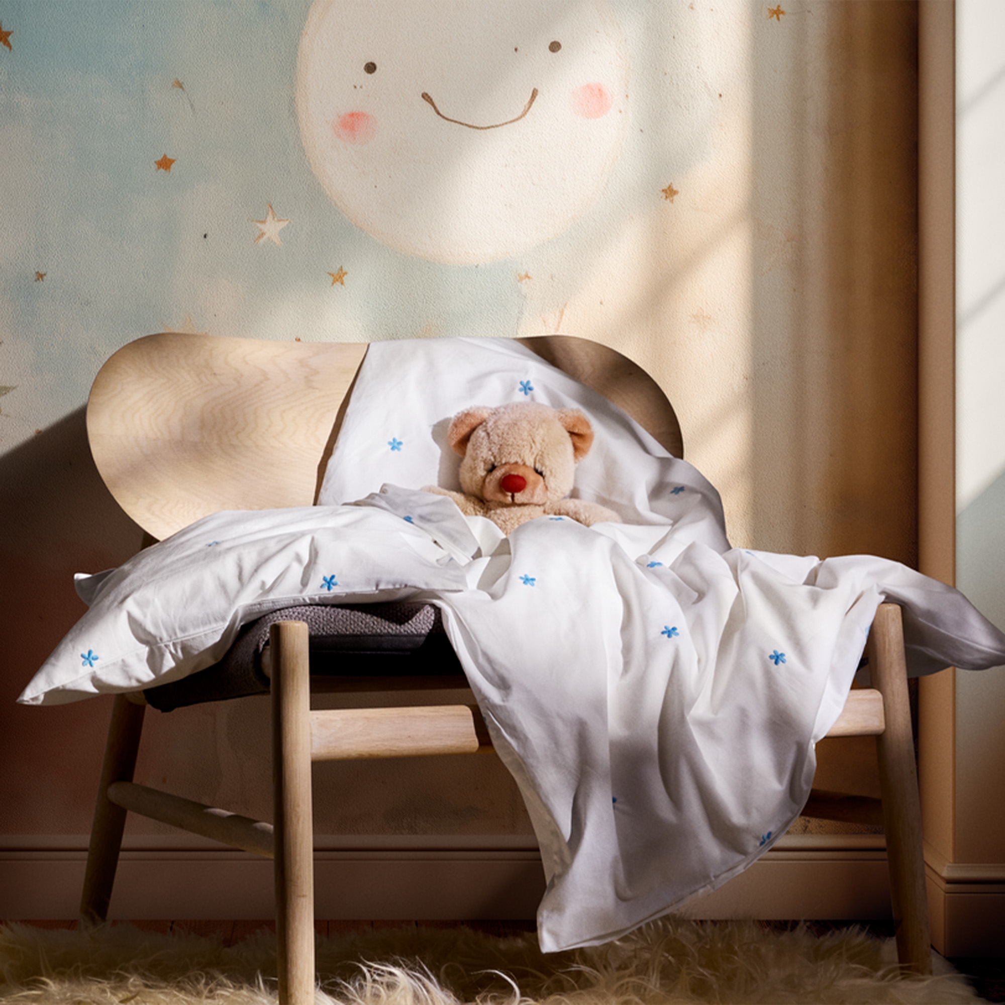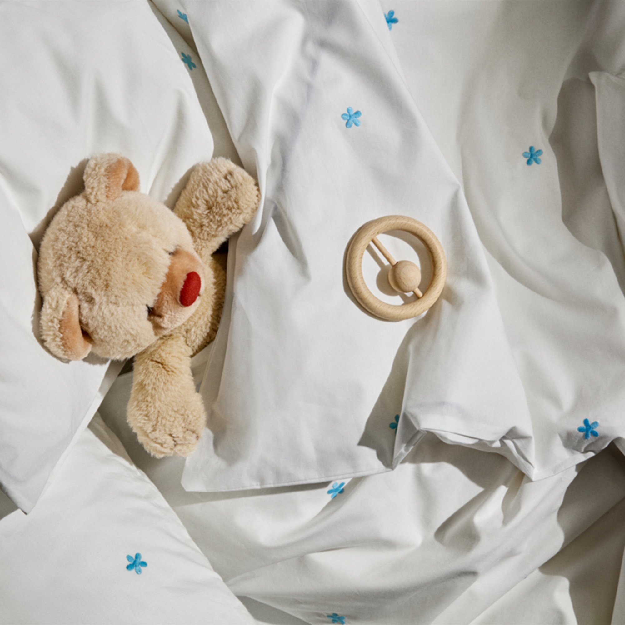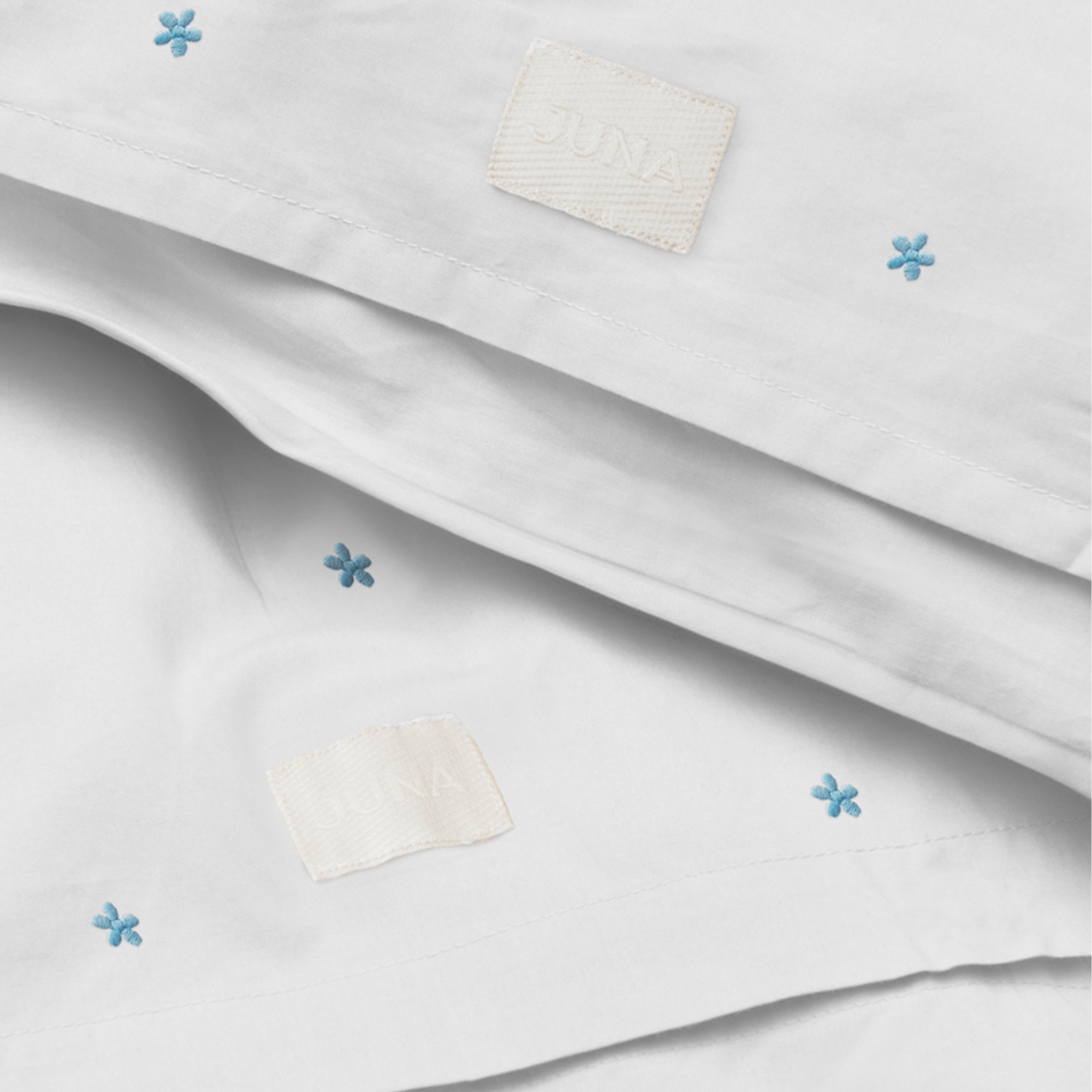 Home » Bedding » Children's bedding » Baby bedding 70x100 cm JUNA bedding - 100% organic cotton - Daisy baby bedding 70x100 cm - White with embroidered flowers JUNA Great price:54,49EUR Few in stock Quantity Add to basket See more from: JUNA Item number: 607401-7 Read our bedding guide See our wide selection of sheets See our wide selection of duvets 70x100 Do you have questions about the product? Breathable material that ensures good comfortThe bedding is perfect for children with sensitive skinDurable quality that stays beautiful wash after wash Duvet cover: 70x100 cm - baby bedding set Pillowcase: 40x45 cm Material: 100% organic cotton Color: White Design: Embroidered blue flowers Series: Daisy Brand: Rosendahl - JUNA Closure: Duvet and pillowcase with zipper Wash: 60°C Tumble drying: Yes Ironing: Yes Certification: STANDARD 100 by OEKO-TEX®. Your guarantee that the product is free from harmful chemicals. Certification: GOTS certified (GOTS Organic Certified by CU1026087). Your guarantee for organic textile production with a focus on the environment, responsibility and freedom from harmful chemicals throughout the production process. Baby bedding 70x100 cm - Daisy from JUNA Create a peaceful night's sleep with this beautiful baby bedding from JUNA's Daisy series. The classic white design with embroidered blue flowers gives a timeless, serene look. The bedding set is made from 100% organic cotton in an exclusive percale weave, which provides a soft, smooth and breathable quality - perfect for baby’s delicate skin. The fine percale weave gives a light and pleasant texture, while the material is durable and keeps its beautiful appearance wash after wash. The small embroidered flowers create a cozy and calm expression that fits perfectly into any nursery. The bedding is both GOTS-certified and OEKO-TEX® certified, ensuring that it is produced with a focus on the environment, responsibility and without harmful chemicals - a safe choice for the little ones. See all baby bedding here JUNA - Rosendahl JUNA is part of Rosendahl Design Group and represents home textiles with a focus on aesthetics, quality and responsible production. The brand combines classic Scandinavian design with contemporary trends and creates textiles that bring personality and warmth into the home. JUNA is particularly known for its colorful and playful universe, where patterns, stripes and graphic expressions go hand in hand with soft materials and high comfort. With a strong focus on the environment, JUNA uses certified materials and responsible production methods, so you can choose textiles with care. See the full range from Juna here Return to Baby bedding 70x100 cm