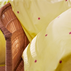 Home » Bedding » Children's bedding » Baby bedding 70x100 cm JUNA bedding - 100% organic cotton - Daisy baby bedding 70x100 cm - Yellow with embroidered flowers JUNA Great price:54,49EUR Few in stock Quantity Add to basket See more from: JUNA Item number: 637170-7 Read our bedding guide See our large selection of sheets See our large selection of duvets 70x100 Do you have questions about the product? Breathable material that ensures good comfortThe bedding is perfect for children with sensitive skinDurable quality that stays looking good wash after wash Duvet cover: 70x100 cm - baby bedding set Pillowcase: 40x45 cm Material: 100% organic cotton Color: Yellow Design: Embroidered light pink flowers Series: Daisy Brand: Rosendahl - JUNA Closure: Duvet closes with buttons and pillowcase with overlap Wash: 60° Tumble dry: Yes Suitable for ironing: Yes Certification: STANDARD 100 by OEKO-TEX®. Your guarantee that the product is free from harmful chemicals. Certification: GOTS certified (GOTS Organic Certified by CU1026087). Your guarantee of organic textile production with focus on environment, responsibility and freedom from harmful chemicals throughout the production process. Baby bedding 70x100 cm - Daisy from JUNA Create a secure night's sleep with this beautiful baby bedding from the JUNA Daisy series. The delicate yellow color with embroidered flowers gives a timeless and calm expression. The bedding set is made from 100% organic cotton in an exclusive percale weave, which ensures a soft, smooth and breathable quality - perfect for the baby's delicate skin. The fine percale weave provides a light and pleasant texture, while the material is durable and stays looking good wash after wash. The small embroidered flowers create a cozy and calm expression that fits perfectly into any nursery. The bedding is both GOTS-certified and OEKO-TEX® certified, ensuring that it is produced with focus on the environment, responsibility and without harmful chemicals - a safe choice for the little ones. See all baby bedding here JUNA - Rosendahl JUNA is part of Rosendahl Design Group and represents home textiles with focus on both aesthetics, quality and responsible production. The brand combines classic Scandinavian design with contemporary trends and creates textiles that bring personality and warmth into the home. JUNA is especially known for its colorful and playful universe, where patterns, stripes and graphic expressions go hand in hand with soft materials and high comfort. With a strong focus on the environment, JUNA uses certified materials and responsible production methods, so you can choose textiles with care. See the full range from JUNA here Return to Baby bedding 70x100 cm