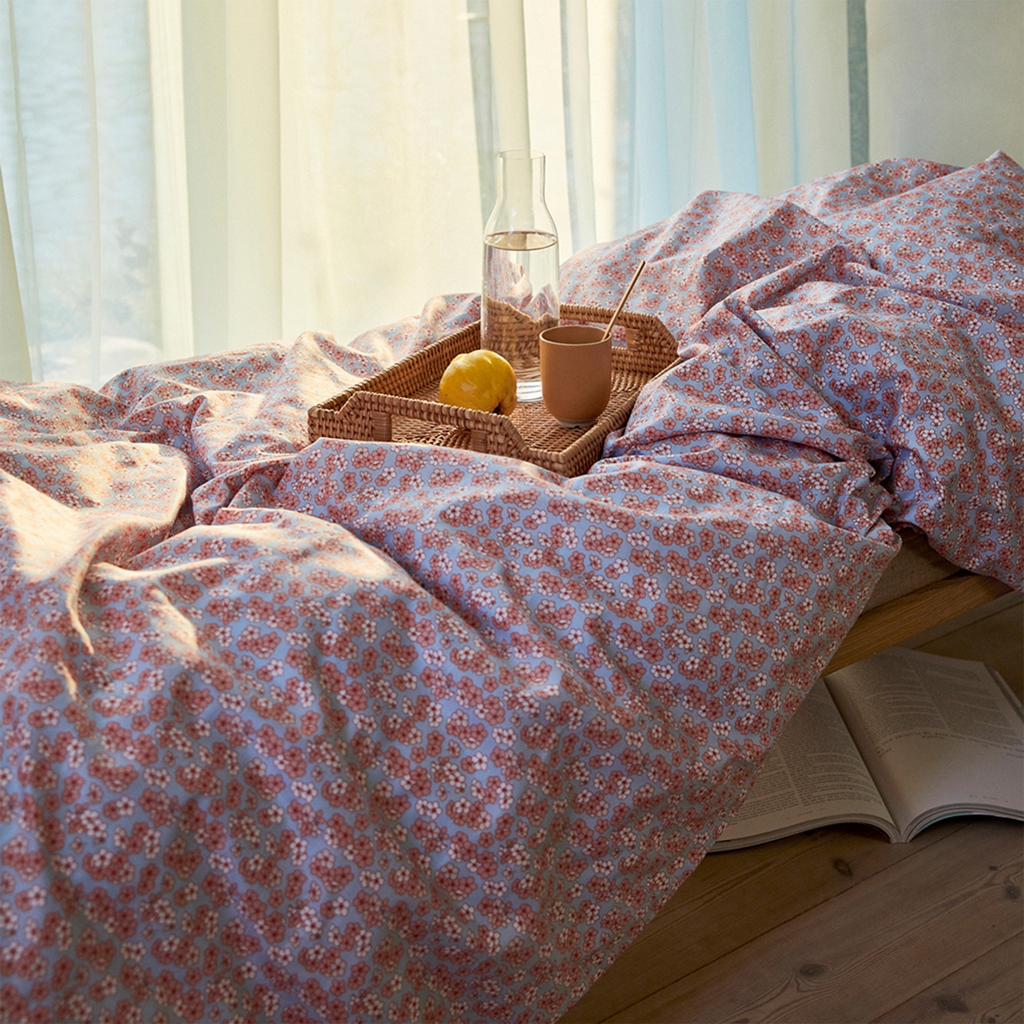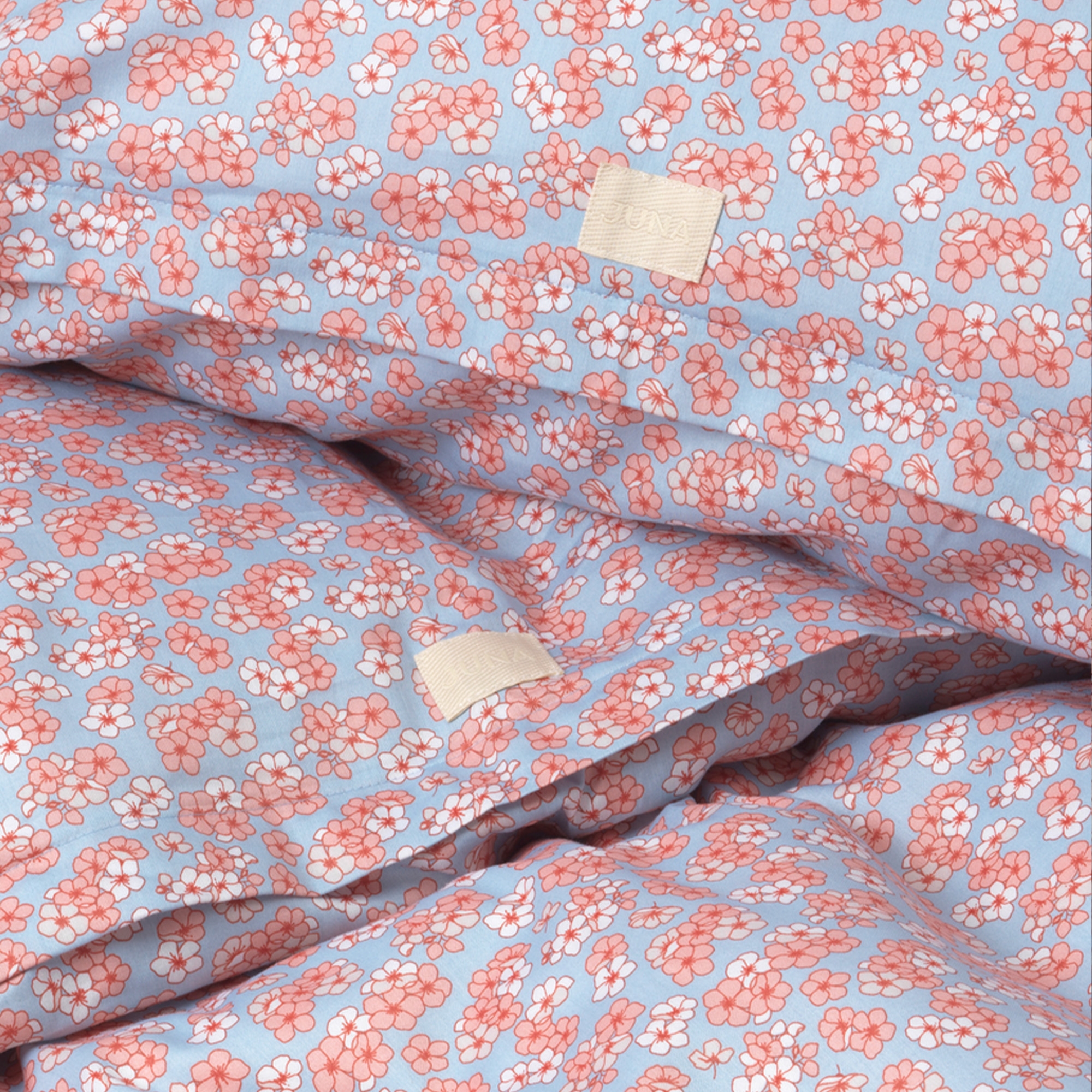 Home » Bedding » Single bedding » Single bedding 140x200 cm JUNA bedding 140x200 cm - 100% organic cotton satin - Pleasantly blue with pink flowers JUNA Great price:68,49EUR Few in stock Quantity Add to basket See more from: JUNA Item number: 636566-1 Read our bedding guide See our wide selection of bedding See our wide selection of duvets 140x200 Do you have questions about the product? Breathable material that provides better sleep comfortSoft quality that feels comfortable to sleep inStays nice and soft even after many washes Duvet cover: 140x200 cm Pillowcase: 60x63 cm Material: 100% organic cotton satin Color: Blue with flowers Series: Pleasantly Brand: Rosendahl - JUNA Closure: Duvet closes with zipper, pillowcase with overlap Wash: 60° Tumble drying: Yes Ironable: Yes Certification: STANDARD 100 by OEKO-TEX®. Your guarantee that the product is free from harmful chemicals. Certification: GOTS certified (GOTS Organic Certified by Control Union CU1026087). Your guarantee of organic textile production with focus on the environment, responsibility and freedom from harmful chemicals throughout the production process. Bedding 140x200 cm - JUNA Pleasantly blue with flowers Create a fresh and harmonious atmosphere in the bedroom with this beautiful bedding from the JUNA Pleasantly series. The elegant floral print on a blue background adds both life and calm to your decor. The bedding set is made from 100% organic cotton satin, which provides a silky-soft and smooth surface with a slight sheen. The material feels pleasant against the skin and ensures comfortable sleep night after night. Cotton satin is known for its extra soft and smooth texture, which gives a luxurious feel and makes it even more inviting to crawl under the duvet. The floral design in green tones creates a natural and relaxing atmosphere in the bedroom. The bedding set is both GOTS-certified and OEKO-TEX® certified, ensuring that it is produced with consideration for both the environment and health. The duvet cover closes with a zipper, while the pillowcase has an overlap, making it quick and easy to change the bedding. See the full range of bedding here JUNA - Rosendahl JUNA is part of Rosendahl Design Group and represents home textiles with a focus on aesthetics, quality and responsible production. The brand combines classic Scandinavian design with contemporary trends and creates textiles that bring personality and warmth into the home. JUNA is especially known for its colorful and playful universe, where patterns, stripes and graphic expressions go hand in hand with soft materials and high comfort. With a strong focus on the environment, JUNA uses certified materials and responsible production methods, so you can choose textiles with care. See the full selection from JUNA here Return to Single bedding 140x200 cm