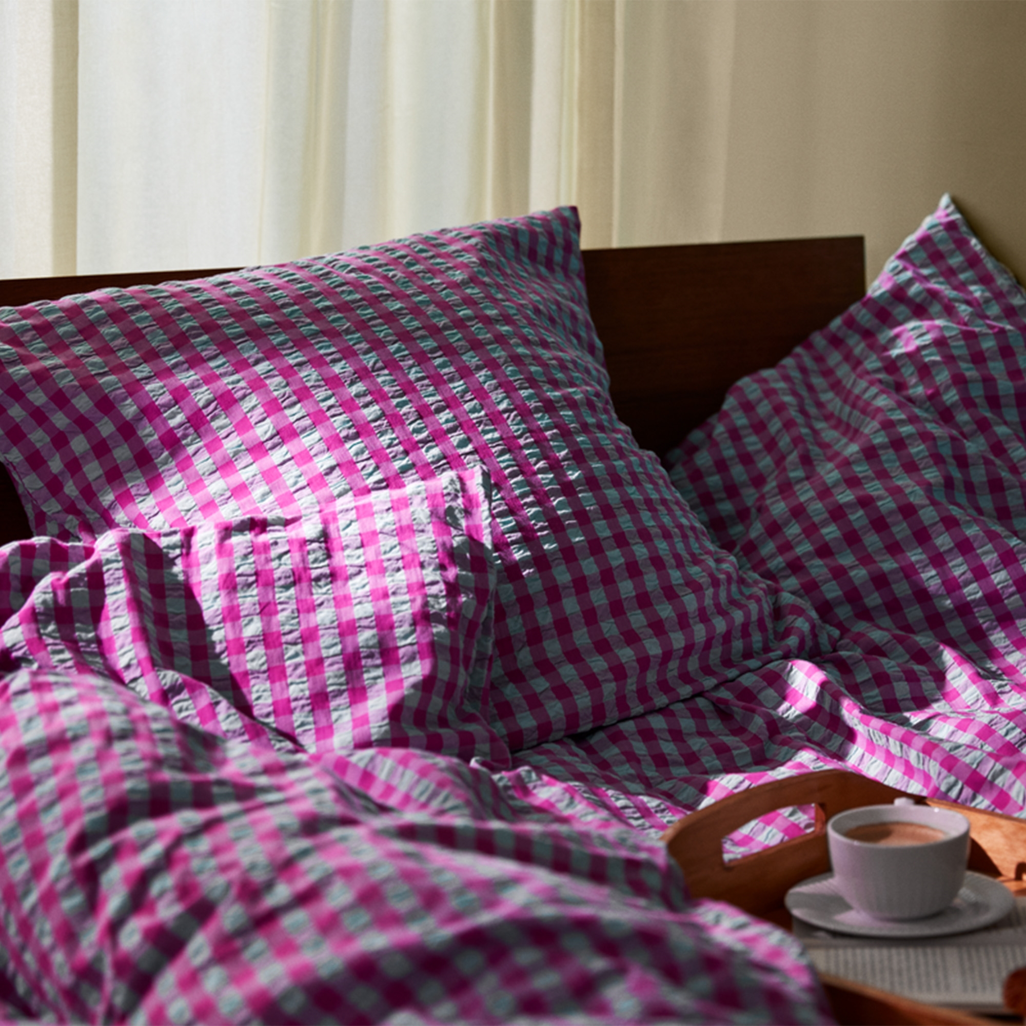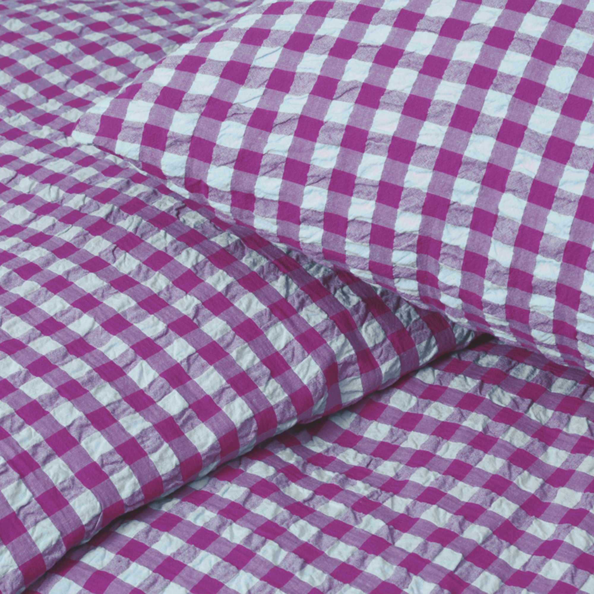 The soft cotton combined with the crinkled texture gives a unique feeling of luxury. At the same time, the bedding is practical for everyday use as it does not require ironing and retains its attractive look wash after wash. The soft purple checks provide a calm and elegant look that fits both modern and classic bedrooms.