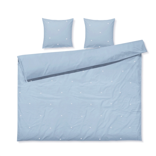 Daisy double bedding in organic cotton - light blue with embroidered flowers