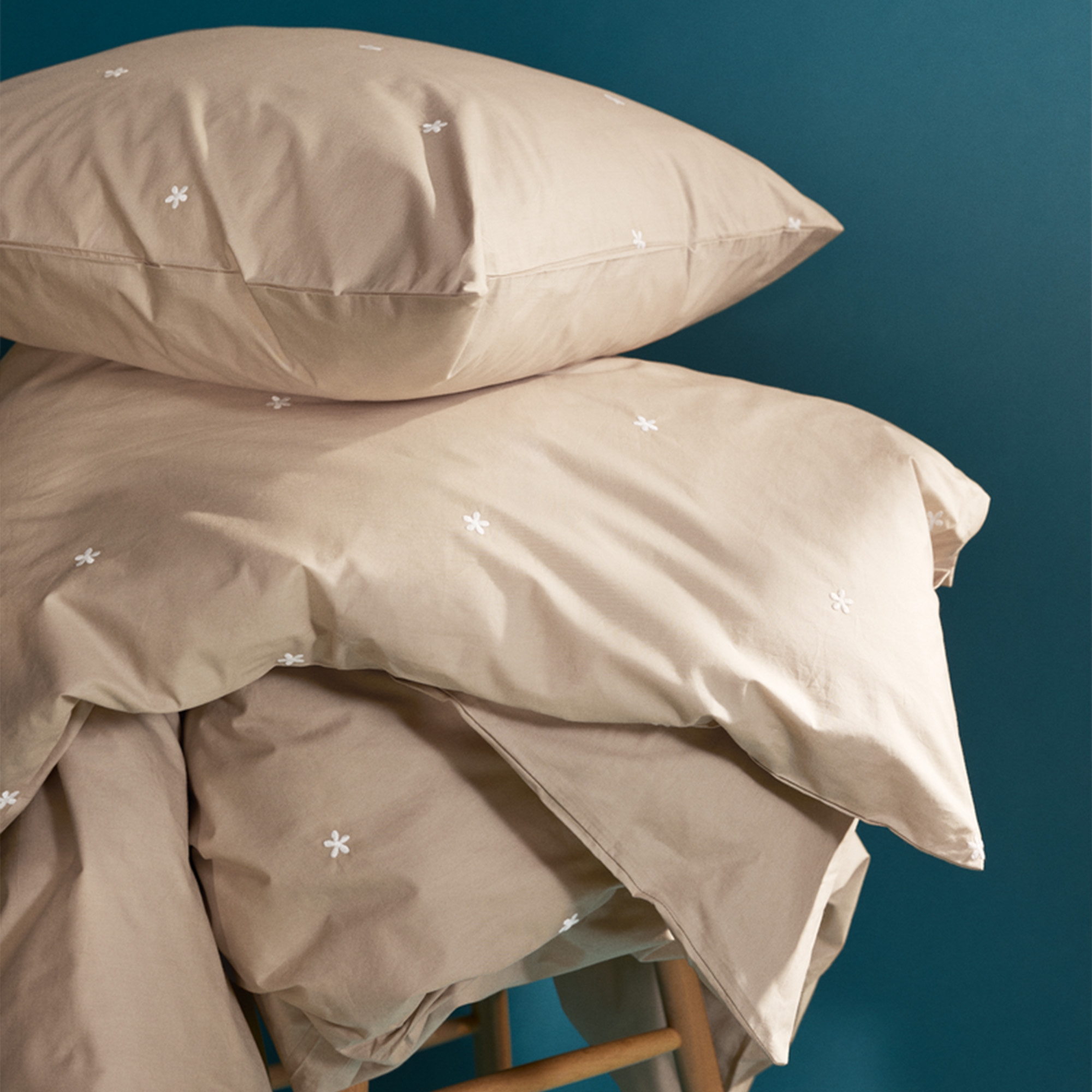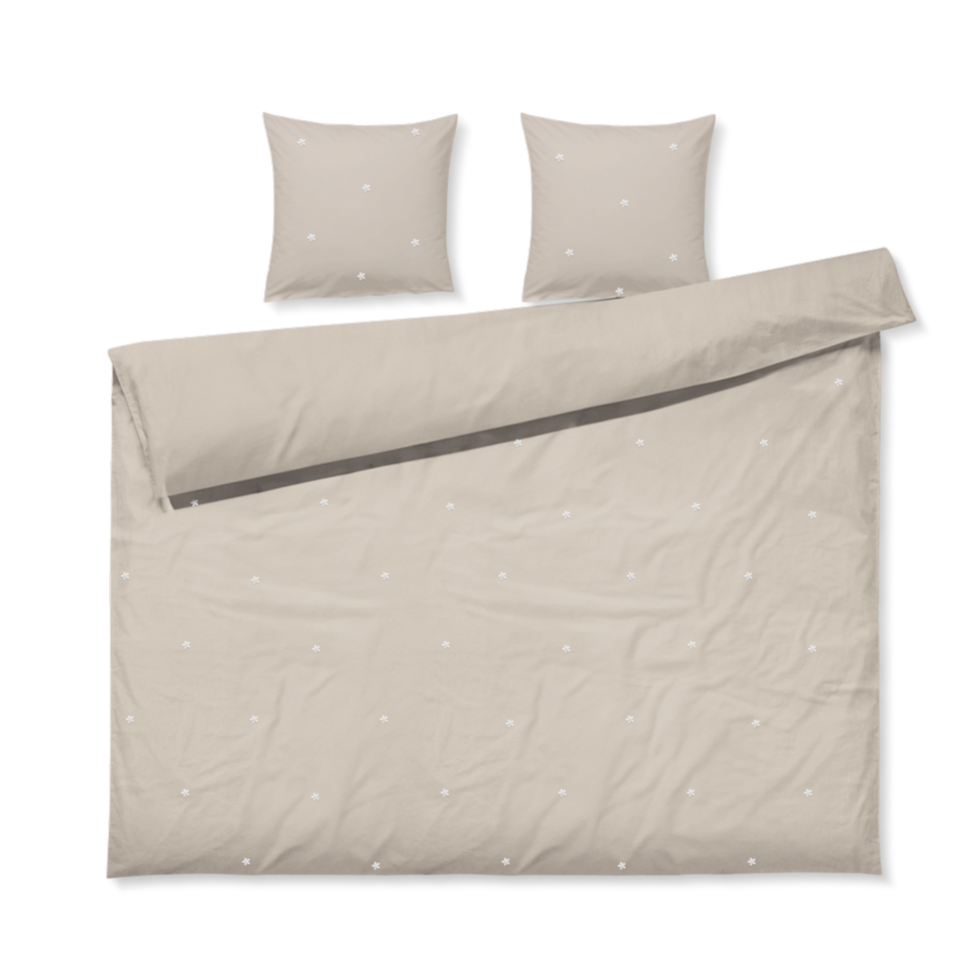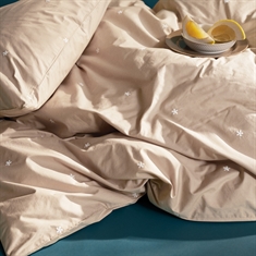 Daisy double bedding in organic cotton - sand with embroidered flowers