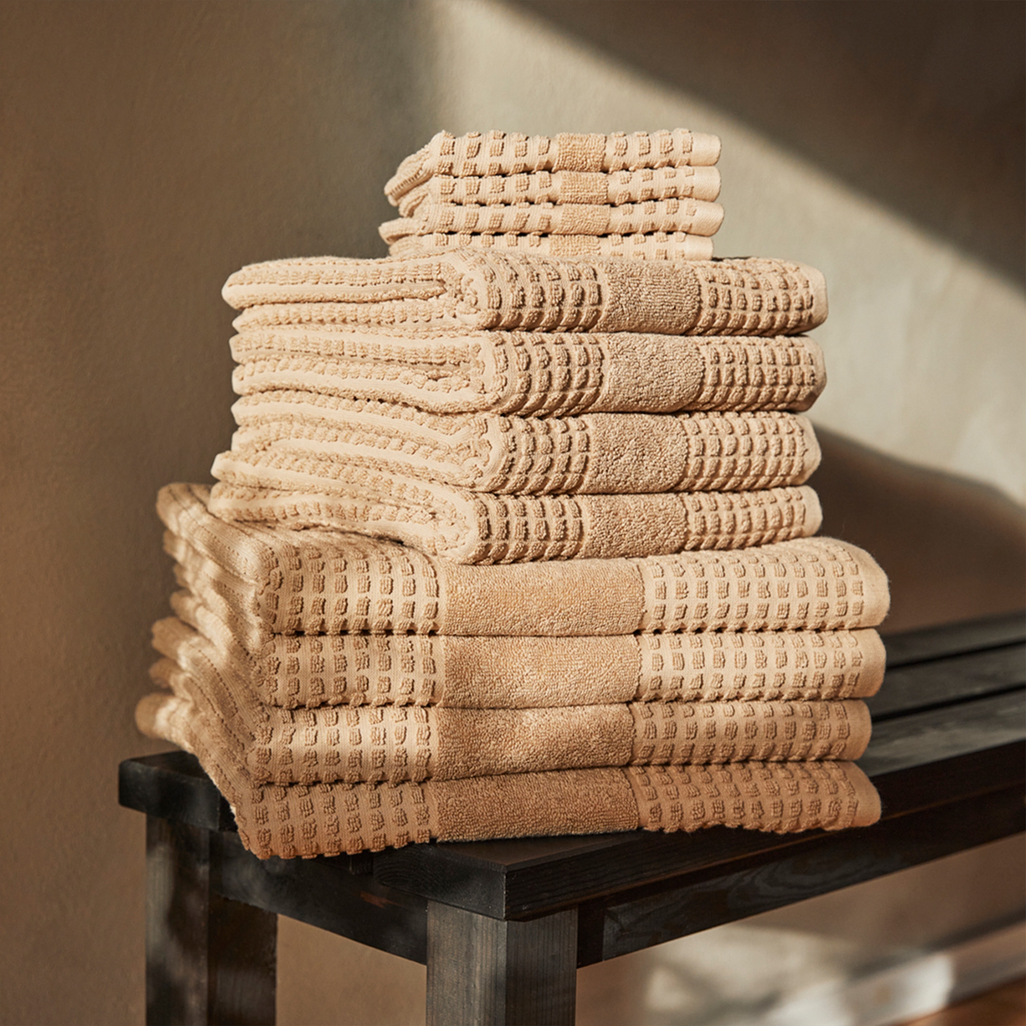 Indulge in everyday luxury with this beautiful Check bath towel from JUNA. The warm sand color and the subtle check pattern create a calm and refined expression that fits perfectly into the modern bathroom.