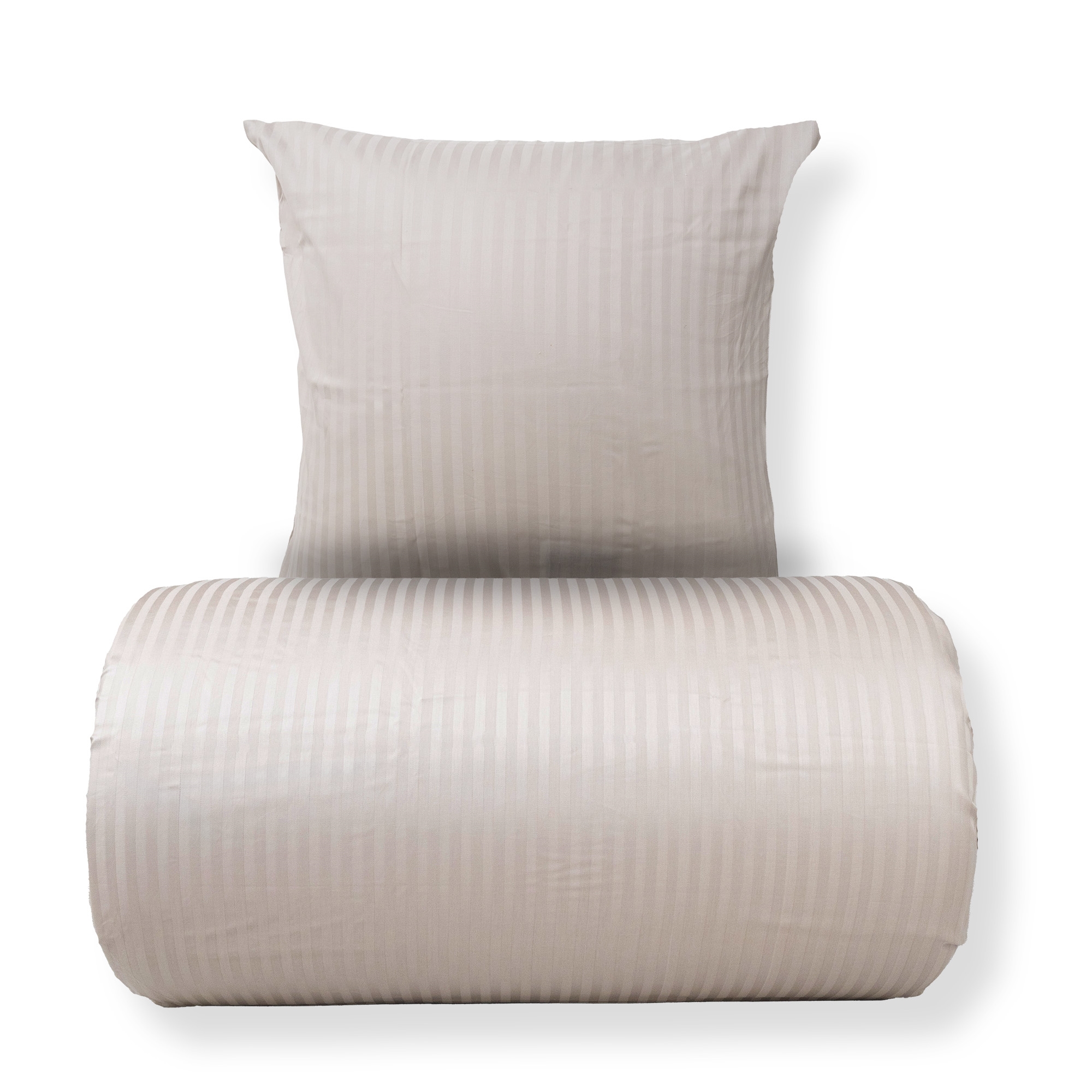 Create a safe and comfortable sleep environment for your child with this exclusive junior bedding set in 100% cotton satin from Borg Living. The bedding is jacquard-woven with discreet, sand-coloured solid stripes that provide a calm and timeless expression – perfect for both girls' and boys' rooms.