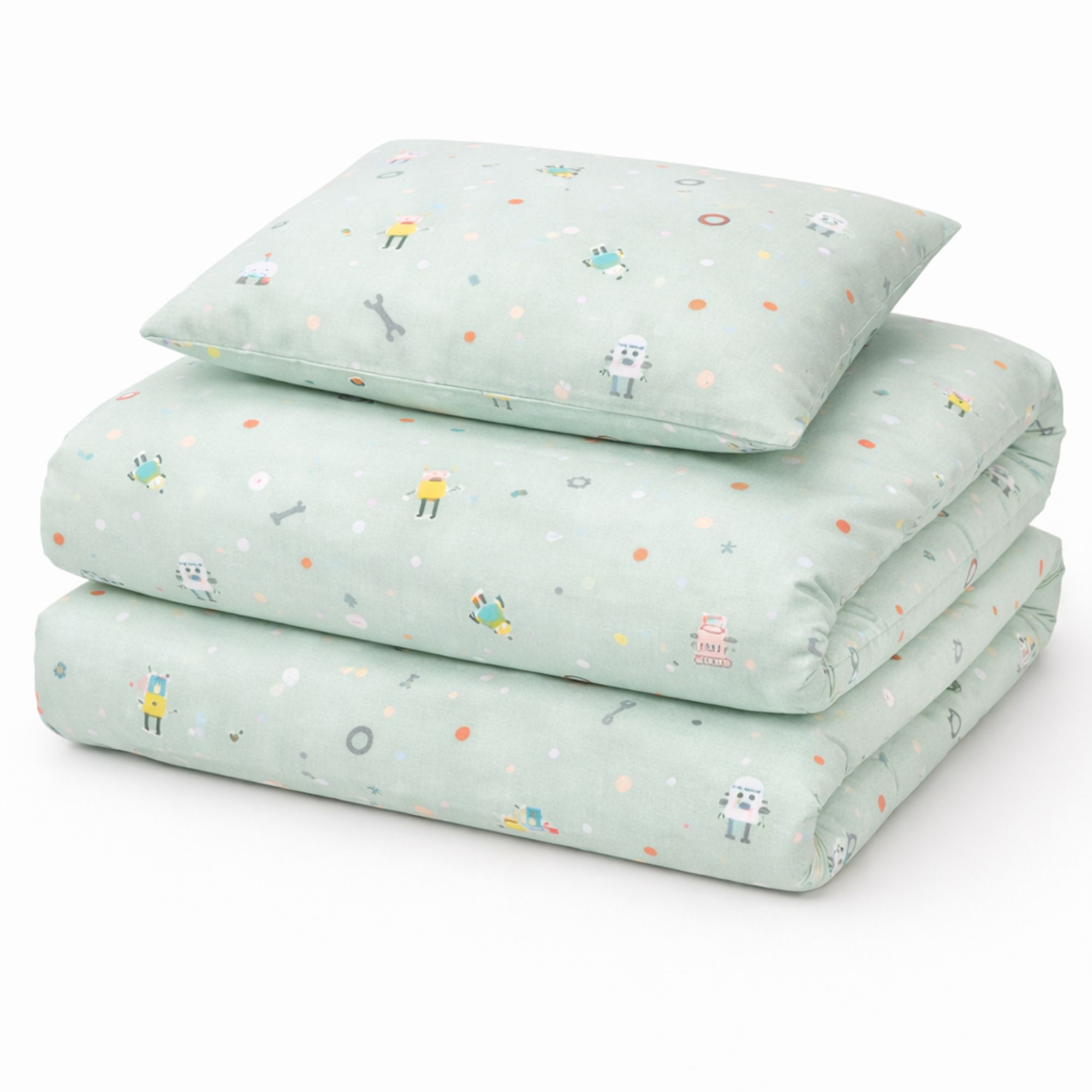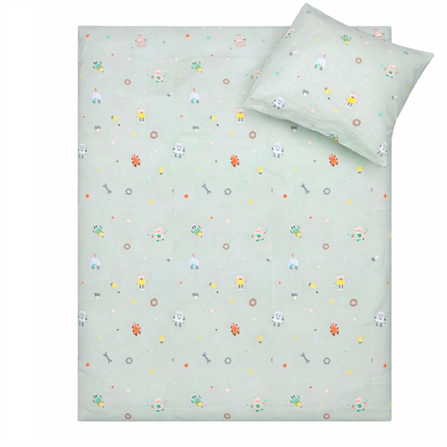 Home » Bedding » Children's bedding » Junior bedding 100x140 cm Junior bedding 100x140 cm - Blue bedding set with robots - 100% soft cotton bed linen Save35% By Mats 27,4917,99EURSave 10,- In stock Quantity Add to basket See more from: By Mats Item number: 12152-8 Read our bedding guide See our large selection of fitted sheets See our large selection of all-season duvets 100x140 Do you have questions about the product? High breathability100% soft cottonOEKO-TEX® certified Duvet cover: 100x140 cm - junior bedding set Pillowcase: 40x45 cm Material: 100% soft cotton Color: Blue Design: Robots Closure: Duvet with buttons and pillowcase with overlap Wash: 60° Tumble dry: Yes Ironing safe: Yes Certification: STANDARD 100 by OEKO-TEX® (2016OK0709 AITEX). Your guarantee that the product is free from harmful chemicals. Soft junior bedding in 100% cotton, with robots. Made with light and breathable cotton threads that give the bedding set a softness feeling, making the duvet feel lovely for your child to sleep with. The balance of natural properties and comfort from the soft material, combined with the cozy design, makes this set a sure favorite for your child. Beautiful junior bedding set with an all-over print of robots, which is not only soft and comfortable but also decorative and will brighten up the children's room. The bedding set is made of 100% cotton, making it durable, soft, and providing high absorbency and breathability. The pure cotton quality gives a lovely and soft bedding set that is also easy to maintain and creates a pleasant sleeping environment for your child. Cotton bedding can be washed at 60° in the washing machine, which also helps maintain a high level of hygiene. The bedding is furthermore OEKO-TEX certified, which guarantees that the set is free from harmful chemicals. Browse for favorites and much more in our large selection of accessories for the children's universe For the child, the bed should be a safe place, and all elements together should create soft and lovely surroundings for the child to find peace in. Therefore, feel free to use the child's interests to create a safe sleeping room for the child. With us, you can find a large selection of accessories for the bed and children's room, ranging from fitted sheets, all-season duvets, pillows, bedding, and much more, with plenty of products featuring all the children's favorites. All elements that can help create the right sleeping environment and room for your child. Here you can find lovely and soft quality fitted sheets Return to Junior bedding 100x140 cm Customers also bought Junior bedding 100x140 cm - White striped bedding set with dinosaurs and rockets - 100% soft cotton bed linen In stock 27,4917,99EUR Add to basket Minecraft Towel - 70x140 cm - 100% Cotton - Soft Bath Towel with Minecraft Fish In stock 27,4913,99EUR Add to basket Junior all-season duvet 100x140 cm - With 100% musk duck down - Allergy-friendly down duvet - Nordstrand Home junior duvet In stock 149,9981,99EUR Add to basket Bed wetting sheet - 70x160 cm - White - waterproof sheet for junior bed - Borg Living In stock 38,4919,49EUR Add to basket Bamboo junior duvet 100x140 cm - All-season duvet with extra soft bamboo and down fibres - Borg Living In stock 136,4954,49EUR Add to basket Stretch fitted sheet 90x200 cm - White jersey sheet - IN Style fitted sheet In stock 23,498,49EUR Add to basket Stretch fitted sheet 70x160 cm - Anthracite grey - 100% cotton jersey sheet - Fitted sheet for junior mattress In stock 31,49EUR Add to basket Musk Down Junior Pillow - 40x45 cm - Children's Pillow - Nordstrand Home Musk Down Pillow In stock 54,4934,49EUR Add to basket Underwater motif bedding - 100% cotton - Junior bedding 100x140 cm - White with underwater motifs In stock 27,4917,99EUR Add to basket Fire brigade bedding - 100% cotton - Junior bedding 100x140 cm - Beige with fire brigade icons In stock 27,4917,99EUR Add to basket You might also be interested in: White bedding - 100% Egyptian cotton satin - Junior bedding 100x140 cm - Turistripa - Narrow stripesTemperature-regulating and breathable material Extra fine 230TC satin weave for incredible softness Smooth and luxurious surface against the skin Guideline sales price : 61,22 Save : 13,23 68,49 EUR47,99 EUR (incl. VAT) Junior mattress protector - 70x140 cm - Boiled Cotton - Borg LivingBreathable and hypoallergenic Soft cotton OEKO-TEX® certified 47,99 EUR27,49 EUR (incl. VAT)