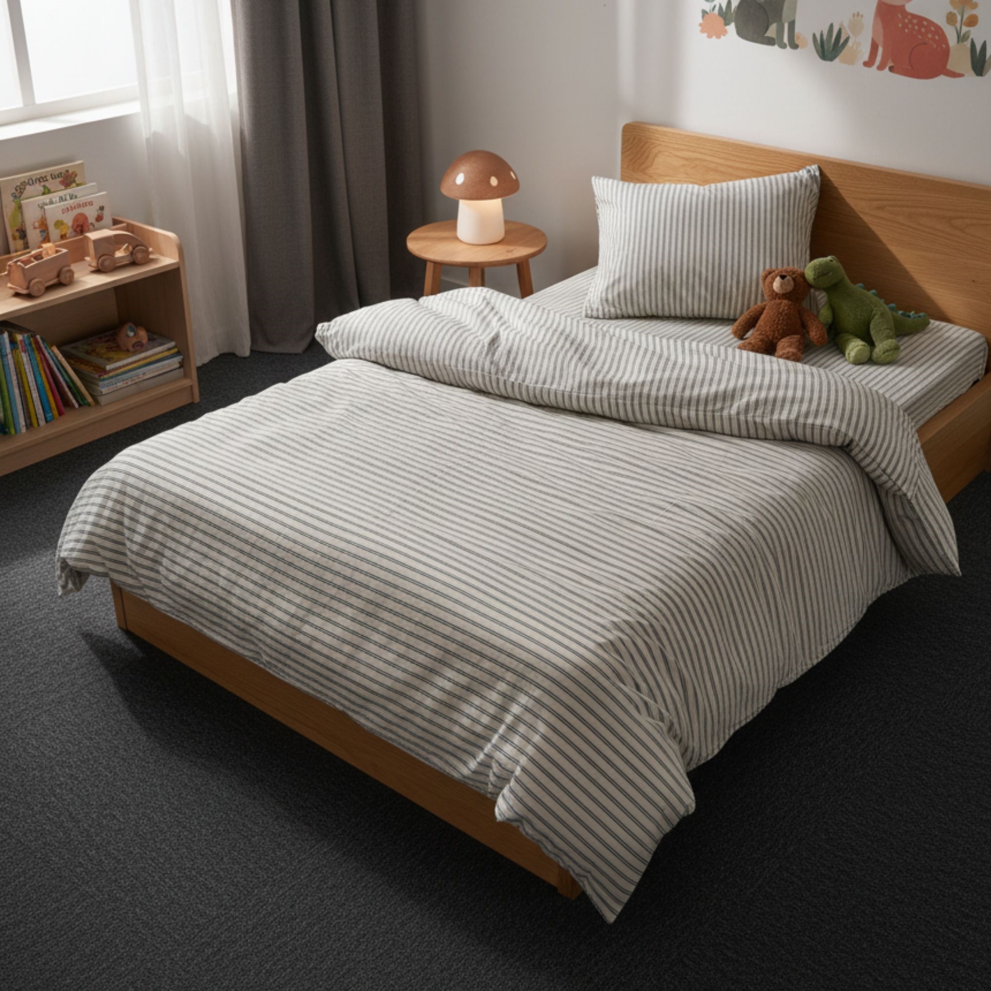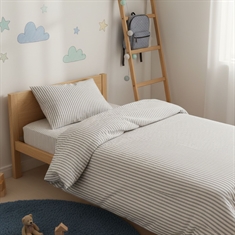 Home » Bedding » Children's bedding » Junior bedding 100x140 cm Junior bedding 100x140 cm - White bed set with green stripes - 100% soft cotton bed linen Save35% By Mats 27,4917,99EURSave 10,- In stock Quantity Add to basket See more from: By Mats Item number: 12159-8 Read our bedding guide See our large selection of fitted sheets See our large selection of duvets 100x140 Do you have questions about the product? High breathability100% soft cottonOEKO-TEX® certified Duvet cover: 100x140 cm - junior bed set Pillowcase: 40x45 cm Material: 100% soft cotton Color: White and green Design: Stripes Closure: Duvet with buttons and pillowcase with overlap Wash: 60° Tumble dry: Yes Ironing safe: Yes Certification: STANDARD 100 by OEKO-TEX® (2016OK0709 AITEX). Your guarantee that the product is free from harmful chemicals. Soft junior bedding in 100% cotton, with stripes. Made with light and breathable cotton threads that give the bed set a feeling of softness, making the duvet feel lovely for your child to sleep with. The balance of natural properties and comfort from the soft material, combined with the cozy design, makes this set a sure favorite for your child. Beautiful junior bed set with stripes, which is not only soft and comfortable but also decorative and will enhance the children's room. The bed set is made of 100% cotton which makes the set durable, soft and provides high absorbency as well as breathability. The pure cotton quality gives a lovely and soft bed set, which is also easy to maintain and creates a pleasant sleeping environment for your child. Cotton bedding can be washed at 60° in the washing machine, which also helps maintain a high level of hygiene. The bedding is furthermore OEKO-TEX certified, which is your guarantee that the set is free from harmful chemicals. Browse for favorites and much more in our large selection of accessories for the children's universe For the child, the bed should be a safe place and all elements together should create soft and pleasant surroundings for the child to find peace in. Therefore, feel free to use the child's interests to create a safe sleeping room for the child. With us, you can find a large selection of accessories for the bed and children's room, ranging from fitted sheets to duvets, pillows, bedding and much more, and plenty of products featuring all the children's favorites. All elements that can help create the right sleeping environment and room for your child. Here you can find lovely and soft quality fitted sheets Return to Junior bedding 100x140 cm Customers also bought Junior bedding 100x140 cm - Bedding set with white and blue stripes - 100% soft cotton bed linen In stock 27,4917,99EUR Add to basket Junior bedding 100x140 cm - White striped bedding set with dinosaurs and rockets - 100% soft cotton bed linen In stock 27,4917,99EUR Add to basket Junior all-season duvet 100x140 cm - With 100% musk duck down - Allergy-friendly down duvet - Nordstrand Home junior duvet In stock 149,9981,99EUR Add to basket Checked bedding - 100% cotton - Junior bedding 100x140 cm - Blue and white checks In stock 27,4917,99EUR Add to basket Junior pillow with down fibre - 40x45 cm - Zen Sleep - Children's pillow In stock 31,4913,99EUR Add to basket Bedding with animals - 100% cotton - Junior bedding 100x140 cm - Farm motif In stock 47,9920,49EUR Add to basket Ventilating Junior duvet 100x140 cm with class 1 muscovy down - SLEEP TECH By Borg Air flow down duvet In stock 272,4995,49EUR Add to basket Junior bedding 100x140 cm - Bedding set with white and light pink checks - 100% soft cotton bed linen In stock 27,4917,99EUR Add to basket Dragonfly bedding - 100% cotton - Junior bedding 100x140 cm - Beige with dragonflies In stock 27,4917,99EUR Add to basket Junior Wool Duvet - 100% pure new European wool - OEKO-TEX certified all-season duvet - 100x140 cm - Nature By Borg wool duvet In stock 176,9954,49EUR Add to basket You might also be interested in: White bedding - 100% Egyptian cotton satin - Junior bedding 100x140 cm - Turistripa - Narrow stripesTemperature-regulating and breathable material Extra fine 230TC satin weave for incredible softness Smooth and luxurious surface against the skin Guideline sales price : 61,22 Save : 13,23 68,49 EUR47,99 EUR (incl. VAT) Junior mattress protector - 70x140 cm - Boiled Cotton - Borg LivingBreathable and hypoallergenic Soft cotton OEKO-TEX® certified 47,99 EUR27,49 EUR (incl. VAT)
