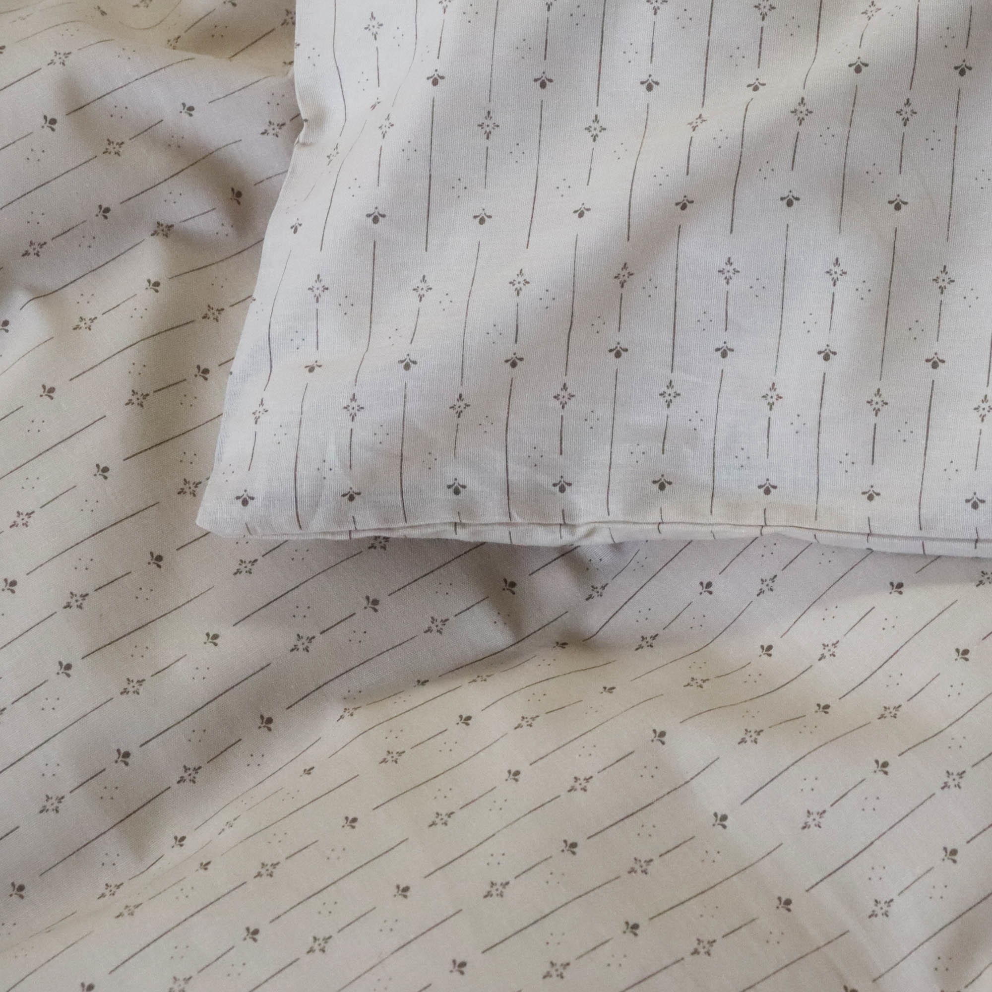 Home » Bedding » Children's bedding » Junior bedding 100x140 cm Junior bedding 100x140 cm - White bedding set with black floral stripes - 100% soft cotton bed linen Save35% By Mats 27,4917,99EURSave 10,- In stock Quantity Add to basket See more from: By Mats Item number: 12164-8 Read our bedding guide See our large selection of fitted sheets See our large selection of duvets 100x140 Do you have questions about the product? High breathability100% soft cottonOEKO-TEX® certified Duvet cover: 100x140 cm - junior bedding set Pillowcase: 40x45 cm Material: 100% soft cotton Color: White and black Design: Floral stripes Closure: Duvet with buttons and pillowcase with overlap Wash: 60° Tumble dry: Yes Ironing safe: Yes Certification: STANDARD 100 by OEKO-TEX® (2016OK0709 AITEX). Your guarantee that the product is free from harmful chemicals. Soft junior bedding in 100% cotton, with floral stripes. Produced with light and breathable cotton threads that give the bedding set a feeling of softness, making the duvet feel lovely for your child to sleep with. The balance of natural properties and comfort from the soft material, combined with the cozy design, makes this set a sure favorite for your child. Beautiful junior bedding set with floral stripes, which is not only soft and comfortable but also decorative and will enhance the children's room. The bedding set is made of 100% cotton, making the set durable, soft, and providing high absorbency as well as breathability. The pure cotton quality gives a lovely and soft bedding set, which is also easy to maintain and creates a pleasant sleeping environment for your child. Cotton bedding can be washed at 60° in the washing machine, which also helps maintain a high level of hygiene. The bedding is further produced with OEKO-TEX certification, which is your guarantee that the set is free from harmful chemicals. Browse favorites and much more in our large selection of accessories for the children's universe For the child, the bed should be a safe place and all elements together should create soft and pleasant surroundings for the child to find peace in. Therefore, feel free to use the child's interests to create a safe sleeping room for the child. With us, you can find a large selection of accessories for the bed and children's room, ranging from fitted sheets to duvets, pillows, bedding, and much more, and lots of products with all the children's favorites on. All elements that can help create the right sleeping environment and room for your child. Here you can find lovely and soft quality fitted sheets Return to Junior bedding 100x140 cm You might also be interested in: Junior bedding 100x140 cm - Soft white bedding set in 100% Egyptian cotton satin - Turiform bed linenHigh quality Extra fine, soft & breathable Jacquard woven Guideline sales price : 61,22 Save : 13,23 68,49 EUR47,99 EUR (incl. VAT) Extra depth fitted sheet 70x140 cm - White - 100% extra fine cotton satin - Fitted sheet for junior mattressExtra depth fitted sheet - White 100% cotton satin 70x140x15 cm Guideline sales price : 40,81 Save : 6,32 47,99 EUR34,49 EUR (incl. VAT) Junior mattress protector - 70x140 cm - Boiled Cotton - Borg LivingBreathable and hypoallergenic Soft cotton OEKO-TEX® certified 47,99 EUR27,49 EUR (incl. VAT) Junior duvet - Muscovy down - 100x140 cm - All-season junior duvet - Borg Living down duvet100% muscovy down duvet Tog rating: over 12 All-season duvet 217,99 EUR81,99 EUR (incl. VAT)