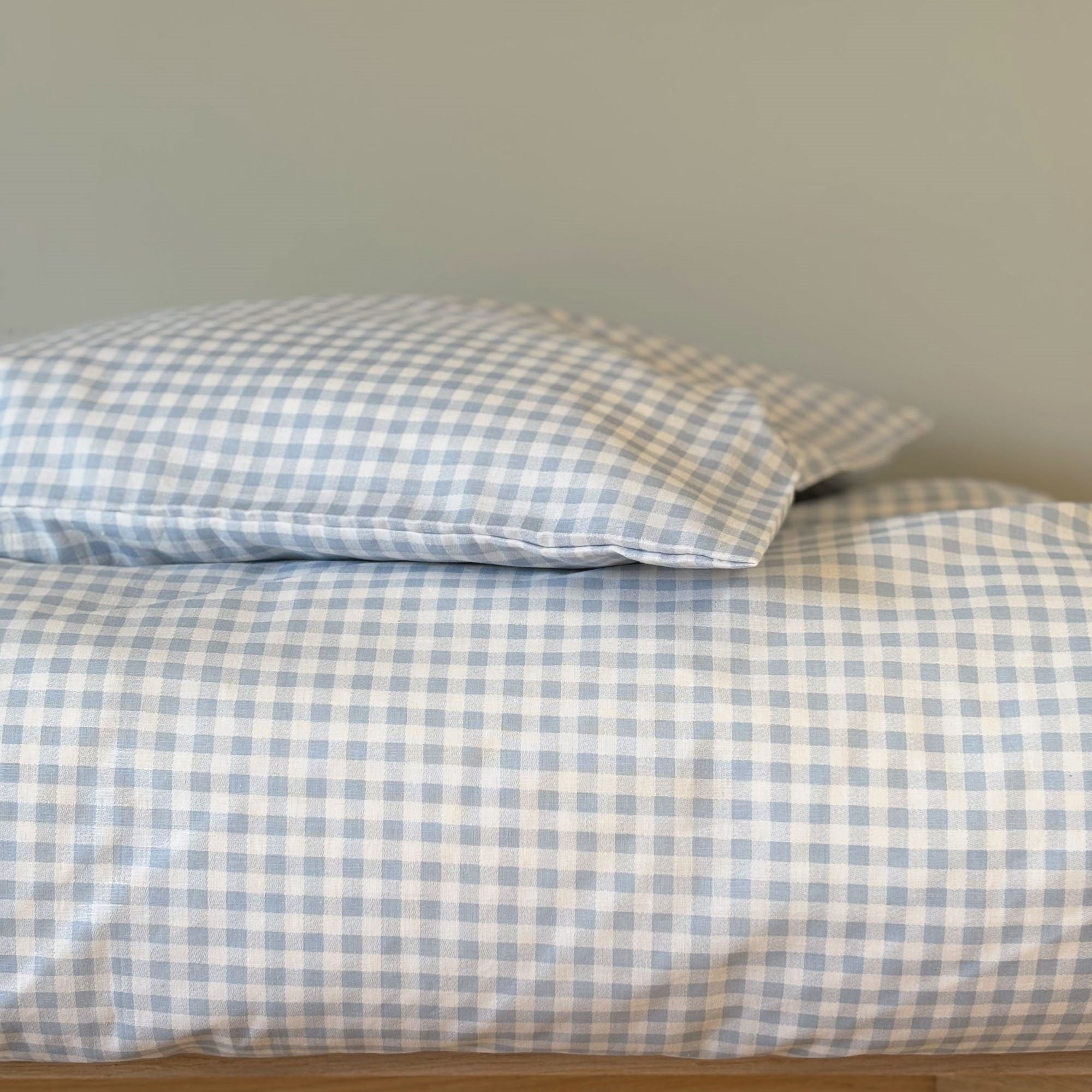 Home » Bedding » Children's bedding » Junior bedding 100x140 cm Junior bedding 100x140 cm - Bedding set with blue and white checks - 100% soft cotton bed linen Save35% By Mats 27,4917,99EURSave 10,- In stock Quantity Add to basket See more from: By Mats Item number: 12161-8 Read our bedding guide See our large selection of fitted sheets See our large selection of duvets 100x140 Do you have questions about the product? High breathability100% soft cottonOEKO-TEX® certified Duvet cover: 100x140 cm - junior bedding set Pillowcase: 40x45 cm Material: 100% soft cotton Color: White and blue Design: Checks Closure: Duvet with buttons and pillowcase with overlap Wash: 60° Tumble dry: Yes Ironing safe: Yes Certification: STANDARD 100 by OEKO-TEX® (2016OK0709 AITEX). Your guarantee that the product is free from harmful chemicals. Soft junior bedding in 100% cotton, with checks. Produced with light and breathable cotton threads that give the bedding set a feeling of softness, making the duvet feel lovely for your child to sleep with. The balance of natural properties and comfort from the soft material, combined with the cozy design, makes this set a sure favorite for your child. Beautiful junior bedding set with checks, which is not only soft and comfortable but also decorative and will enhance the children's room. The bedding set is made of 100% cotton which makes the set durable, soft and provides high absorbency as well as breathability. The pure cotton quality gives a lovely and soft bedding set that is also easy to maintain and creates a pleasant sleeping environment for your child. Cotton bedding can be washed at 60° in the washing machine, which also helps maintain a high level of hygiene. The bedding is further produced with OEKO-TEX certification, which is your guarantee that the set is free from harmful chemicals. Browse favorites and much more in our large selection of accessories for the children's universe For the child, the bed should be a safe place and all elements together should create soft and lovely surroundings for the child to find peace in. Therefore, feel free to use the child's interests to create a safe sleeping room for the child. With us, you can find a large selection of accessories for the bed and children's room, ranging from fitted sheets to duvets, pillows, bedding and much more, and plenty of products with all the children's favorites on. All elements that can help create the right sleeping environment and room for your child. Here you can find lovely and soft quality fitted sheets Return to Junior bedding 100x140 cm Customers also bought Junior bedding 100x140 cm - Bedding set with white and light pink checks - 100% soft cotton bed linen In stock 27,4917,99EUR Add to basket Junior duvet - Muscovy down - 100x140 cm - All-season junior duvet - Borg Living down duvet In stock 217,9981,99EUR Add to basket Junior muscovy down pillow - 40x45 cm - Children's pillow - Borg Living In stock 68,4934,49EUR Add to basket Junior mattress protector - 70x160 cm - Boil-proof - Borg Living full mattress protector in 100% Oeko-tex cotton In stock 44,9924,49EUR Add to basket Junior Down pillow - 40x45 cm - Children's pillow - Muscovy down - Zen Sleep In stock 54,4927,49EUR Add to basket Junior duvet - 100x140 cm - All-season cosy junior duvet - muscovy down - Zen Sleep duvet In stock 122,4968,49EUR Add to basket Junior bedding 100x140 cm - Yellow bedding set with flowers - 100% soft cotton bed linen In stock 27,4917,99EUR Add to basket Junior bedding 100x140 cm - Beige bedding set with construction vehicles - 100% soft cotton bedding In stock 27,4917,99EUR Add to basket Junior bedding 100x140 cm - Light pink bedding set with flowers - 100% soft cotton bed linen In stock 27,4917,99EUR Add to basket You might also be interested in: Junior bedding 100x140 cm - Soft white bedding set in 100% Egyptian cotton satin - Turiform bed linenHigh quality Extra fine, soft & breathable Jacquard woven Guideline sales price : 61,22 Save : 13,23 68,49 EUR47,99 EUR (incl. VAT) Extra depth fitted sheet 70x140 cm - White - 100% extra fine cotton satin - Fitted sheet for junior mattressExtra depth fitted sheet - White 100% cotton satin 70x140x15 cm Guideline sales price : 40,81 Save : 6,32 47,99 EUR34,49 EUR (incl. VAT) Junior mattress protector - 70x140 cm - Boiled Cotton - Borg LivingBreathable and hypoallergenic Soft cotton OEKO-TEX® certified 47,99 EUR27,49 EUR (incl. VAT) Junior duvet - Muscovy down - 100x140 cm - All-season junior duvet - Borg Living down duvet100% muscovy down duvet Tog rating: over 12 All-season duvet 217,99 EUR81,99 EUR (incl. VAT)