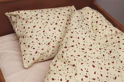 Home » Bedding Save35% By Mats Junior bedding 115x135 cm - Yellow with ladybirds - 100% cotton bedding set Nordic inspired motif100% soft cotton - breathable and comfortableOEKO-TEX® Certified 27,4917,99EURSave 10,- Quantity Add to basket In stock Delivery: 1-2 days Item number: 12140-27 You might also be interested in: Specifications Duvet cover: 115x135 cm (please note size) Pillowcase: 40x45 cm Material: 100% cotton Colour: Yellow Motif: Ladybirds Closure: Duvet with buttons and pillowcase with overlap Washing: 60 degrees Tumble drying: Yes Ironing: Yes (NOTE: Please note the size) Certification: STANDARD 100 by OEKO-TEX® Beautiful bed set with a lovely and unique print for both girls and boys. The bedding is soft and comfortable, ensuring your child has a secure and restful sleep. This elegant all-over print in muted colours adds a decorative touch to the children's room. The duvet cover is practical with convenient press-studs, while the pillowcase has a useful overlap. Create a dreamlike world with this enchanting bed set – making bedtime a pleasure. The bedding is crafted from 100% soft cotton. Cotton is breathable, soft, and kind to your child's skin. Additionally, it is easy to wash, which is important for children's bedding that often becomes stained. A snugly and calming bedding set contributes to a soothing atmosphere conducive to a good night's rest. Discover our selection of quality sheets for children here We have everything to make the children's room magical and cosy, where they can truly indulge in various play and let their imaginations run free. Explore our children's room collection here Read our bedding guide See our extensive selection of sheets See our wide selection of 100x140 duvets Do you have questions about the product? Read moreHide FAQ - Frequently Asked QuestionsWhat are the delivery times and shipping costs?At HOME-TEX.com we pack all orders daily and can generally promise that your items will be shipped quickly. HOME-TEX.com offers fast delivery once your order has been processed. For specific shipping costs in your region, please check the shipping information, as these can vary by country.What if I want to return my order?HOME-TEX.com offers an unlimited right of return, which means you can return your item as long as it is unused and in its original condition and packaging.How do I return an item?If you wish to return an item, you may use any shipping provider of your choice to send it back to the return address. Be sure to include your order confirmation in the return package so we can identify your order. You are free to choose any carrier that delivers within our customer service opening hours. Can I pay with PayPal?Yes — on HOME-TEX.com you can securely and conveniently pay for your order using PayPal at checkout. This allows you to pay using your PayPal account details without sharing your payment information directly with the shop.What should I do if my item is damaged?If you receive an item that is defective or damaged, please contact our customer service as soon as possible so we can assist you with a return or replacement. Return to Bedding You might also be interested in: Junior bedding 100x140 cm - Soft white bedding set in 100% Egyptian cotton satin - Turiform bed linenHigh quality Extra fine, soft & breathable Jacquard woven Guideline sales price : 61,22 Save : 13,23 68,49 EUR47,99 EUR (incl. VAT) Junior mattress protector - 70x140 cm - Boiled Cotton - Borg LivingBreathable and hypoallergenic Soft cotton OEKO-TEX® certified 47,99 EUR27,49 EUR (incl. VAT)